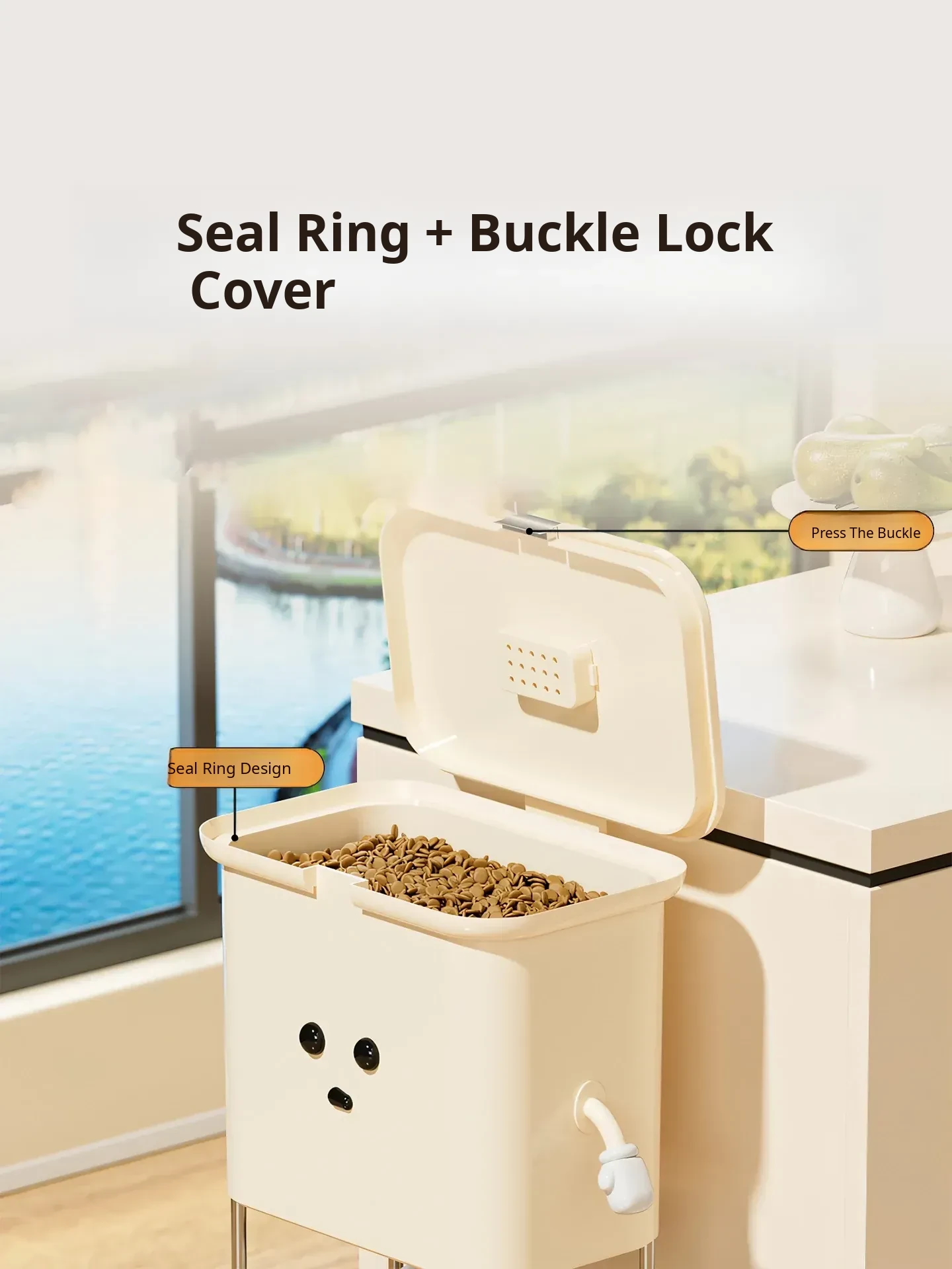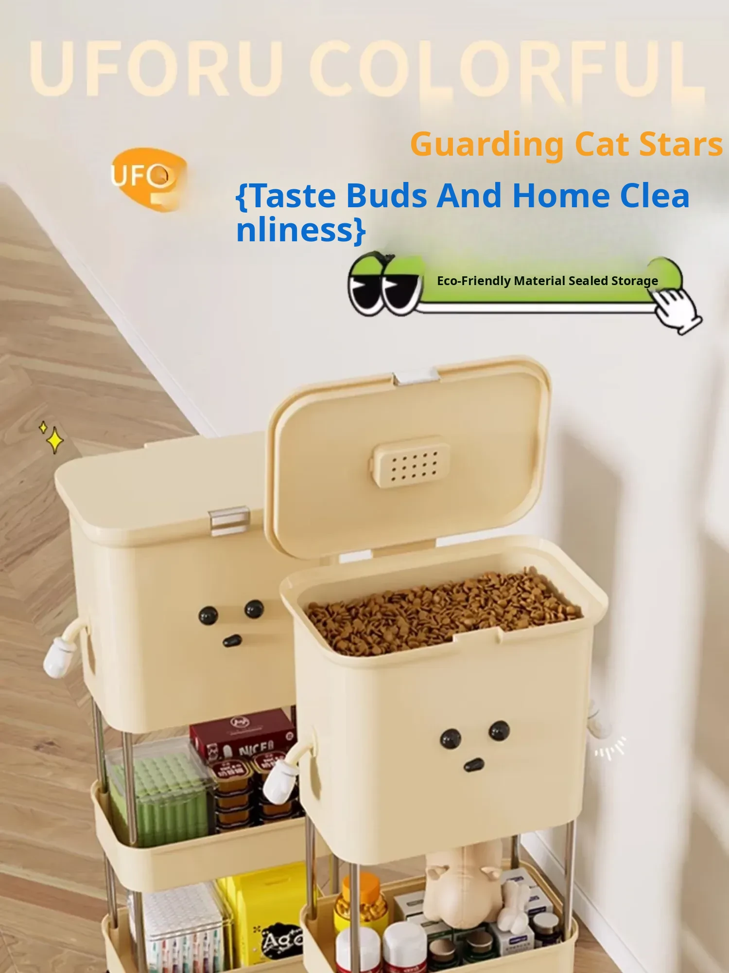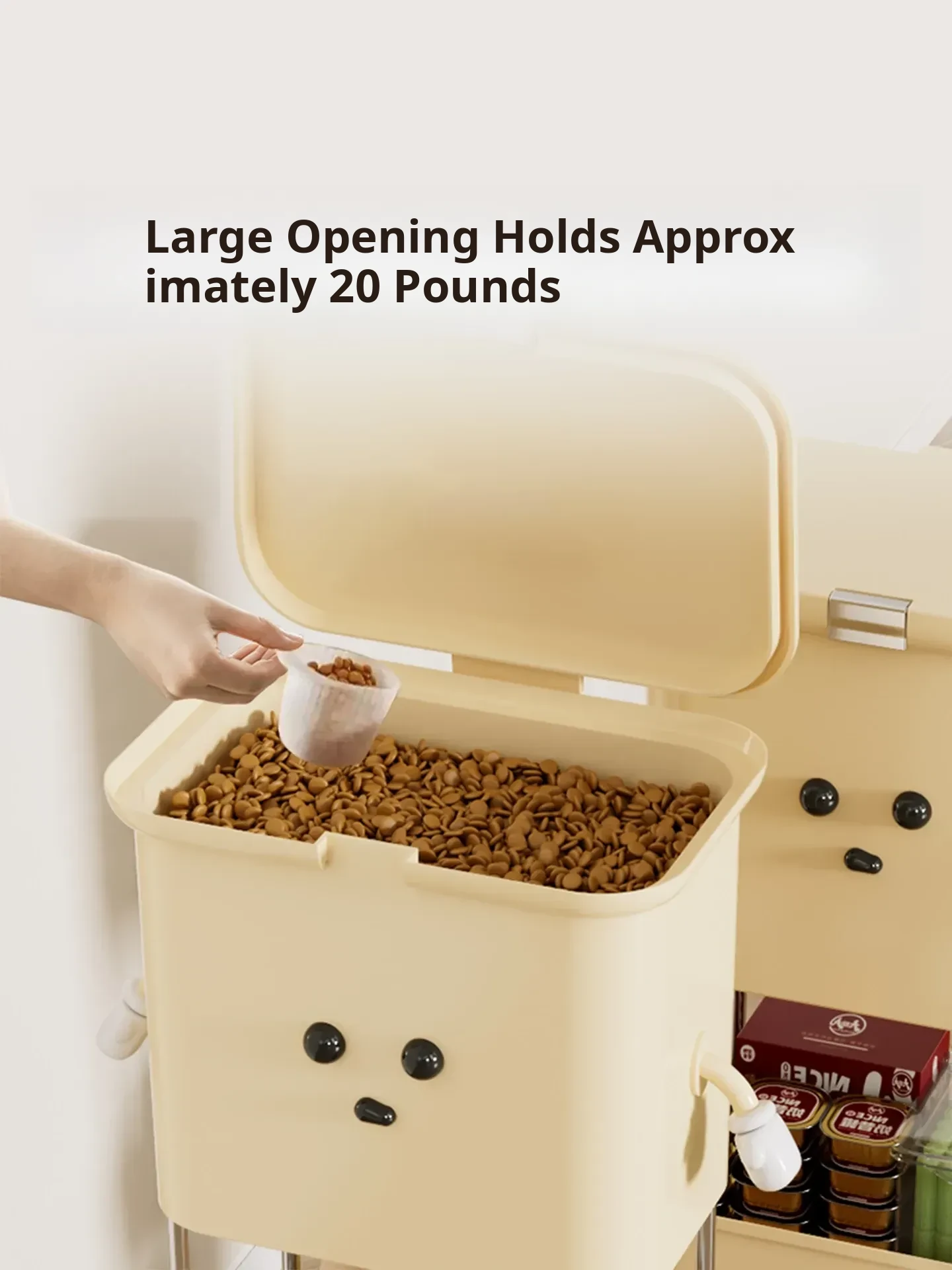 Upgraded Grain Storage - Cream White, Single Tier [with Lockable Universal Wheels, Storage Space Below]
