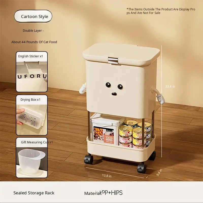 Ordinary Grain Storage Barrel, Two-Layer Cream White [with Lockable Universal Wheels, Storage Can Be Placed Underneath]