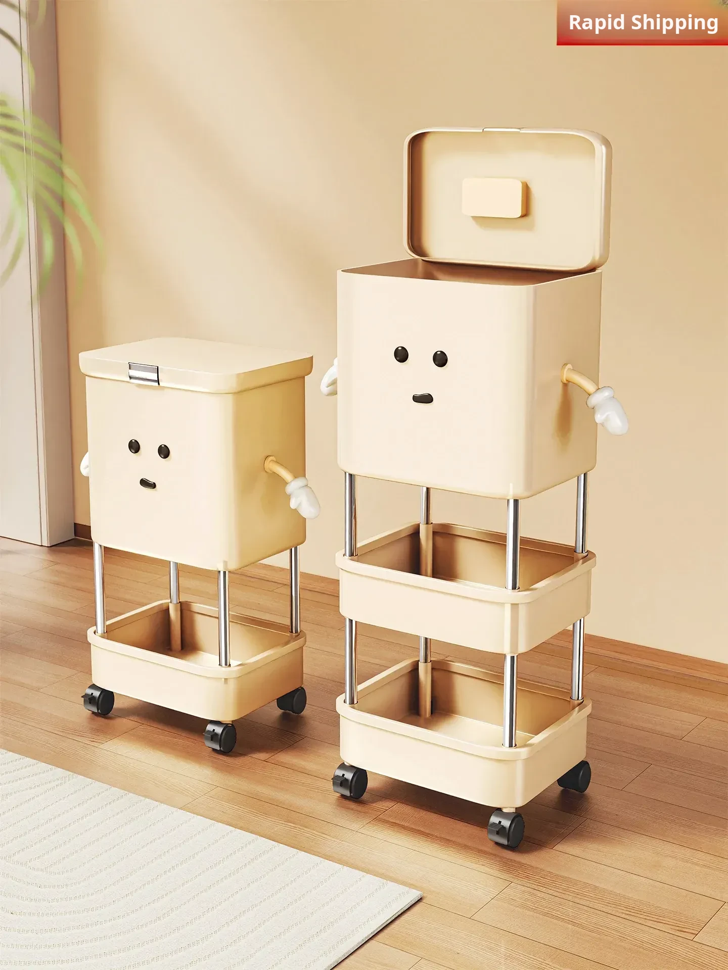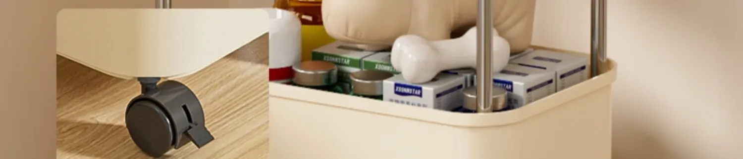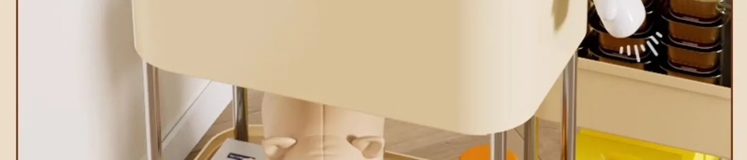 Standard Single-Tier Food Storage Container - Cream White [with Lockable Universal Wheels, Storage Space Below]