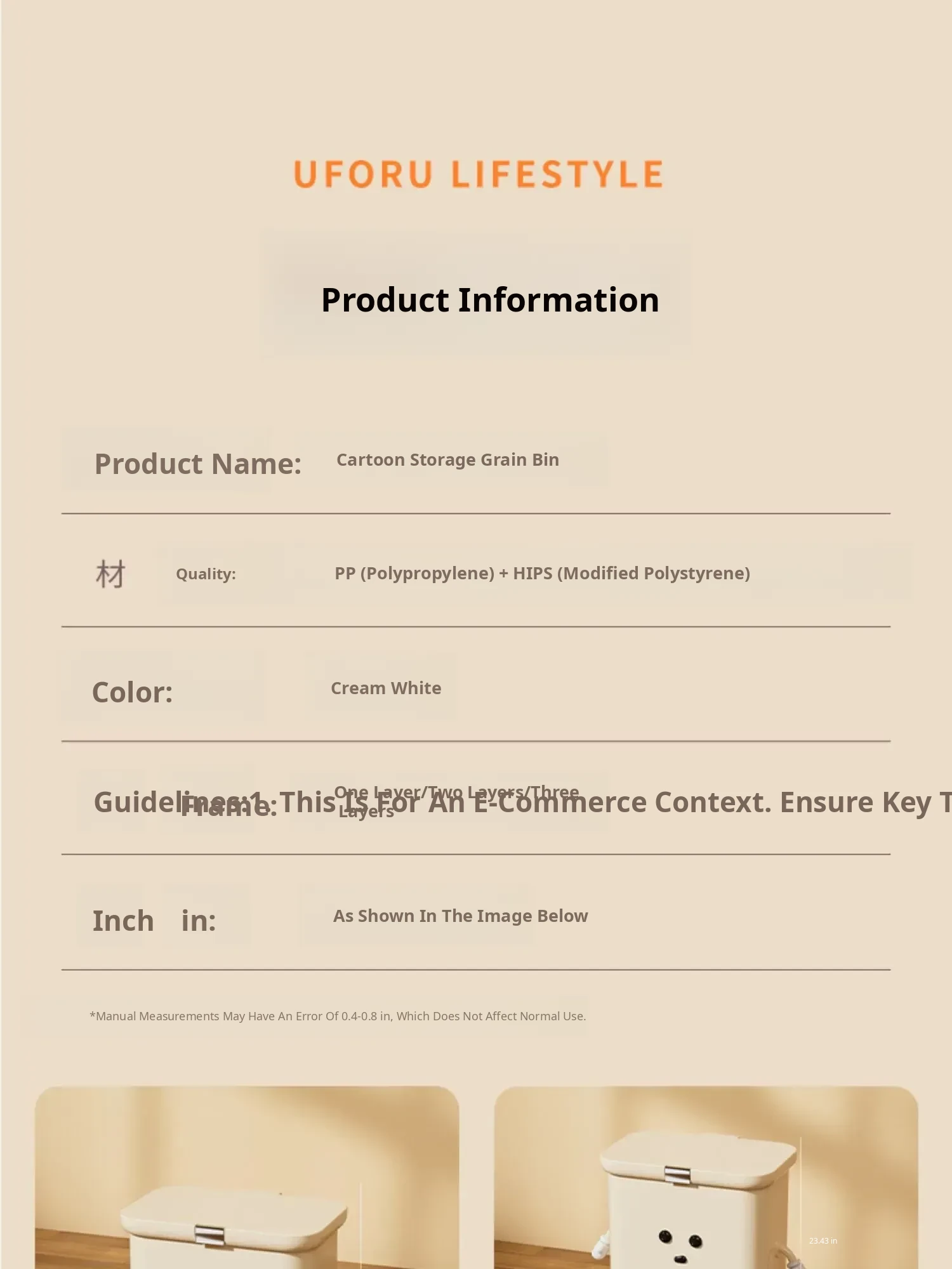 Ordinary Grain Storage Barrel, Three Layers of Cream White [with Lockable Universal Wheels, Storage Can Be Placed Below]