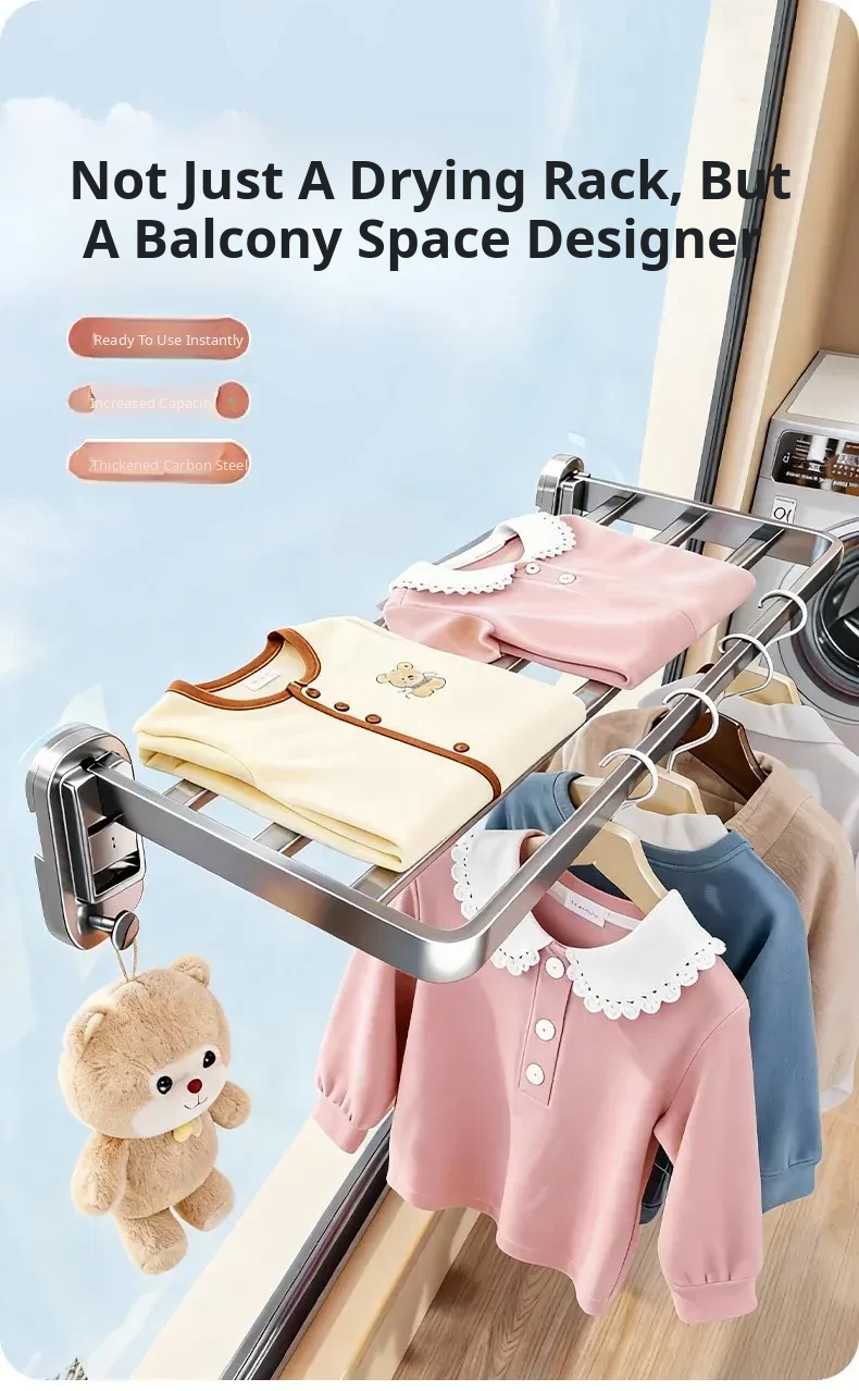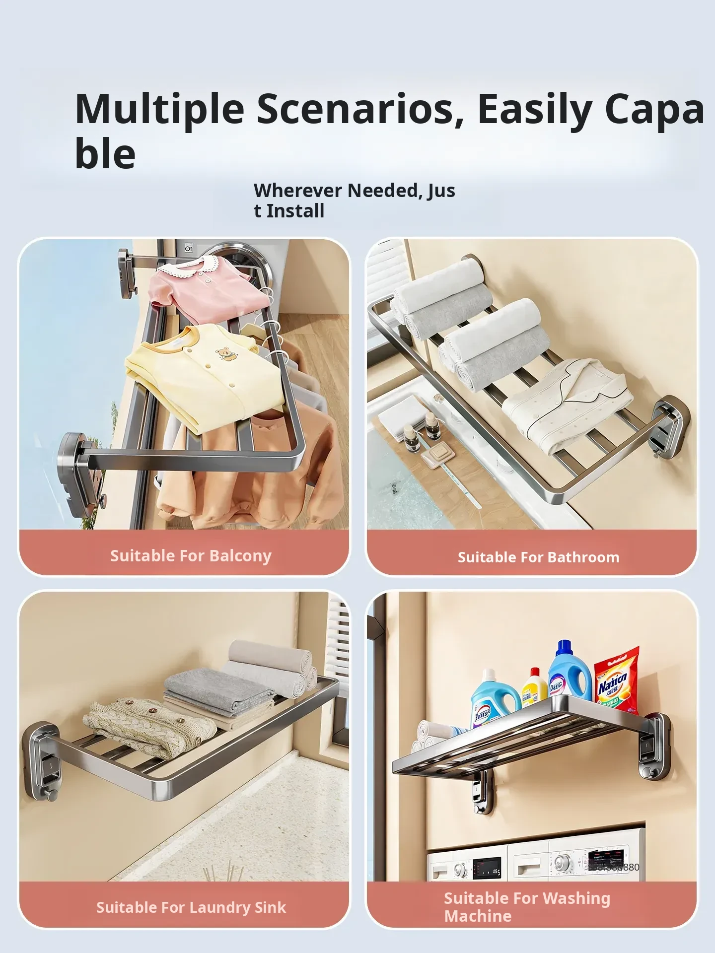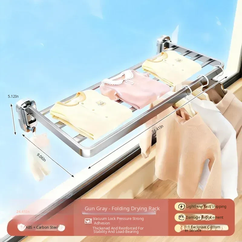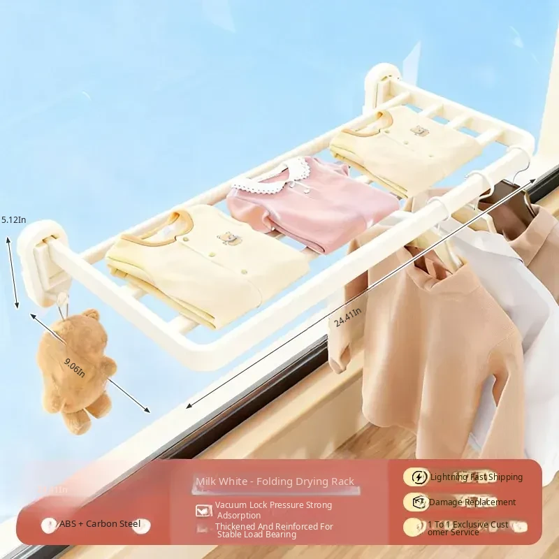 Suction Cup Indoor Drying Rack for Balcony - Foldable Shoe, Sock, and Clothes Organizer - Space-Saving Hanging Storage Solution for Home Use