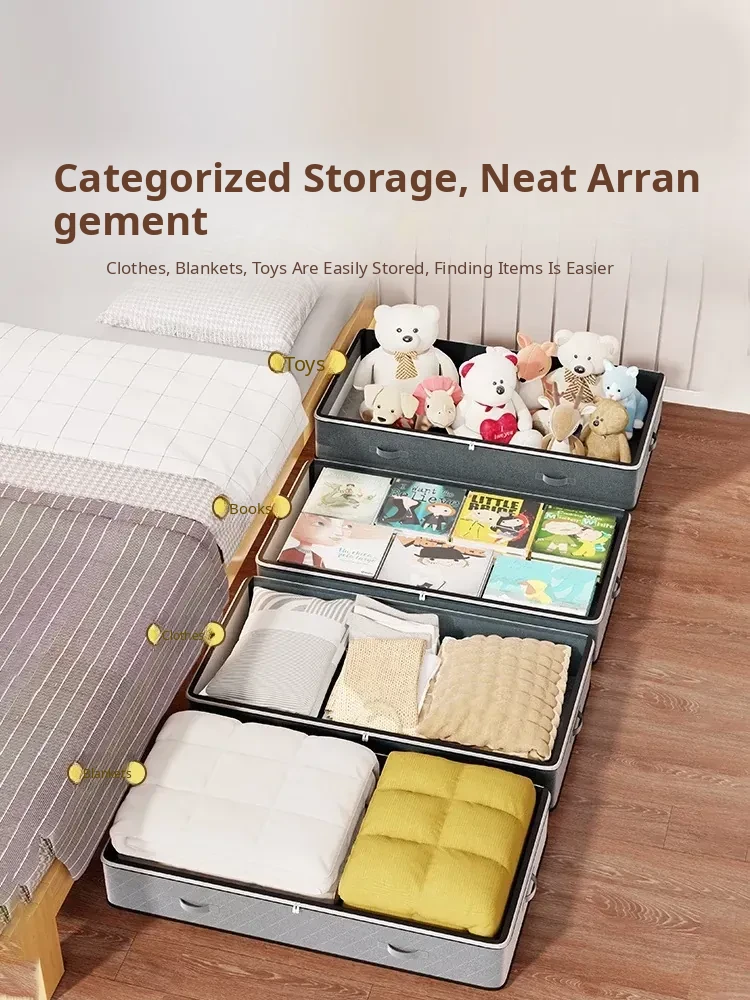 Under-Bed Storage Box - Large Capacity Organizer for Clothes and Books, Perfect for Home Use, Maximizes Space with Stylish Design and Easy Access Drawers.