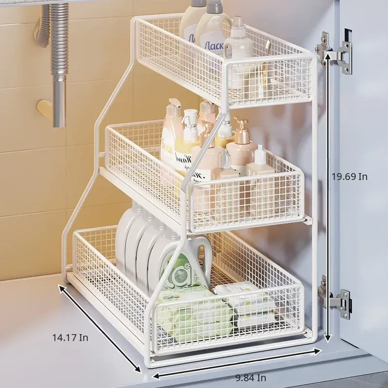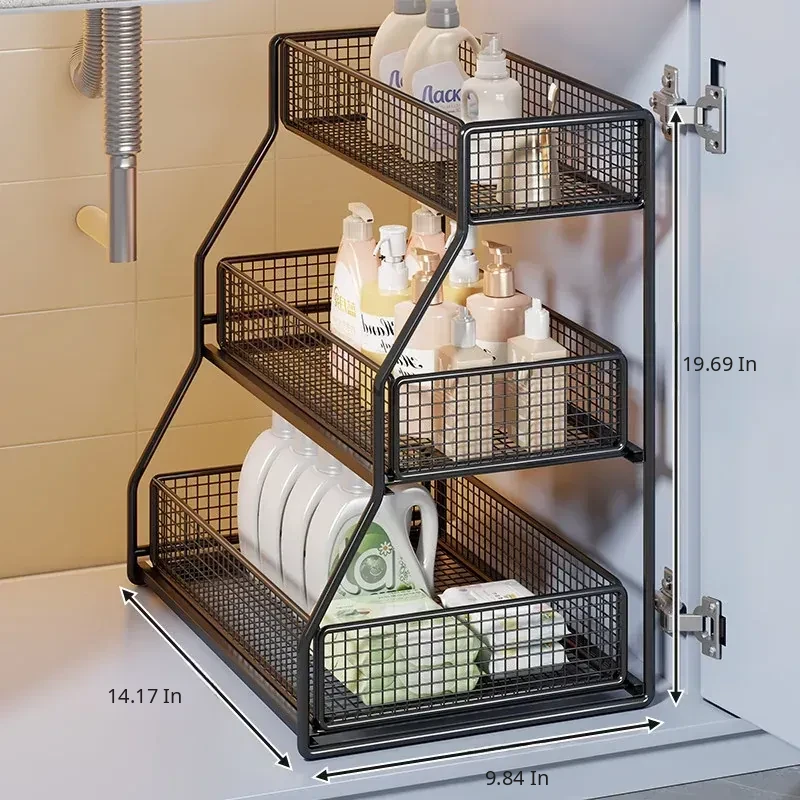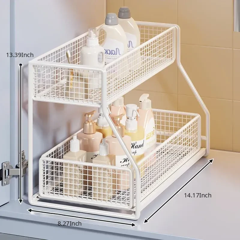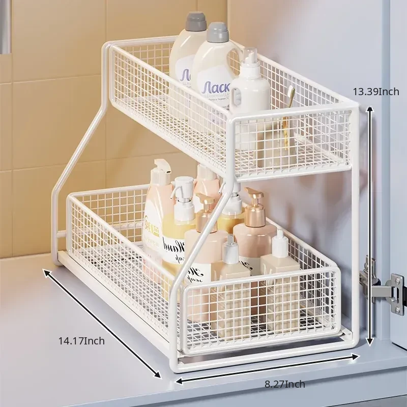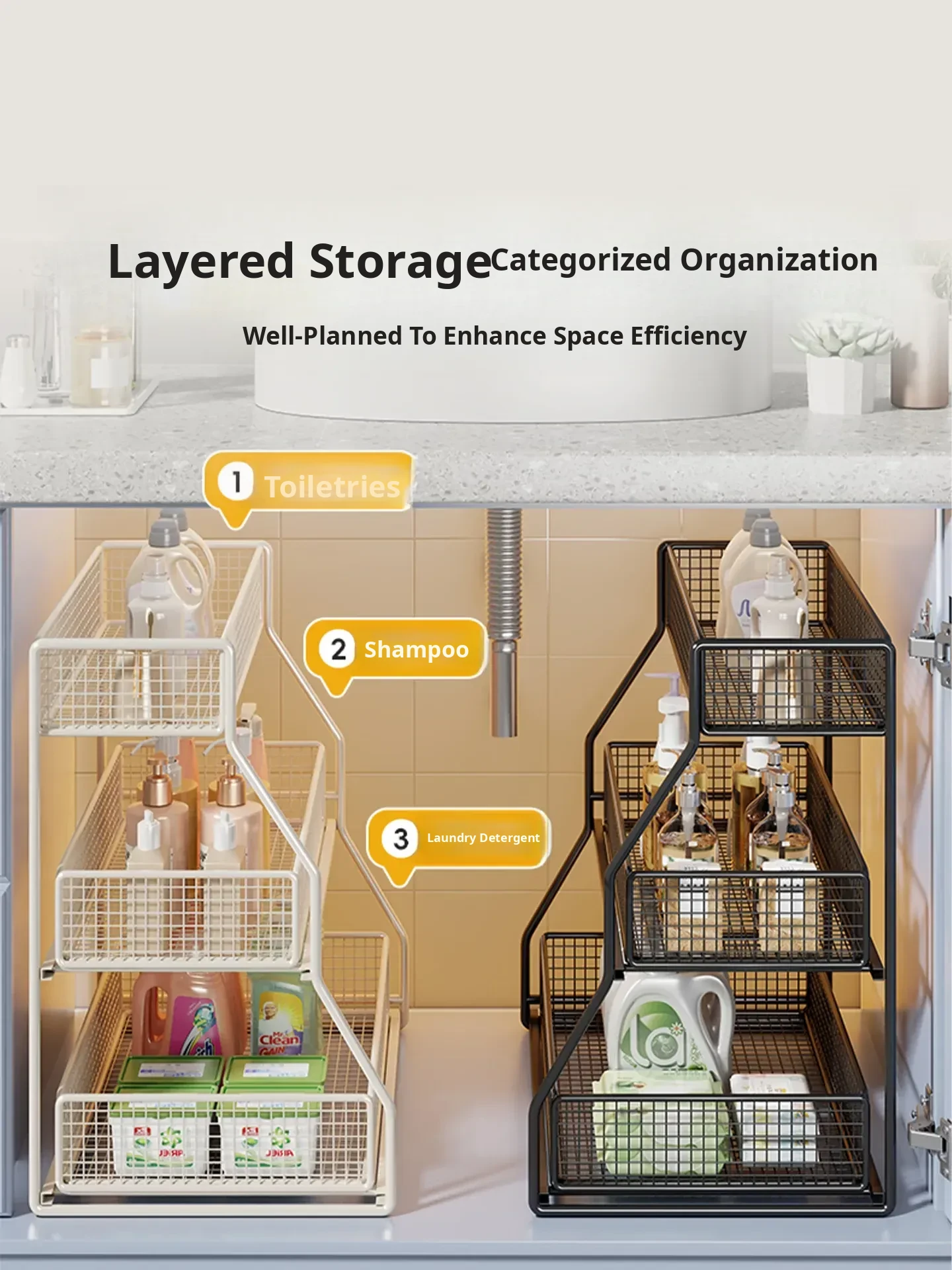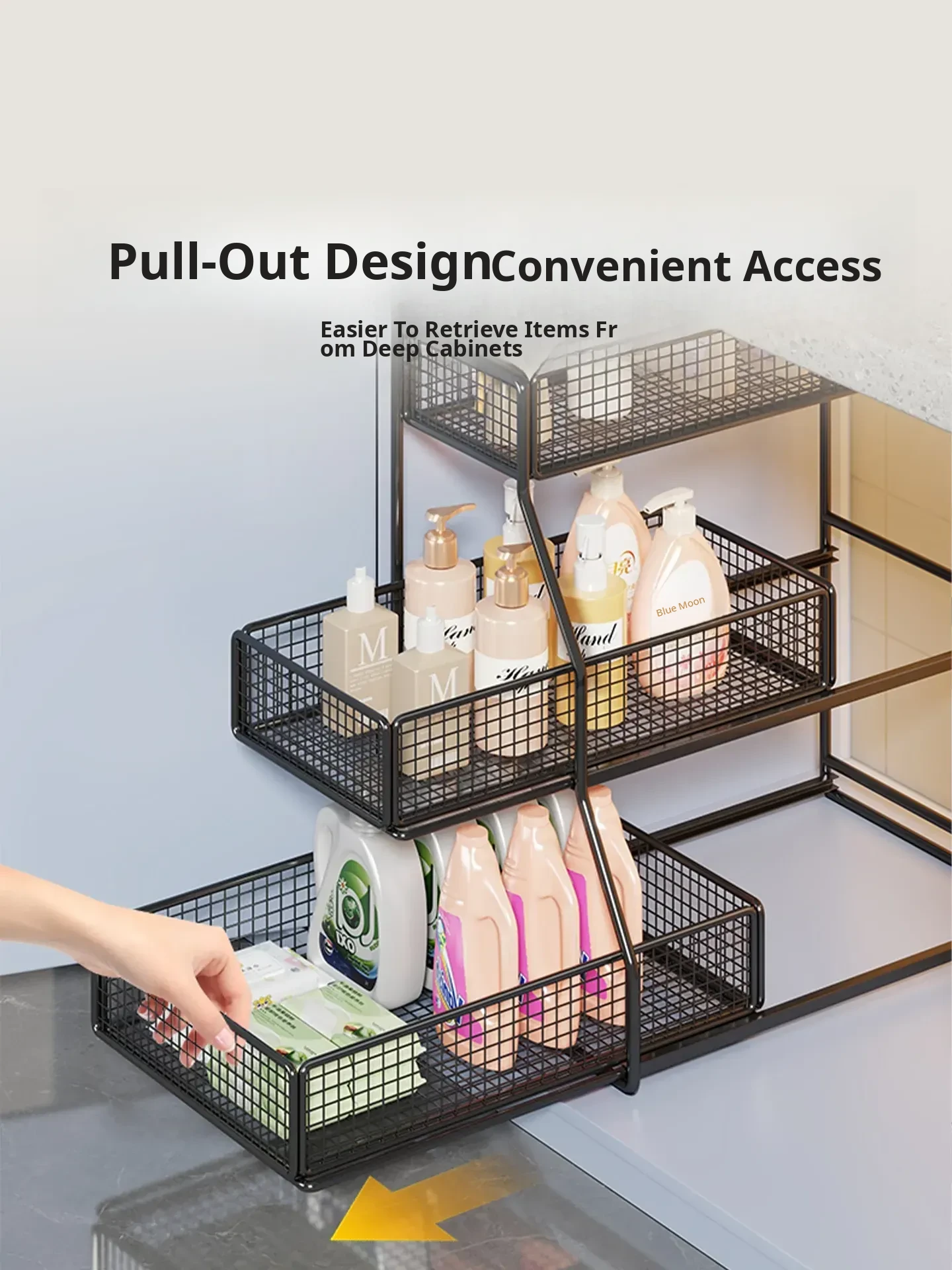 Under-Sink Storage Rack - Multi-Tier Organizer for Bathroom Vanity and Kitchen Cabinets, Pull-Out Basket for Easy Access and Maximum Space Utilization