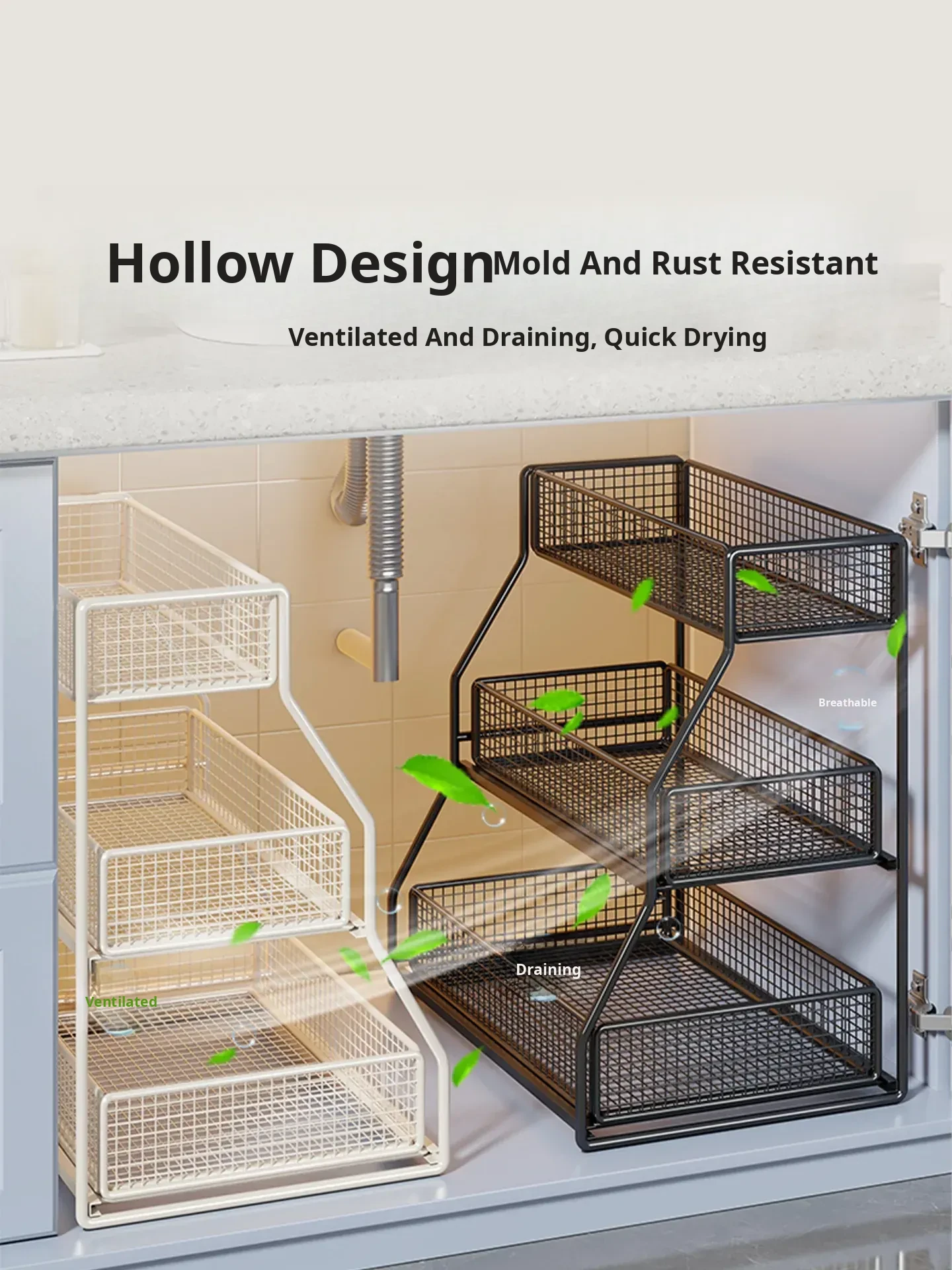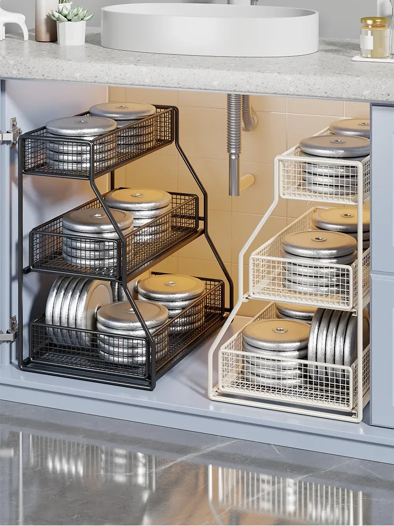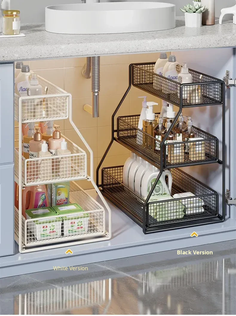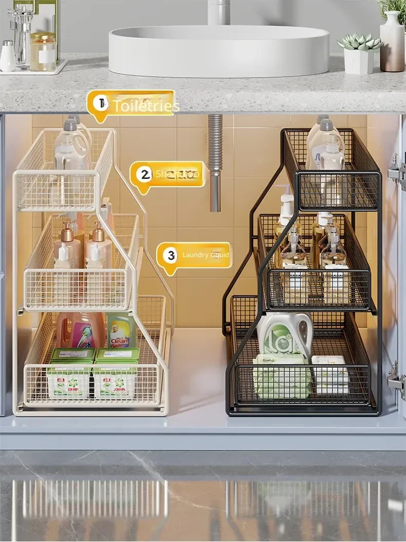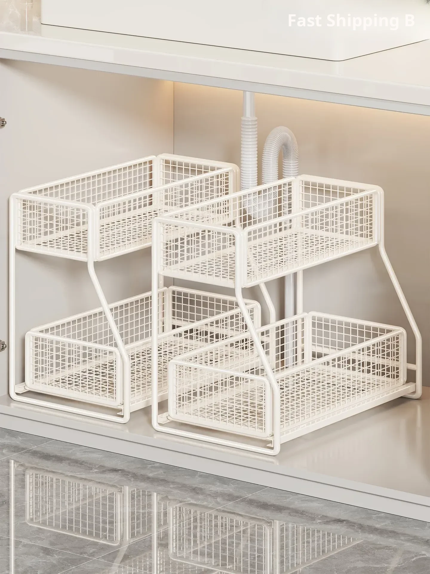 Under-Sink Storage Rack - Multi-Tier Organizer for Bathroom Vanity and Kitchen Cabinets, Pull-Out Basket for Easy Access and Maximum Space Utilization