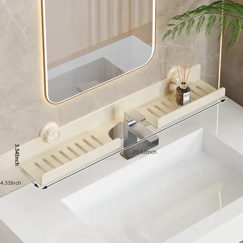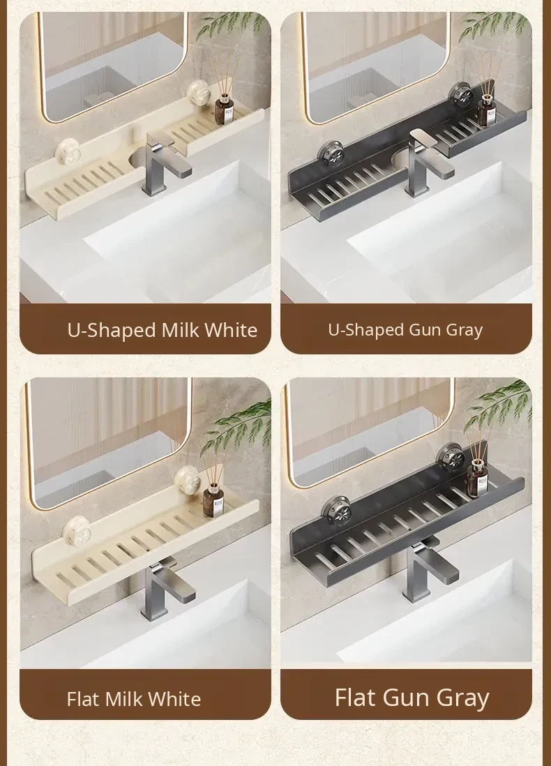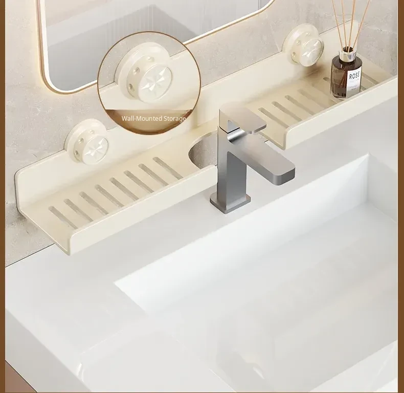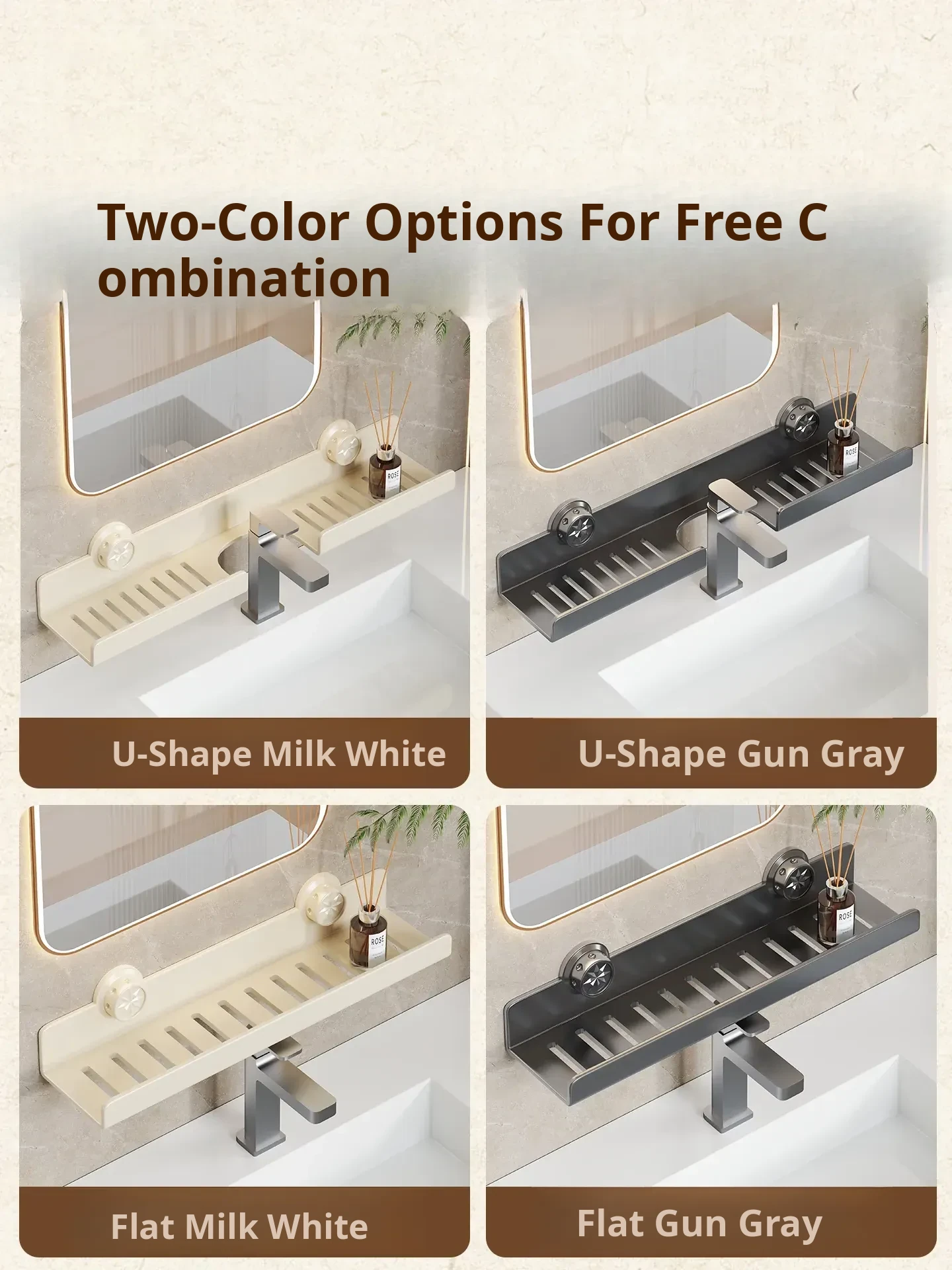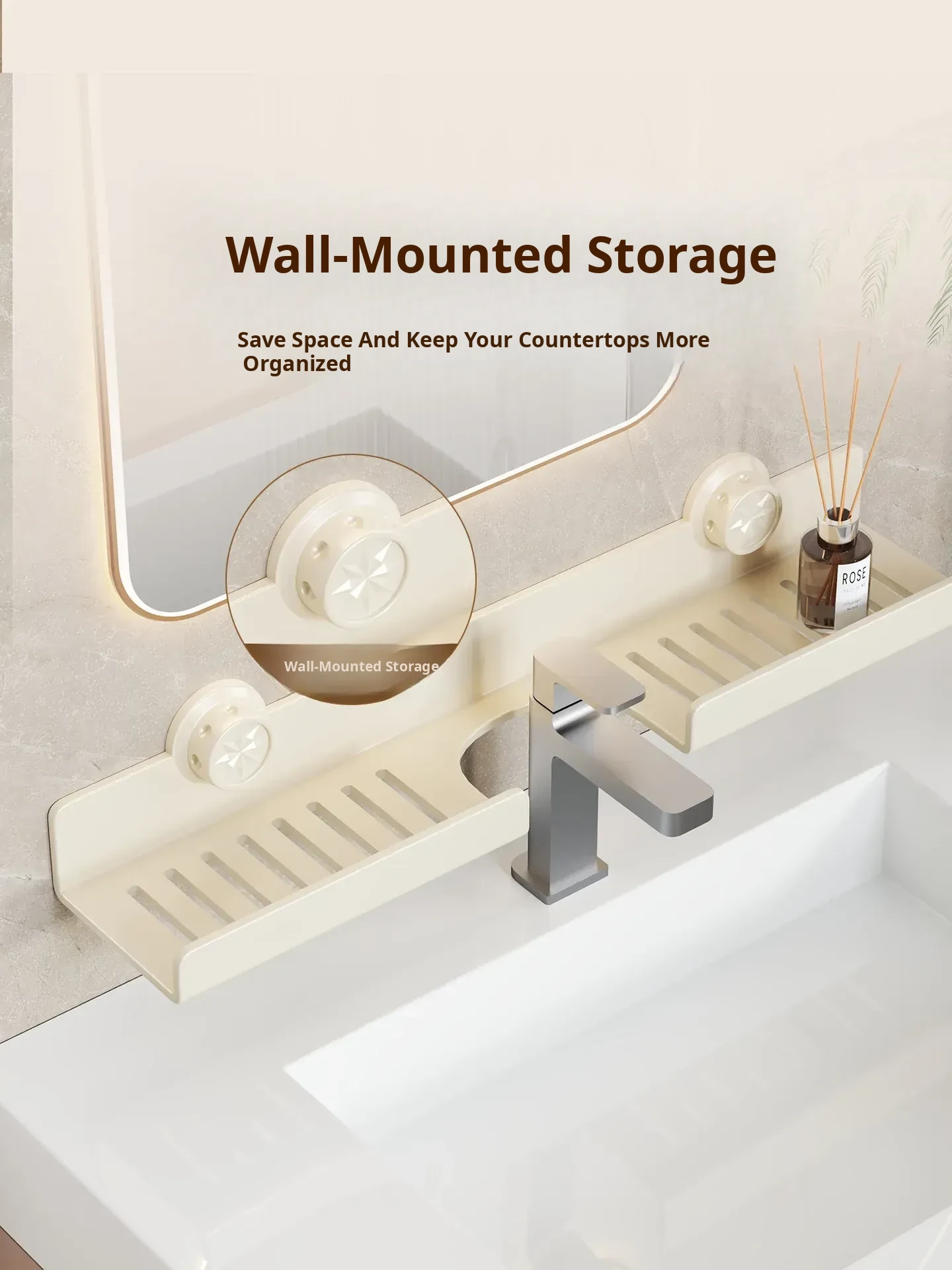 Wall-Mounted Bathroom Vanity Storage Rack with Faucet Holder – No Drill Needed for Easy Installation, Perfect for Organizing Your Sink Area and Keeping Essentials Within Reach!