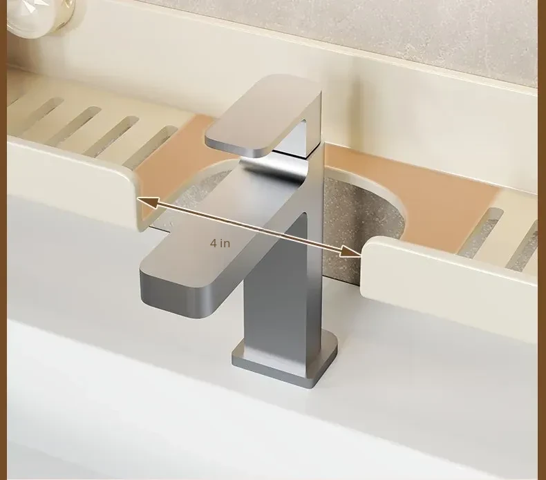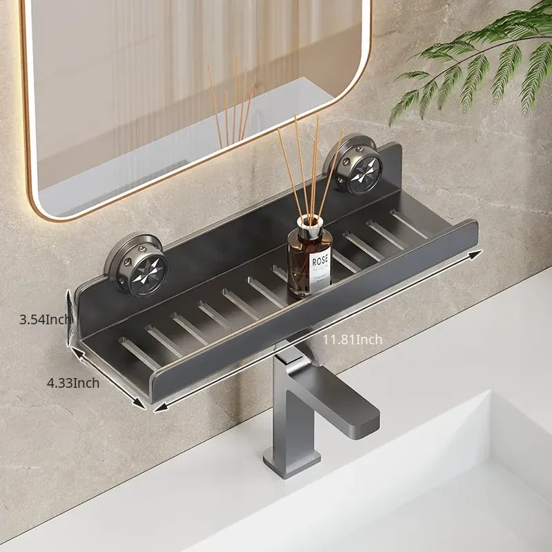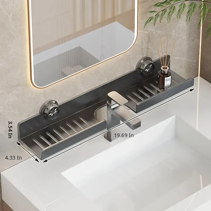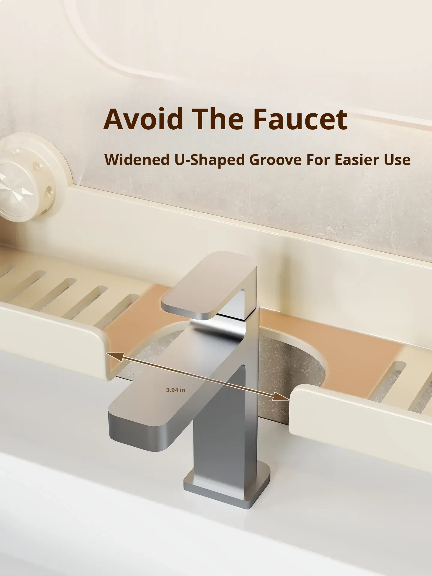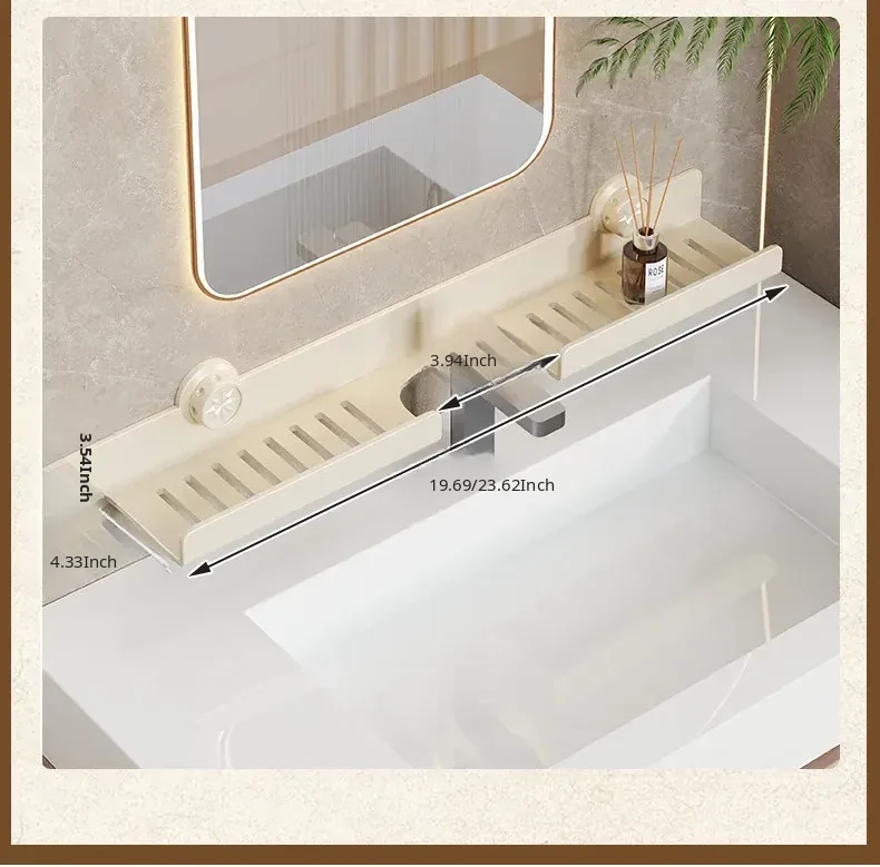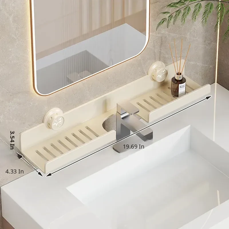 Wall-Mounted Bathroom Vanity Storage Rack with Faucet Holder – No Drill Needed for Easy Installation, Perfect for Organizing Your Sink Area and Keeping Essentials Within Reach!
