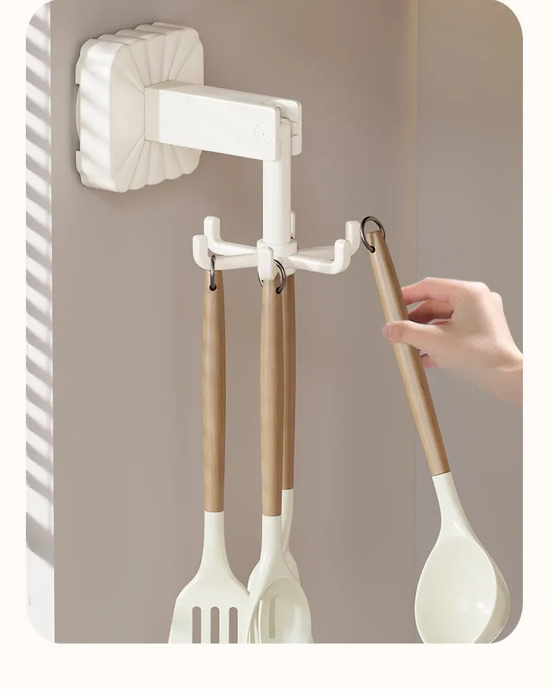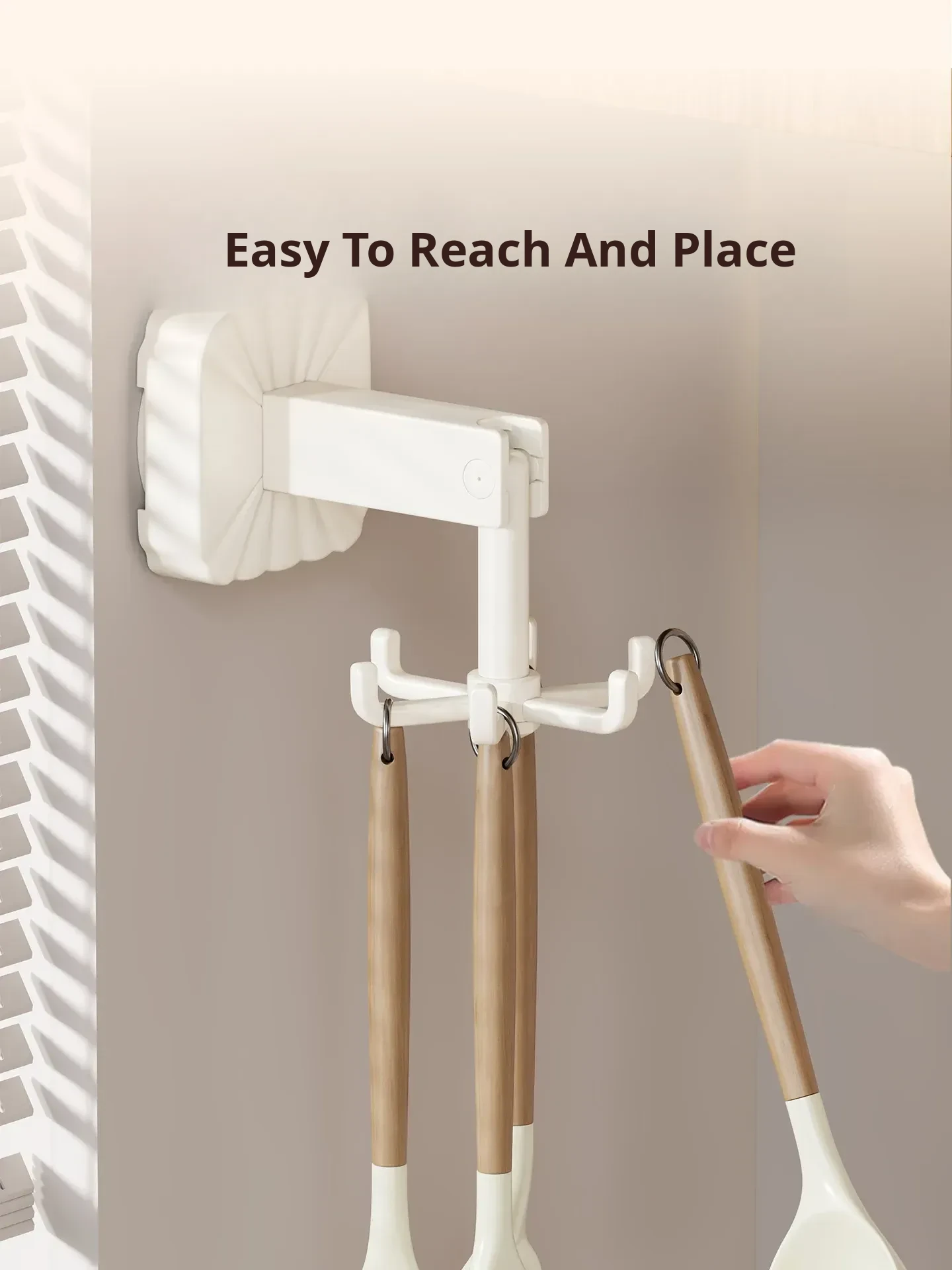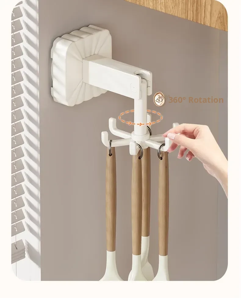 Wall-Mounted Kitchen Utensil Holder - No Drill Required! Space-Saving Rotating Hook Rack for Spatulas, Spoons, and Ladles - Perfect for Home Organization and Easy Access to Your Cooking Essentials!