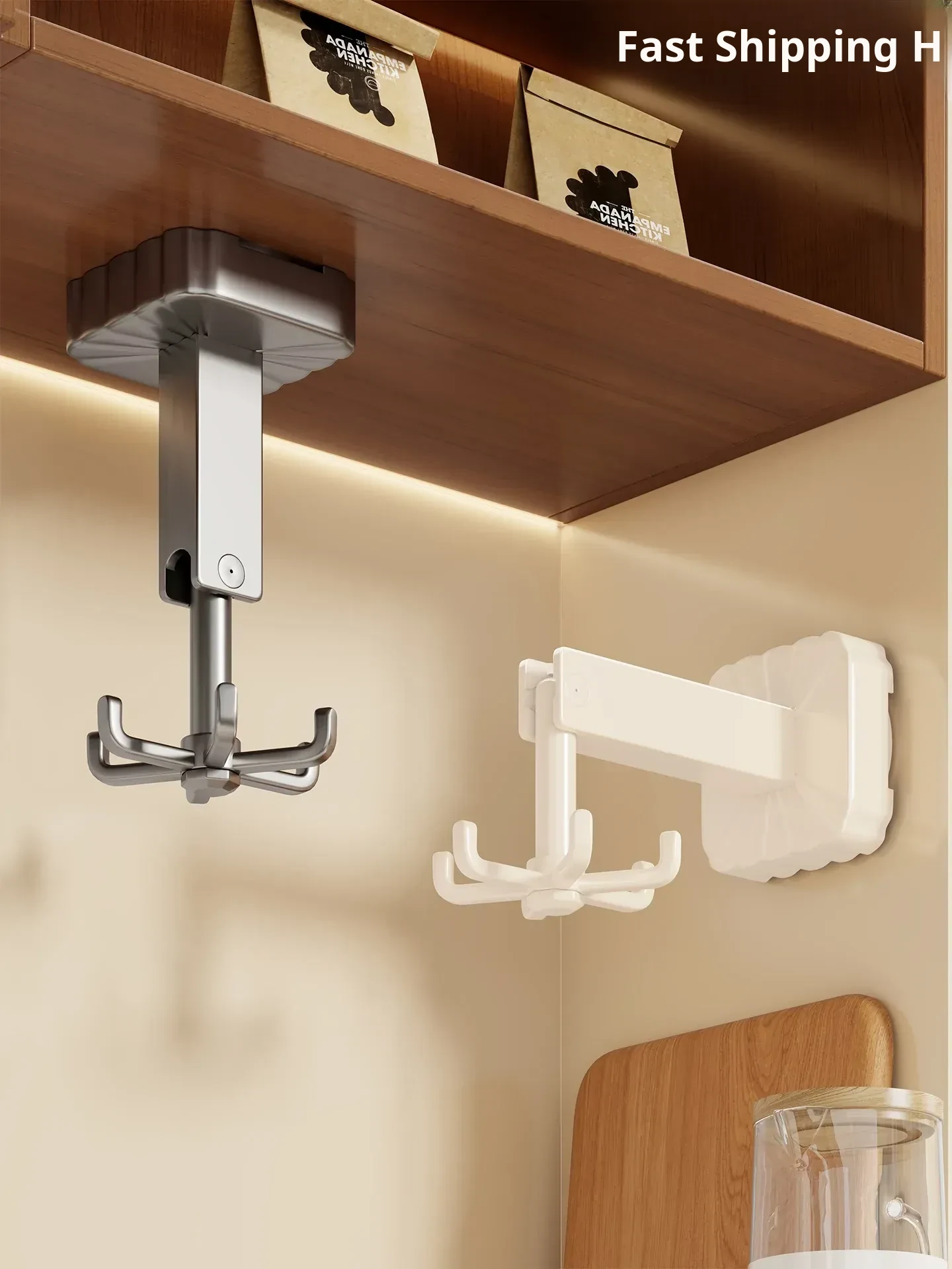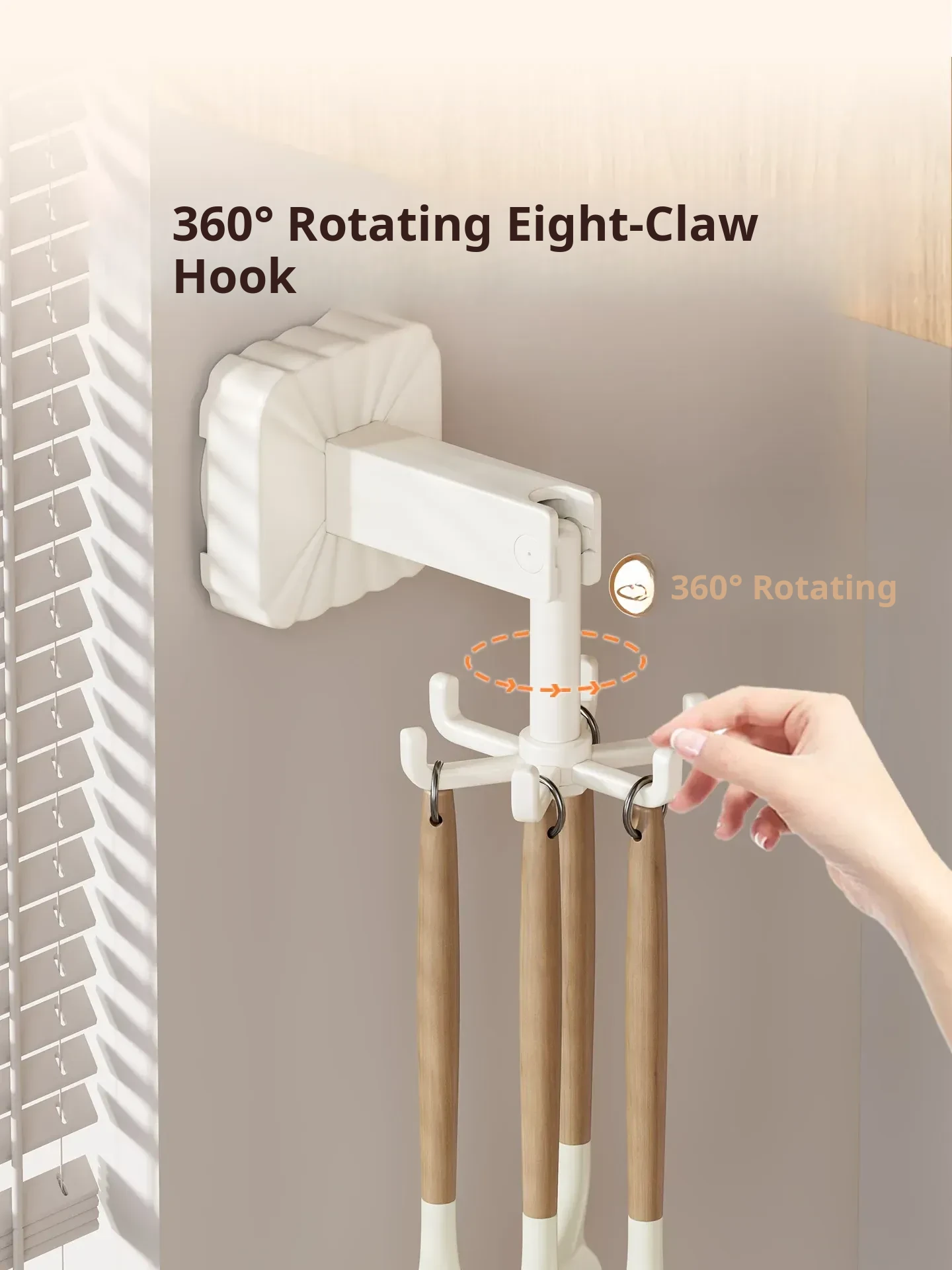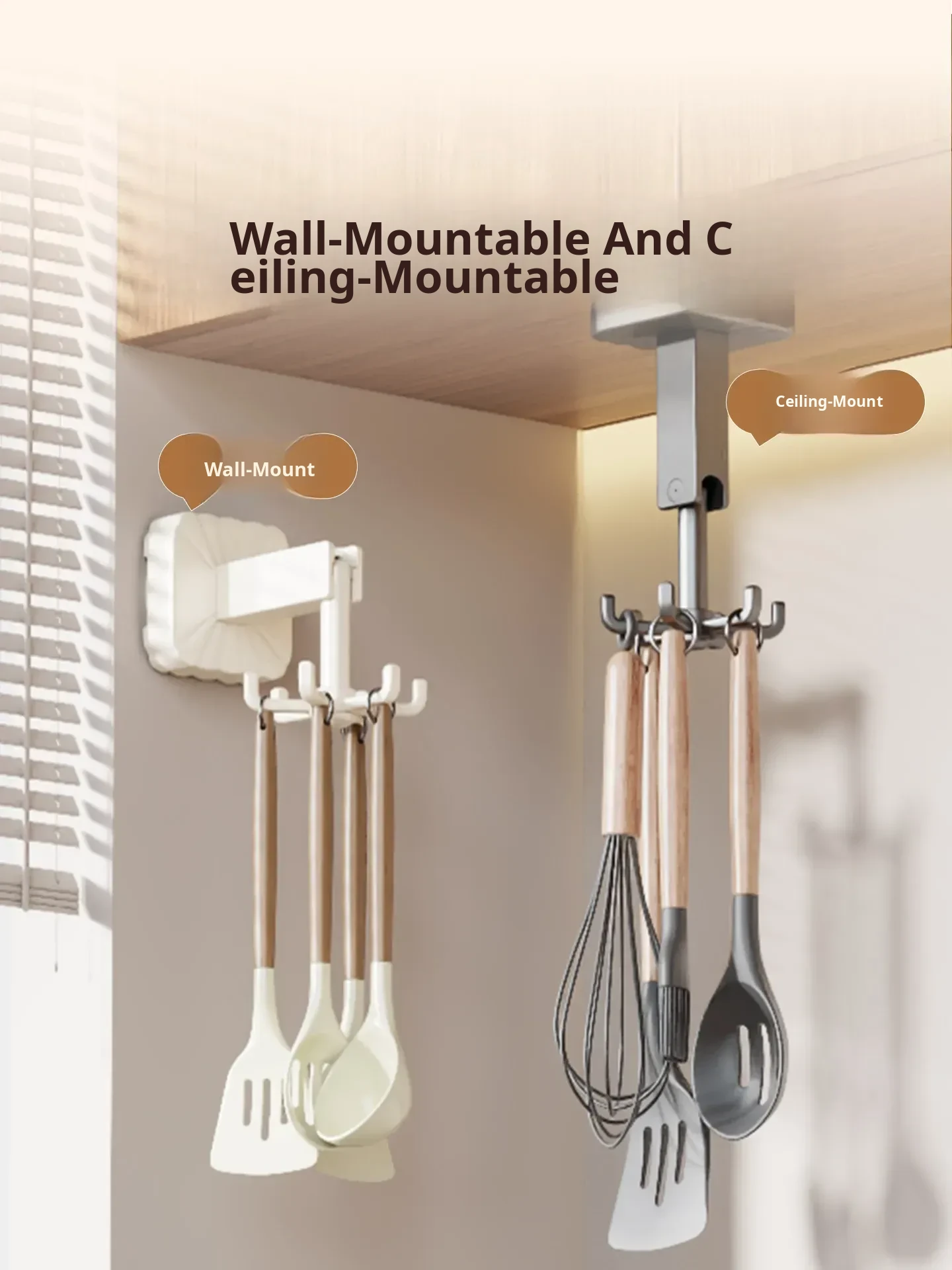 Wall-Mounted Kitchen Utensil Holder - No Drill Required! Space-Saving Rotating Hook Rack for Spatulas, Spoons, and Ladles - Perfect for Home Organization and Easy Access to Your Cooking Essentials!