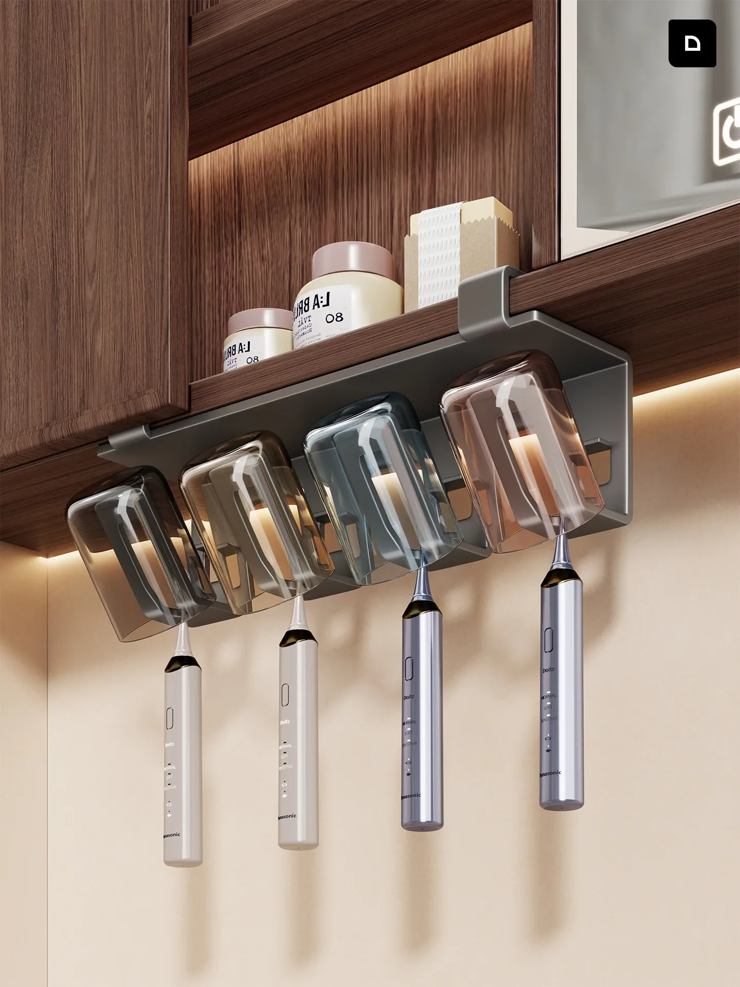 Wall-Mounted Toothbrush Holder with No Drilling - Space-Saving Organizer for Bathroom, Under Mirror Cabinet Storage for Electric Toothbrushes and Cups, Perfect for a Tidy and Stylish Washroom