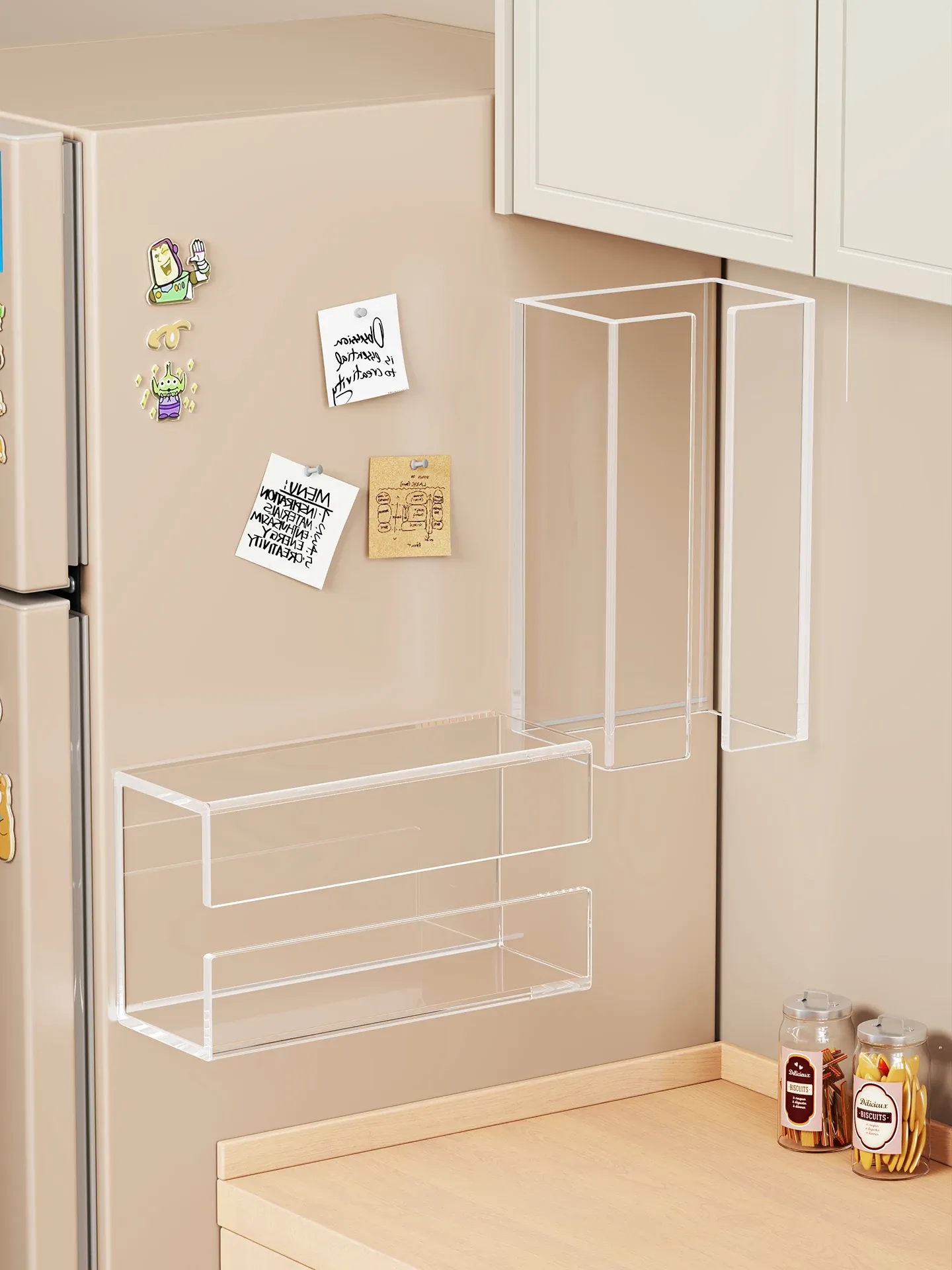 Magnetic Refrigerator Organizer Shelf - Versatile Storage Rack for Condiments, Cling Film, and Paper Towels - Space-Saving Hook Design for Your Kitchen