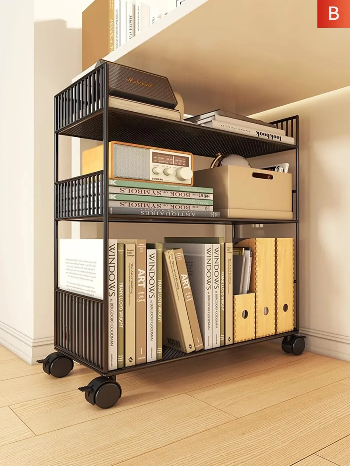Mobile Under-Desk Storage Shelf - Compact Side Bookshelf for Office & Study, Perfect for Books and Bags with Smooth Rolling Wheels, Ideal for Students and Professionals