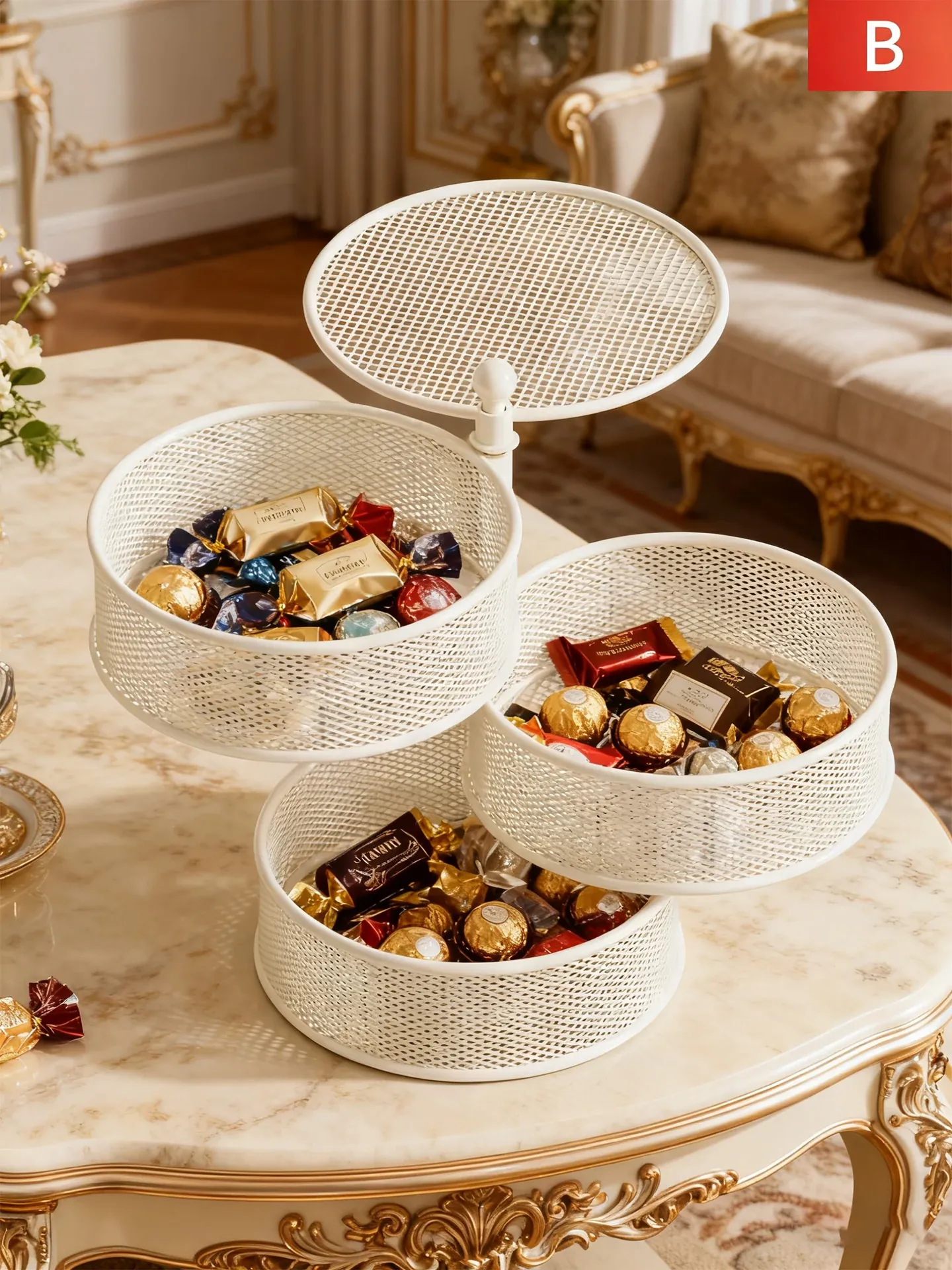 Rotating Candy Jar with Multi-Tiered Chocolate Plate for Home - Stylish Snack Organizer for Living Room Coffee Table, Perfect for Treats and Storage