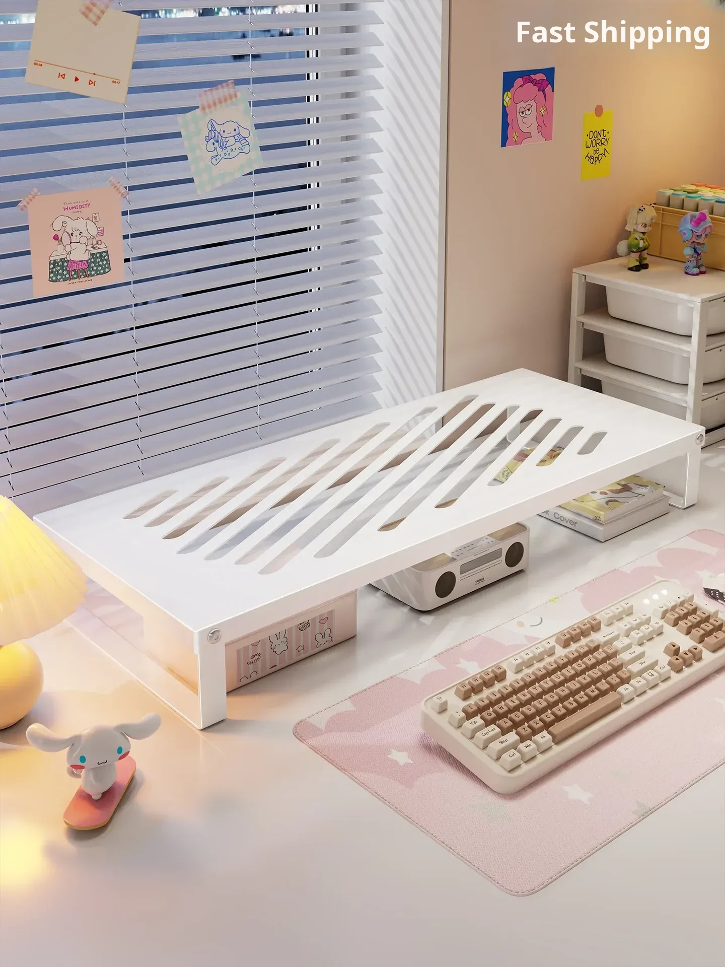 Multifunctional Computer Monitor Stand - Adjustable Height Desktop Riser with Cooling Features for Office Workstation, Includes Keyboard Tray and Monitor Holder