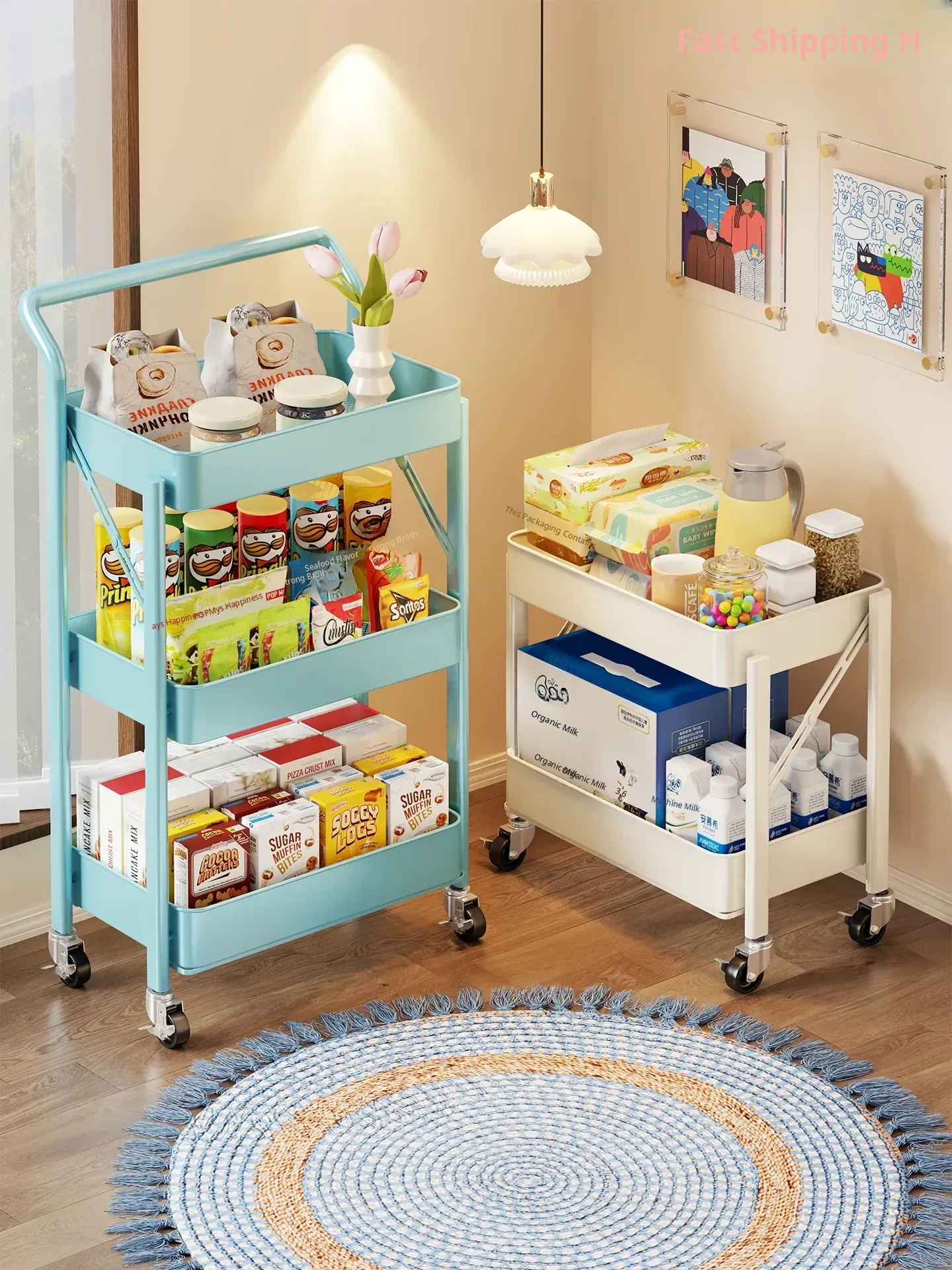 Multi-Layer Rolling Storage Cart for Bedroom and Kitchen - Versatile Organizer for Snacks and Baby Supplies, Space-Saving Floor Rack