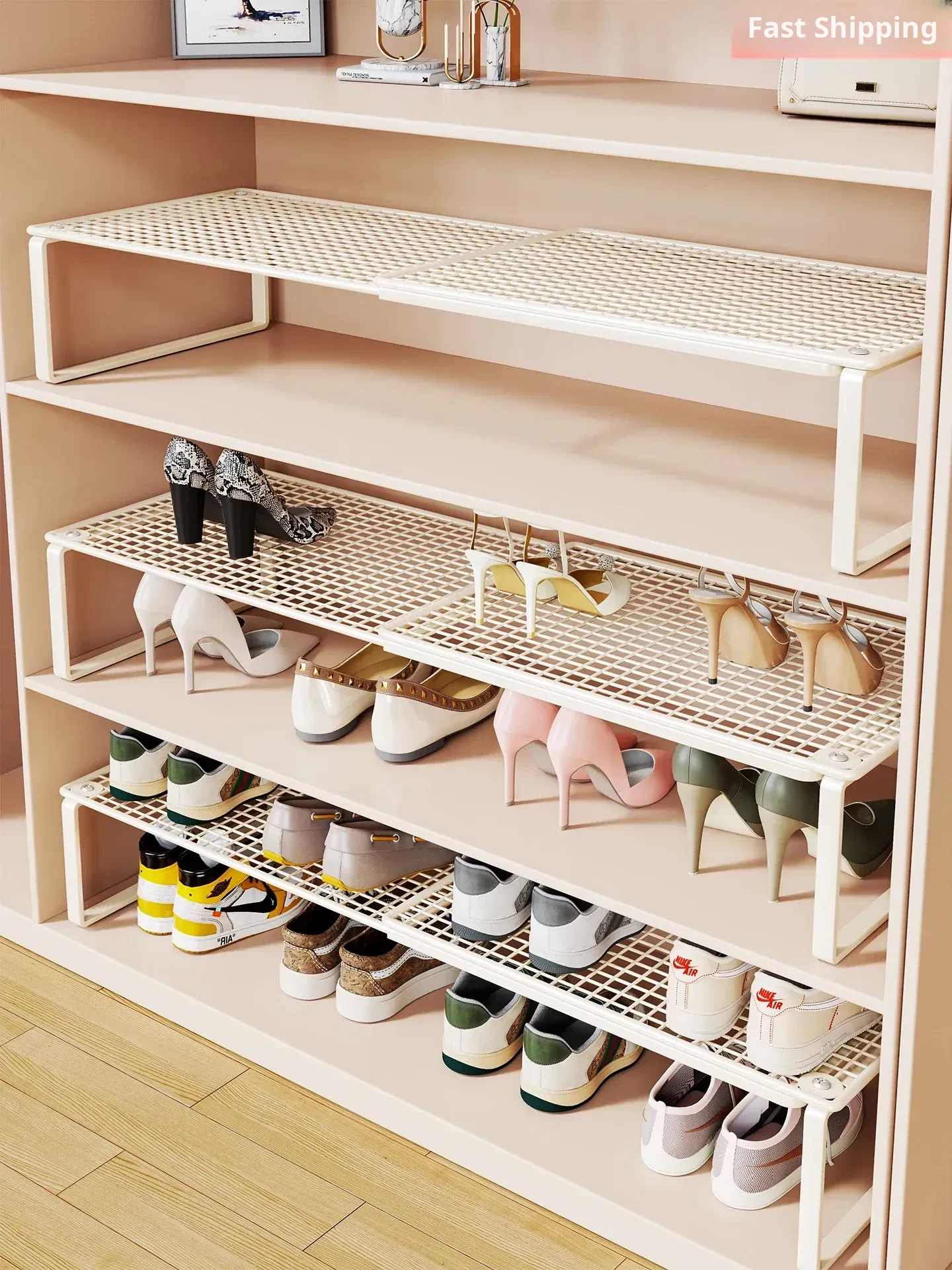 Space-Saving Shoe Rack with Layered Shelves - Double-Tier Shoe Organizer for Efficient Storage of Shoes and Slippers, Perfect for Home Organization!