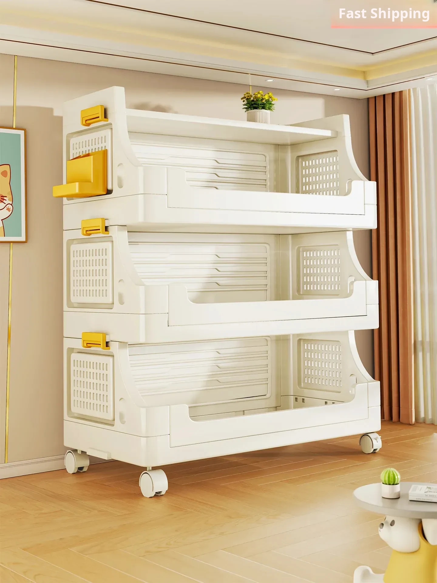 Multi-Layer Mobile Storage Cart for Home – Baby Snack Organizer, Floor Standing Shelves, Ideal for Living Room Organization and Book Storage. Perfect for Decluttering Your Space!