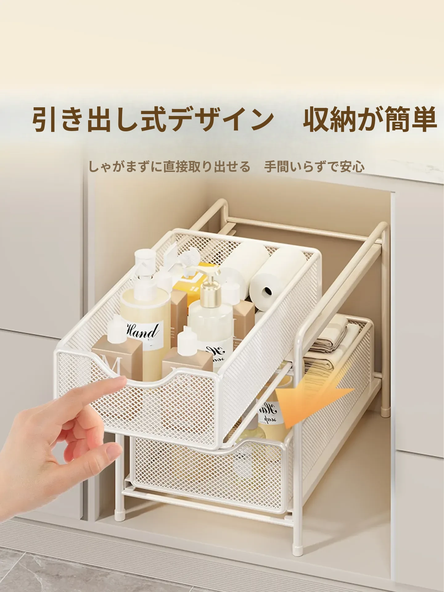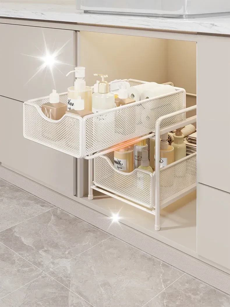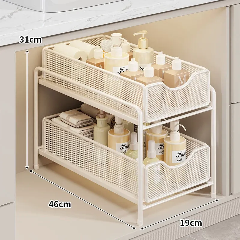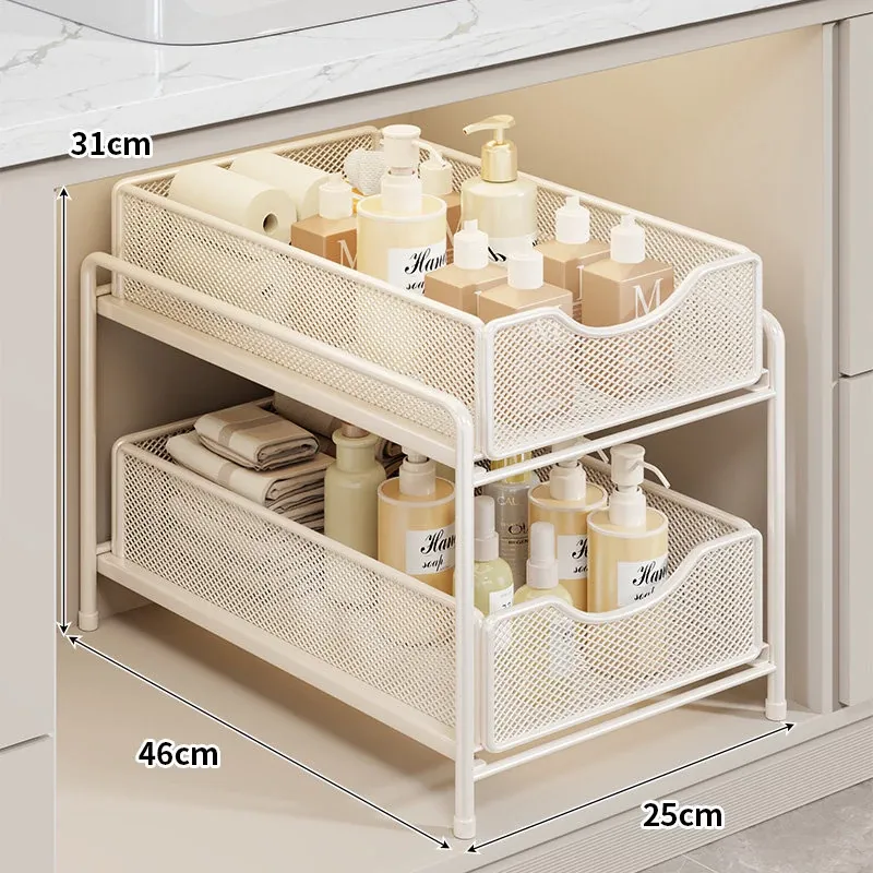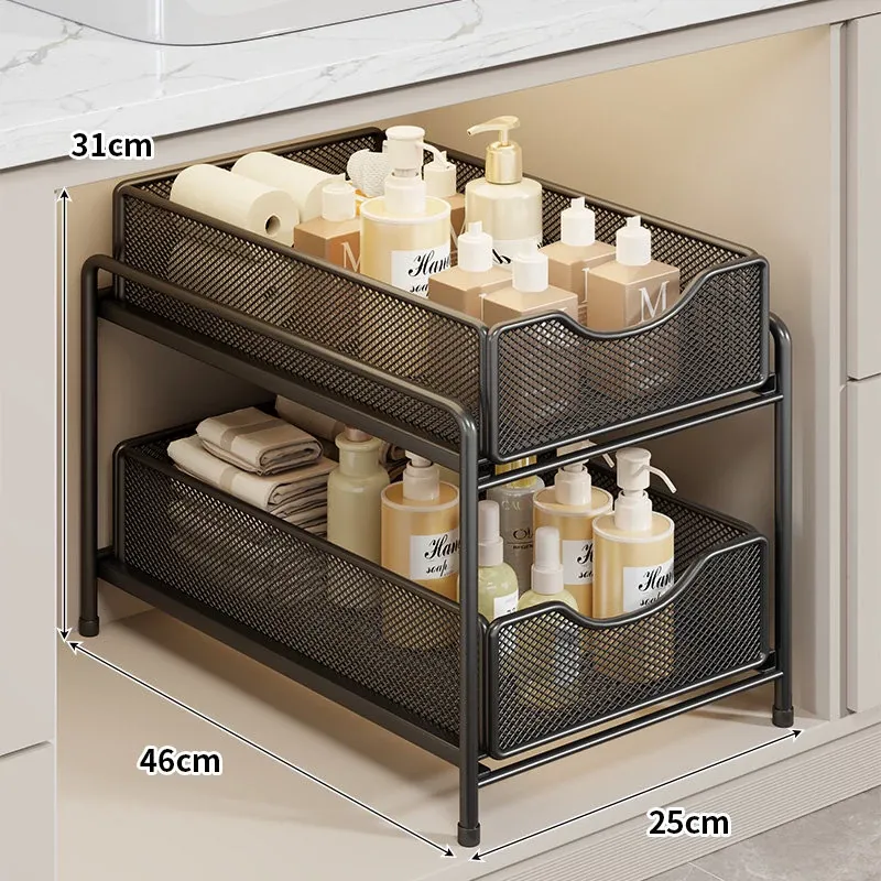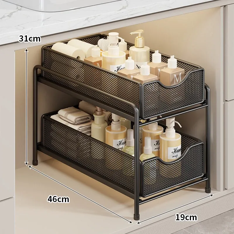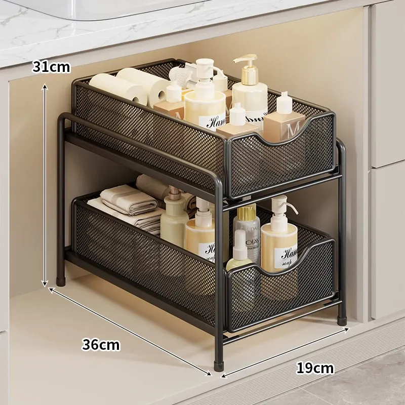 バスルーム引き出し式収納ラック - 洗面台下水槽用の便利な収納ボックス、キッチンの階層型整理棚でスペースを有効活用!あなたの生活をより快適にするアイデア商品です。