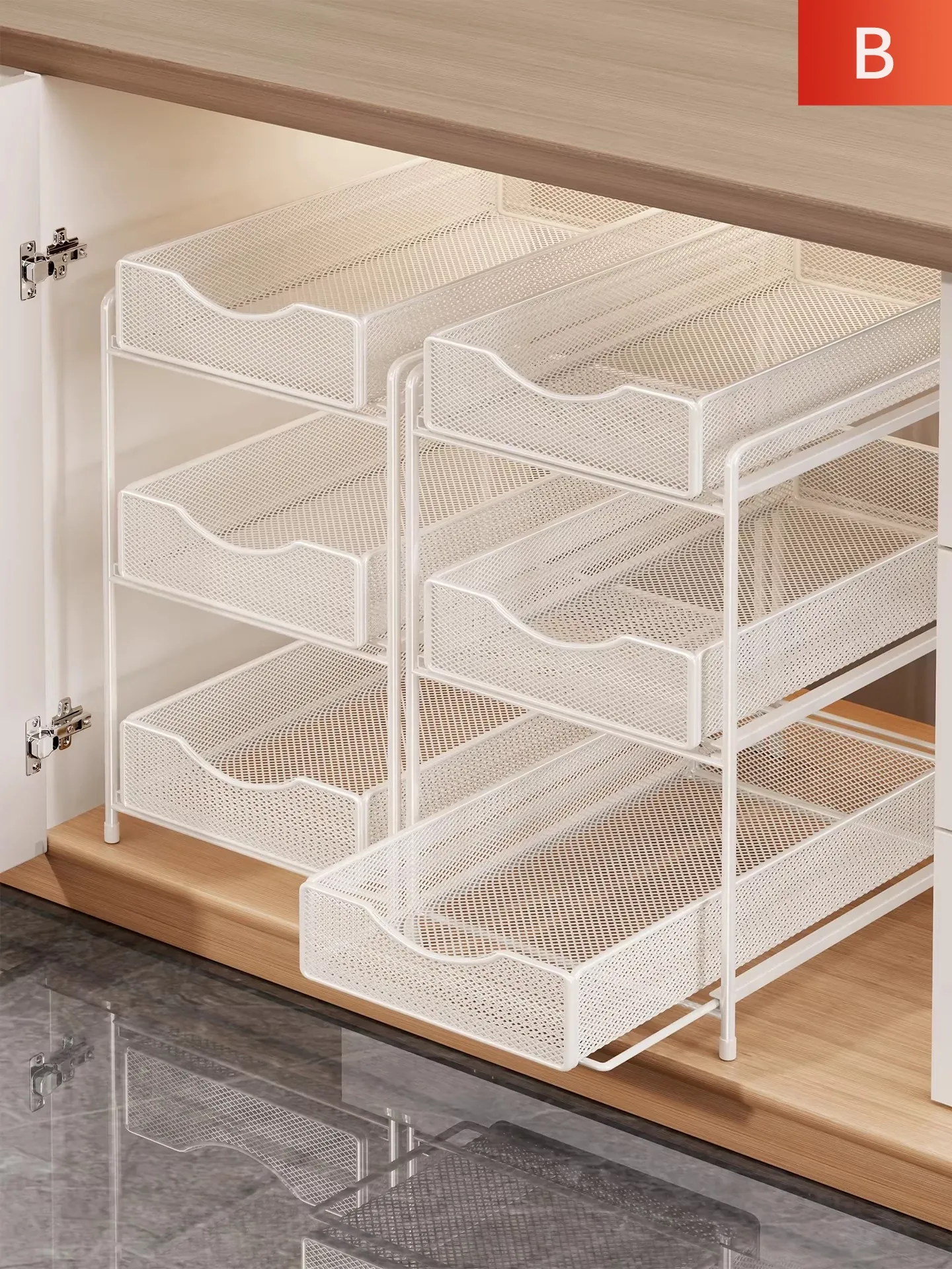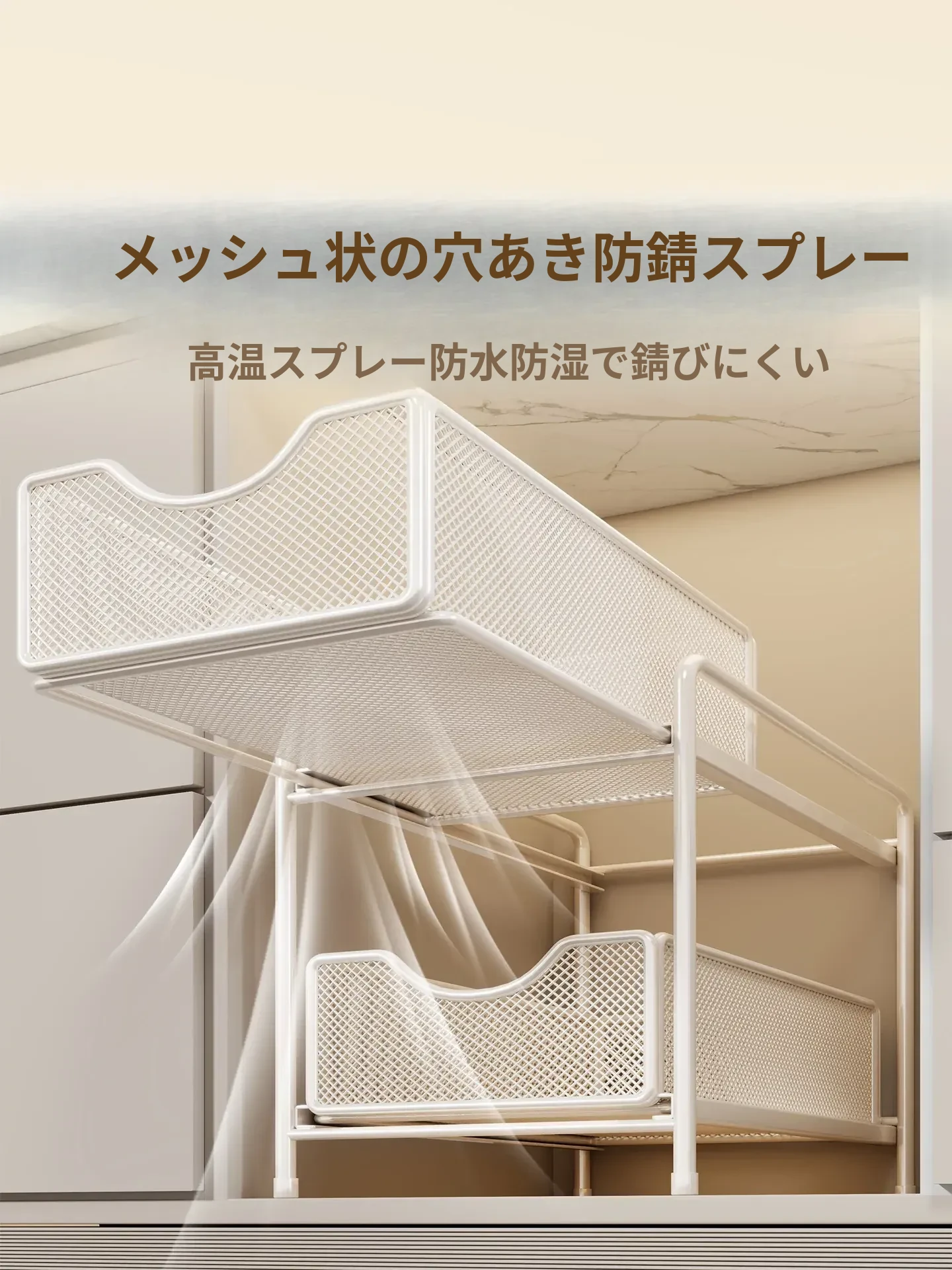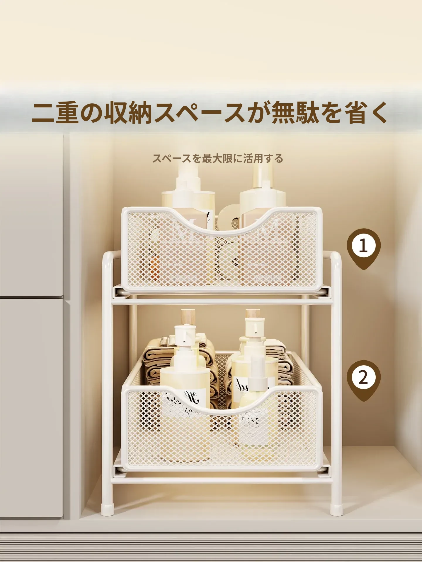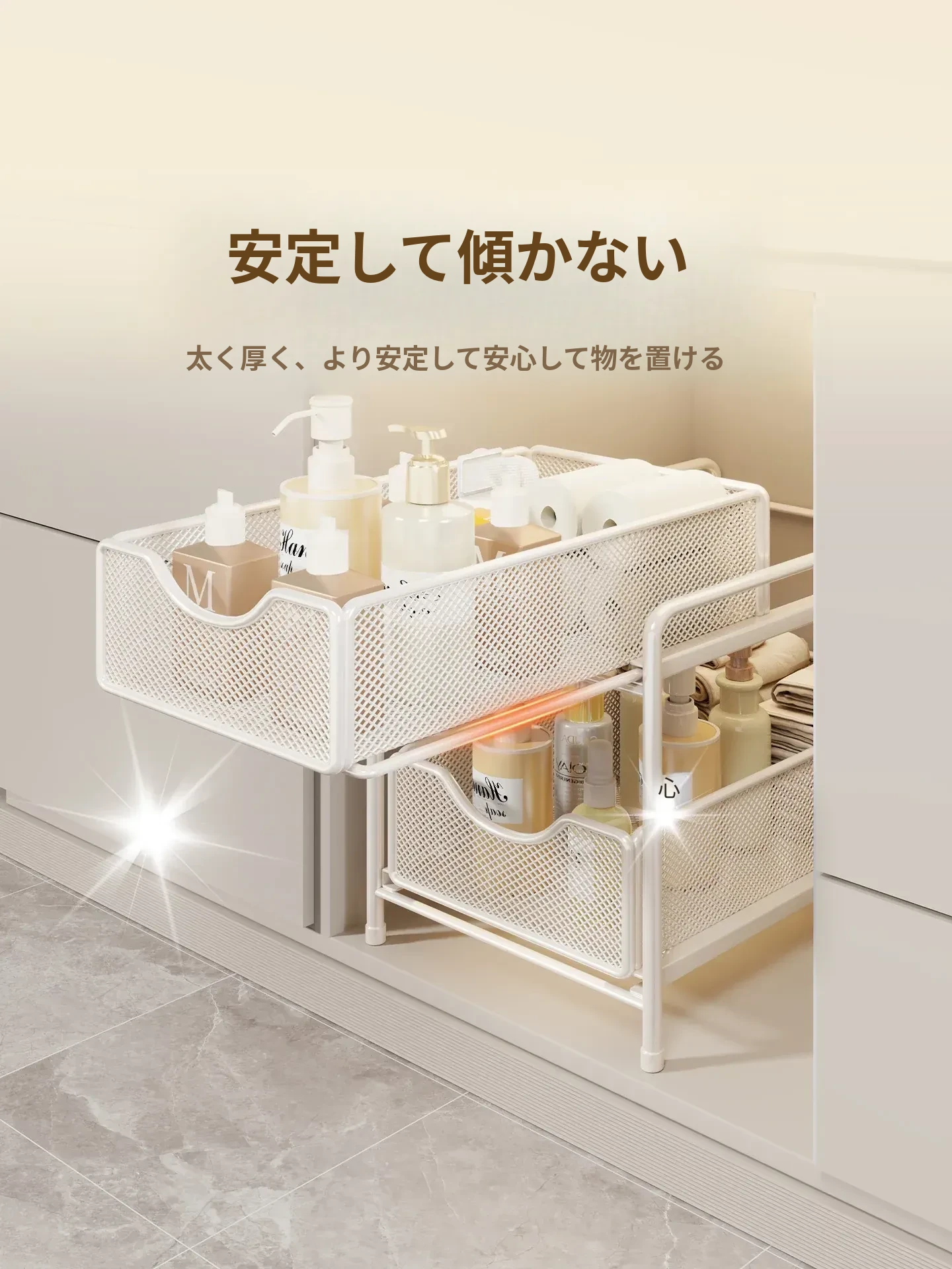 バスルーム引き出し式収納ラック - 洗面台下水槽用の便利な収納ボックス、キッチンの階層型整理棚でスペースを有効活用!あなたの生活をより快適にするアイデア商品です。