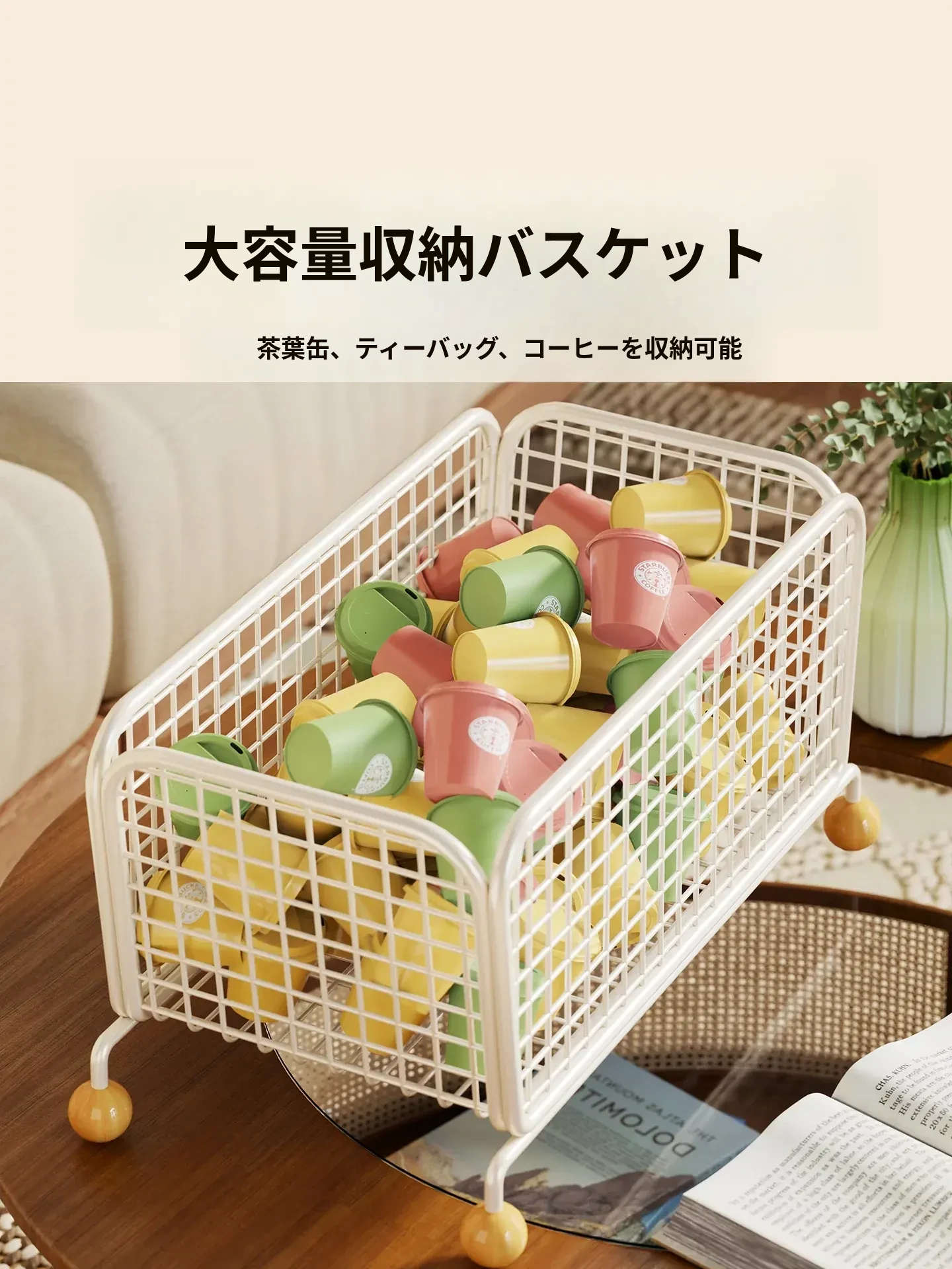 デスク整理ボックス|オフィス用ティーバッグ・コーヒーカプセル収納ケース|ティーコーナー用茶葉ストレージバスケット・スナック置き場|おしゃれで便利な整理整頓アイテム!