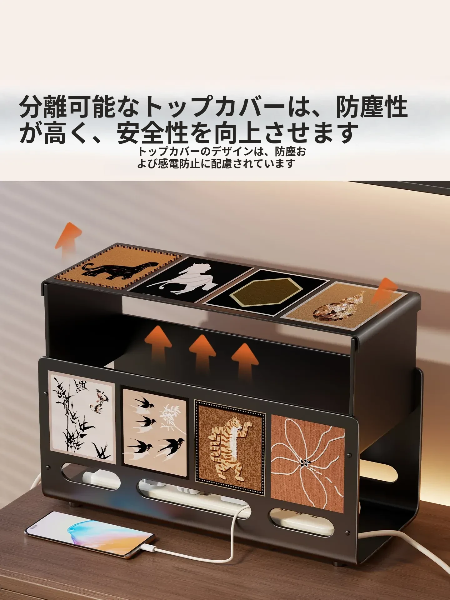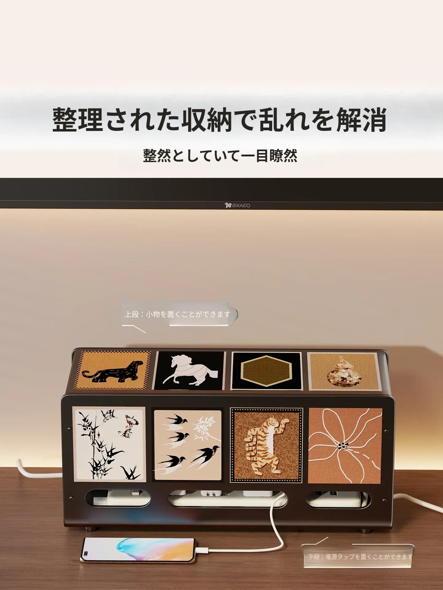 デスクトップ電源収納ボックス|コンセント&コード隠し|ケーブル整理に最適!電源タップやデータケーブルをすっきり収納し、スッキリした空間を実現。見た目も美しく、機能性抜群のアイテムです!
