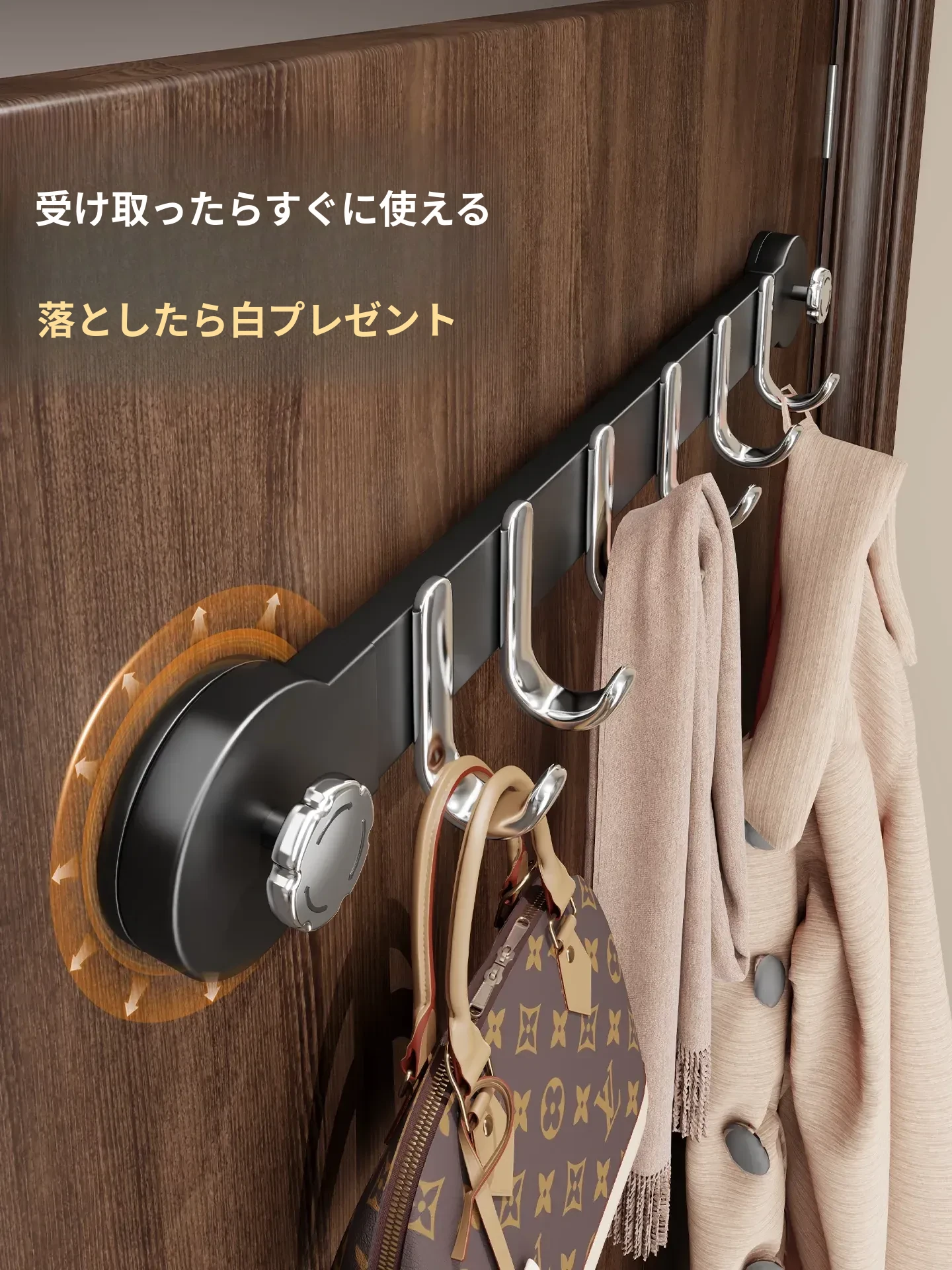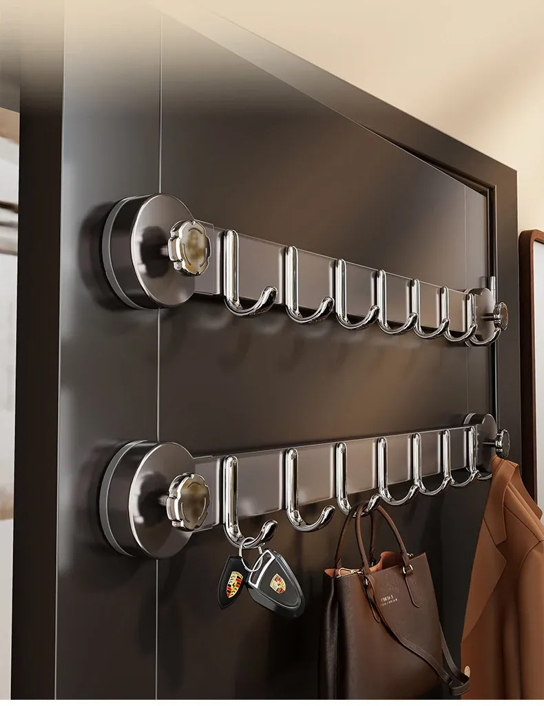 ドア後吸盤フック - 簡単取付け、穴あけ不要!多機能壁掛けハンガー、衣類収納に最適な家庭用粘着フック、便利なドア掛け神器!