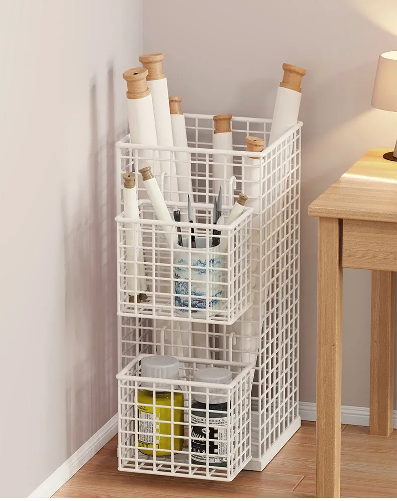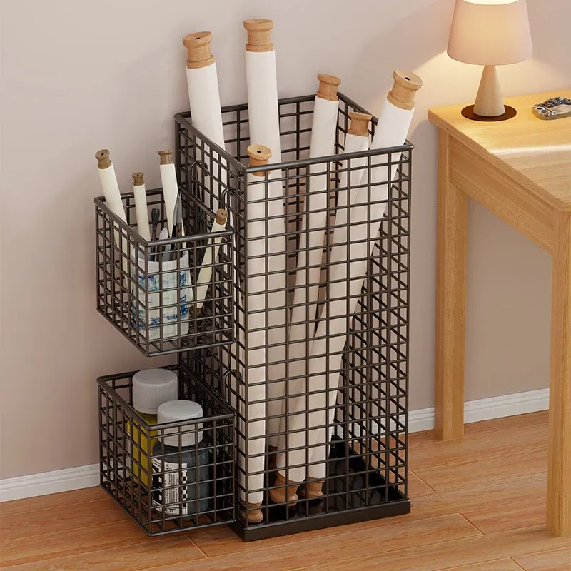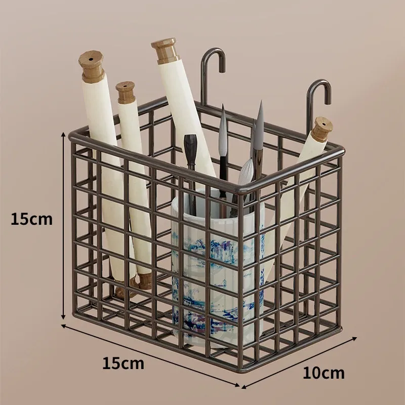 書道用品収納バスケット - 筆や書画、宣紙作品をスマートに整理!シンプルでスタイリッシュな長方形アイアン製キャリーバッグ、あなたのアートを美しく保管!