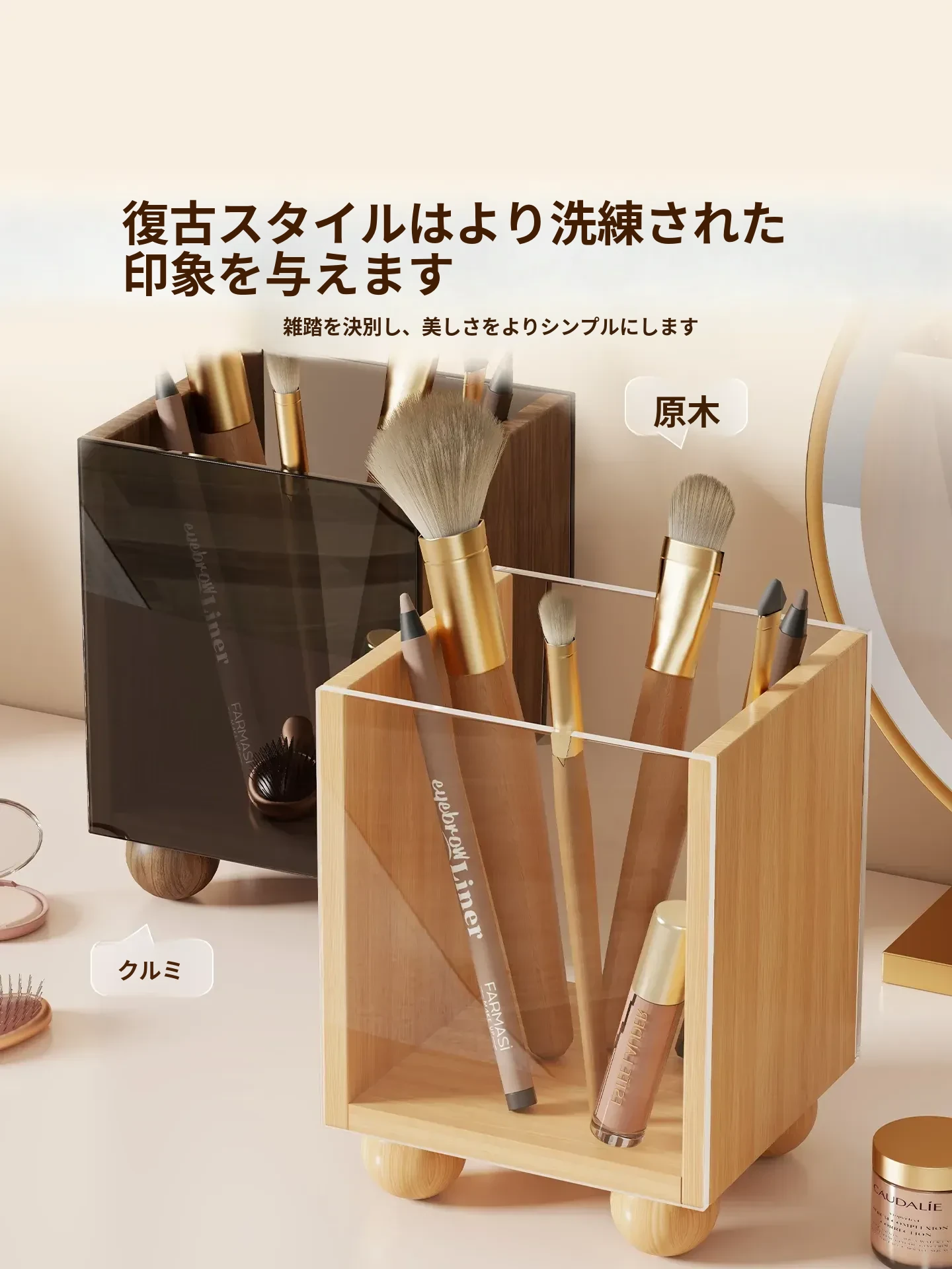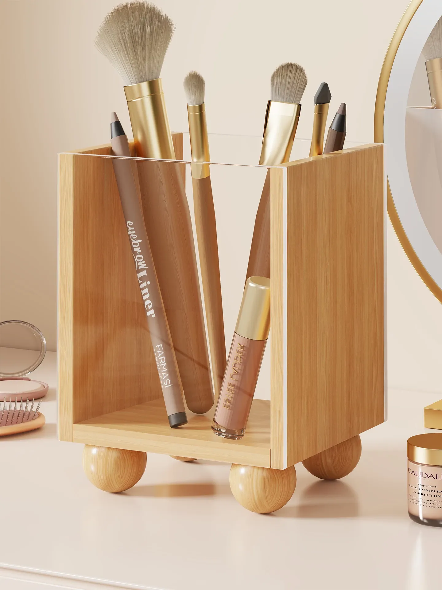 高級感溢れるコスメ収納!メイク台用化粧ブラシ&眉ペンスタンド、スキンケア&リップのデスクオーガナイザー、子供用ペン立てとしても使える多機能アイテム!お部屋をスタイリッシュに演出します。
