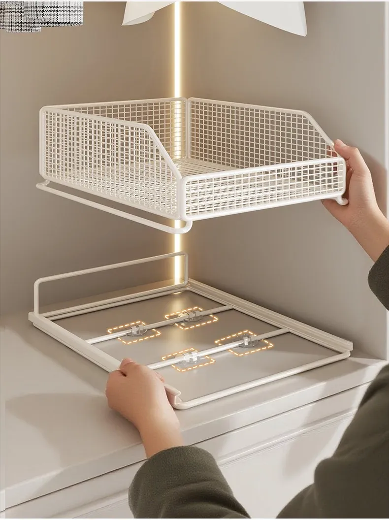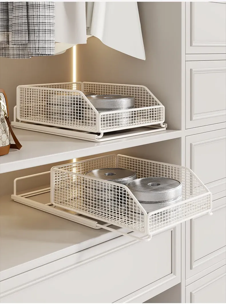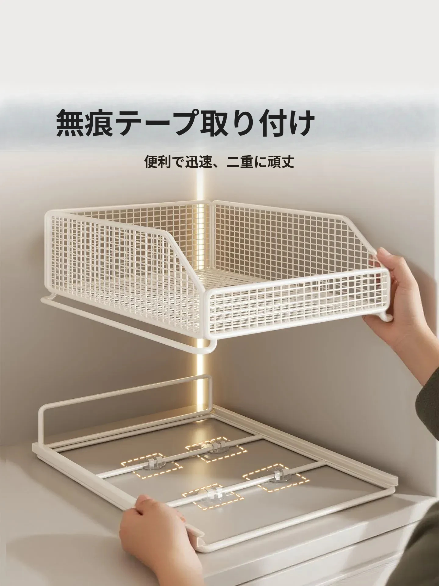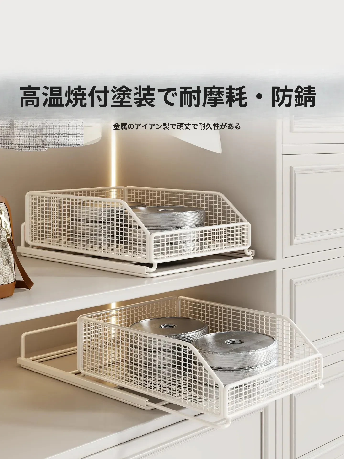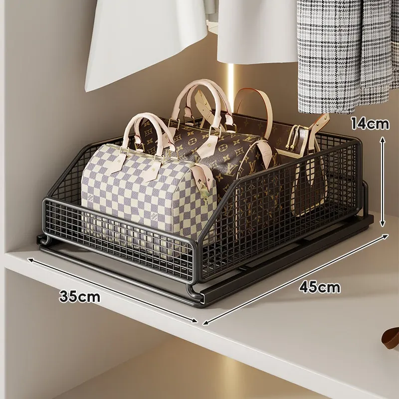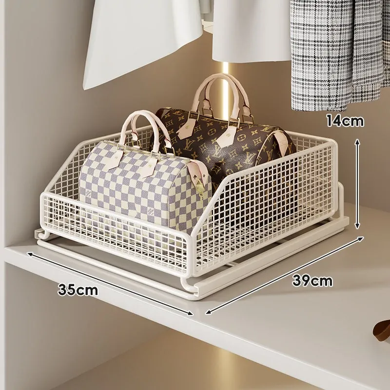 クローゼット引き出し式伸縮型バッグ収納ラック - 穴あけ不要で簡単設置!家庭用クローゼットに最適な分別収納ネットバスケット。整理整頓が楽々!