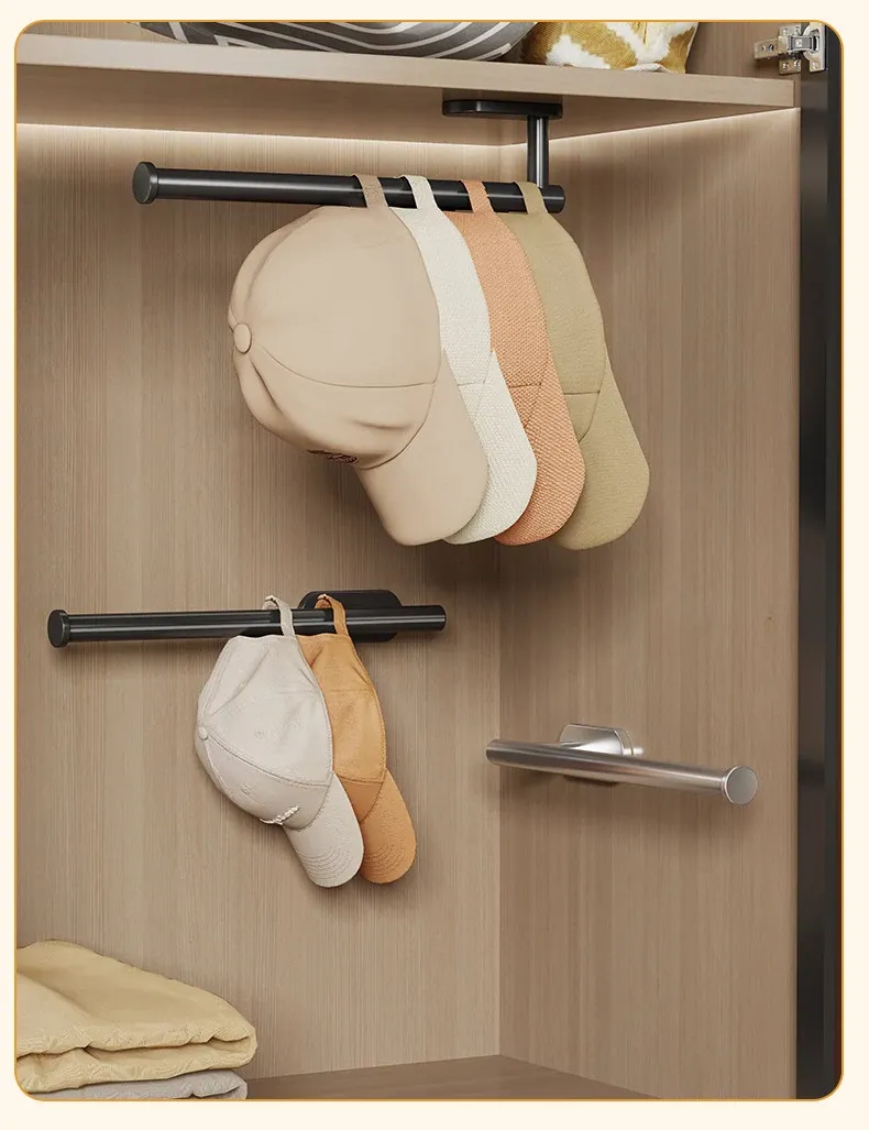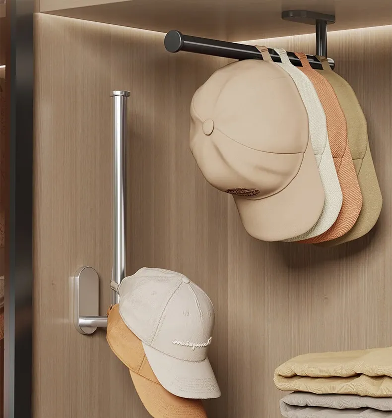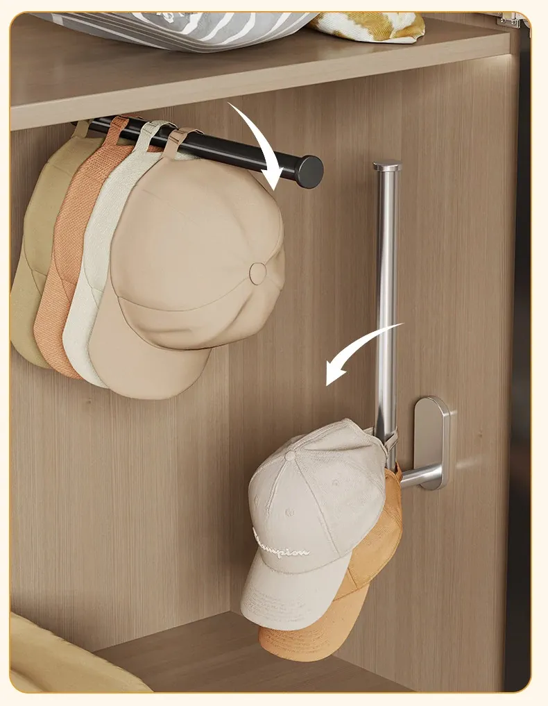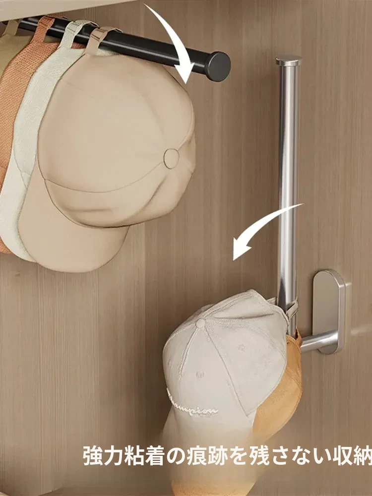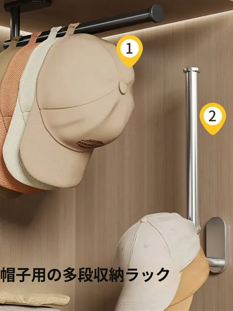 帽子収納マジック!家庭用ハンガーでキャップや野球帽をスッキリ整理。穴を開けずに壁に簡単取り付け、スペースを有効活用できる多機能フック!おしゃれに帽子をディスプレイしませんか?