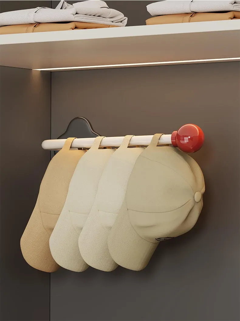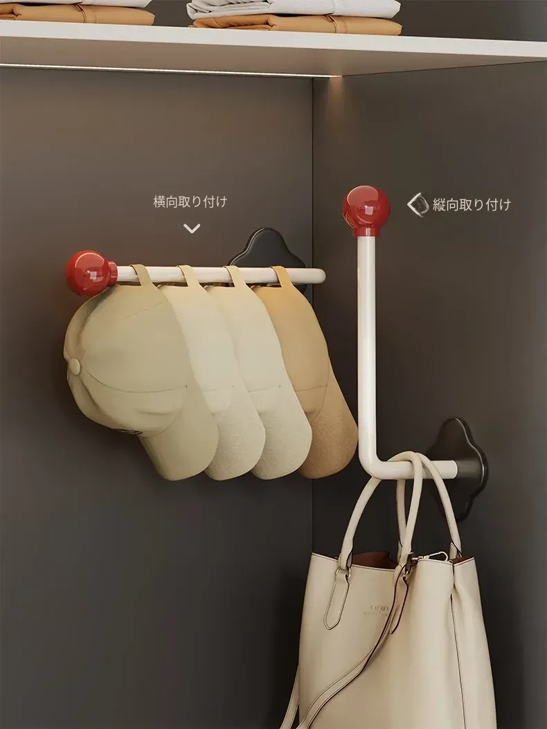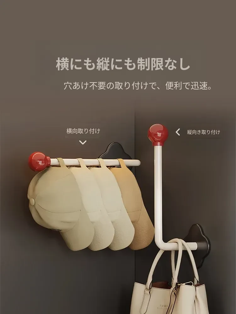 帽子収納のマジック!クローゼットサイドに無痕で貼り付けるフック、穴あけ不要の壁掛け式。キャップや野球帽専用のスタイリッシュな帽子ラック!整理整頓でお部屋をスッキリ!