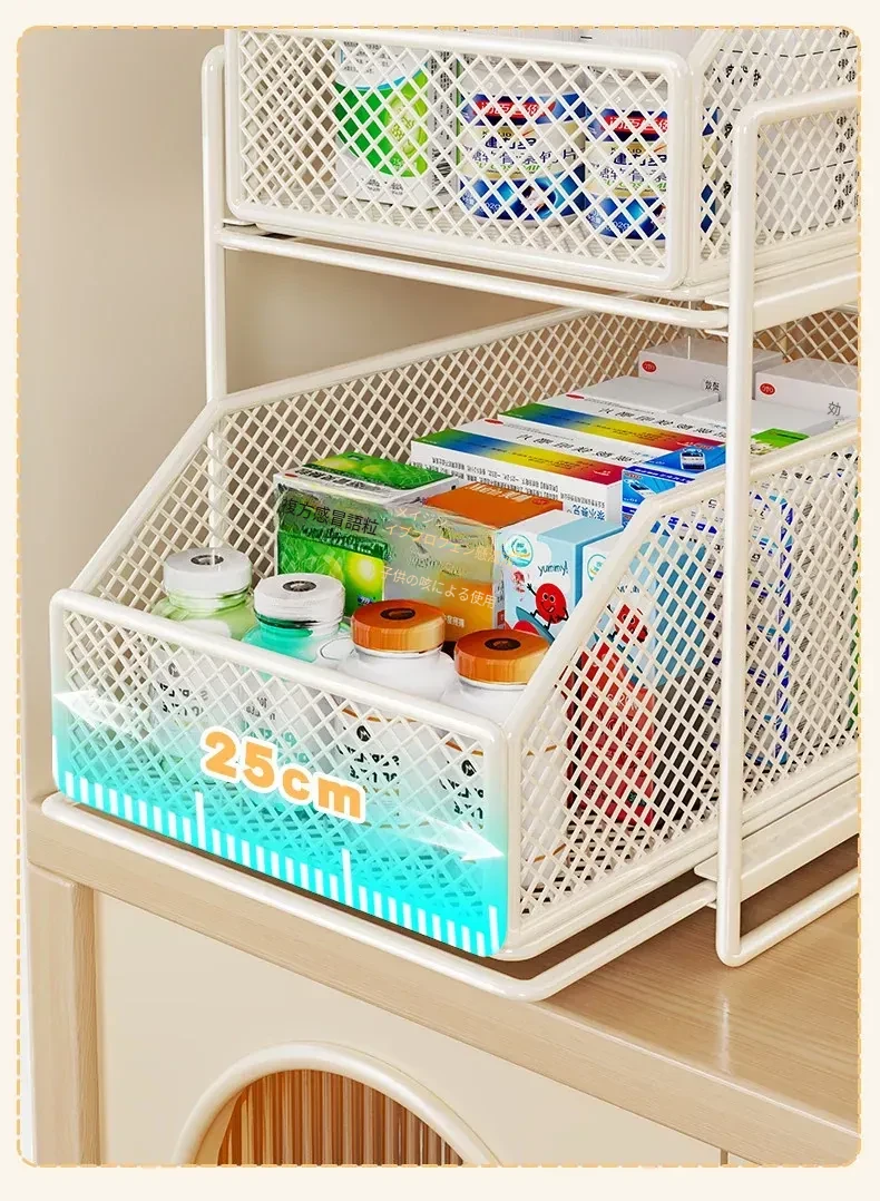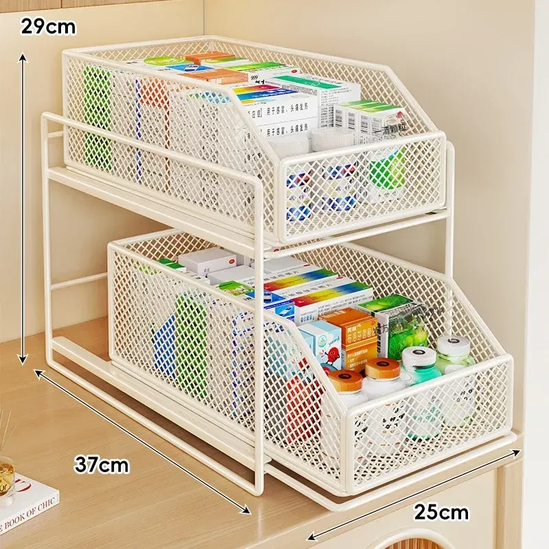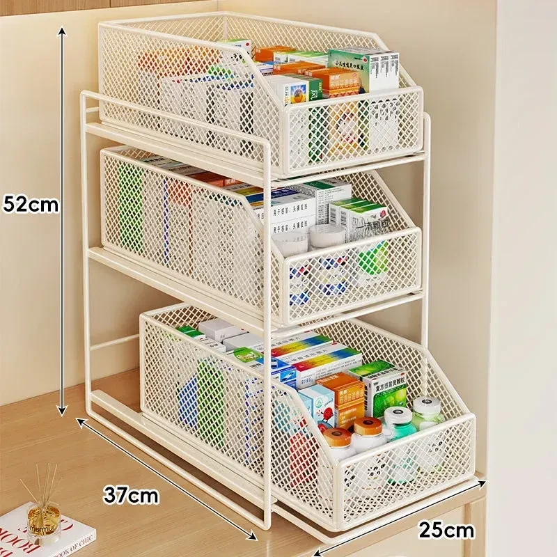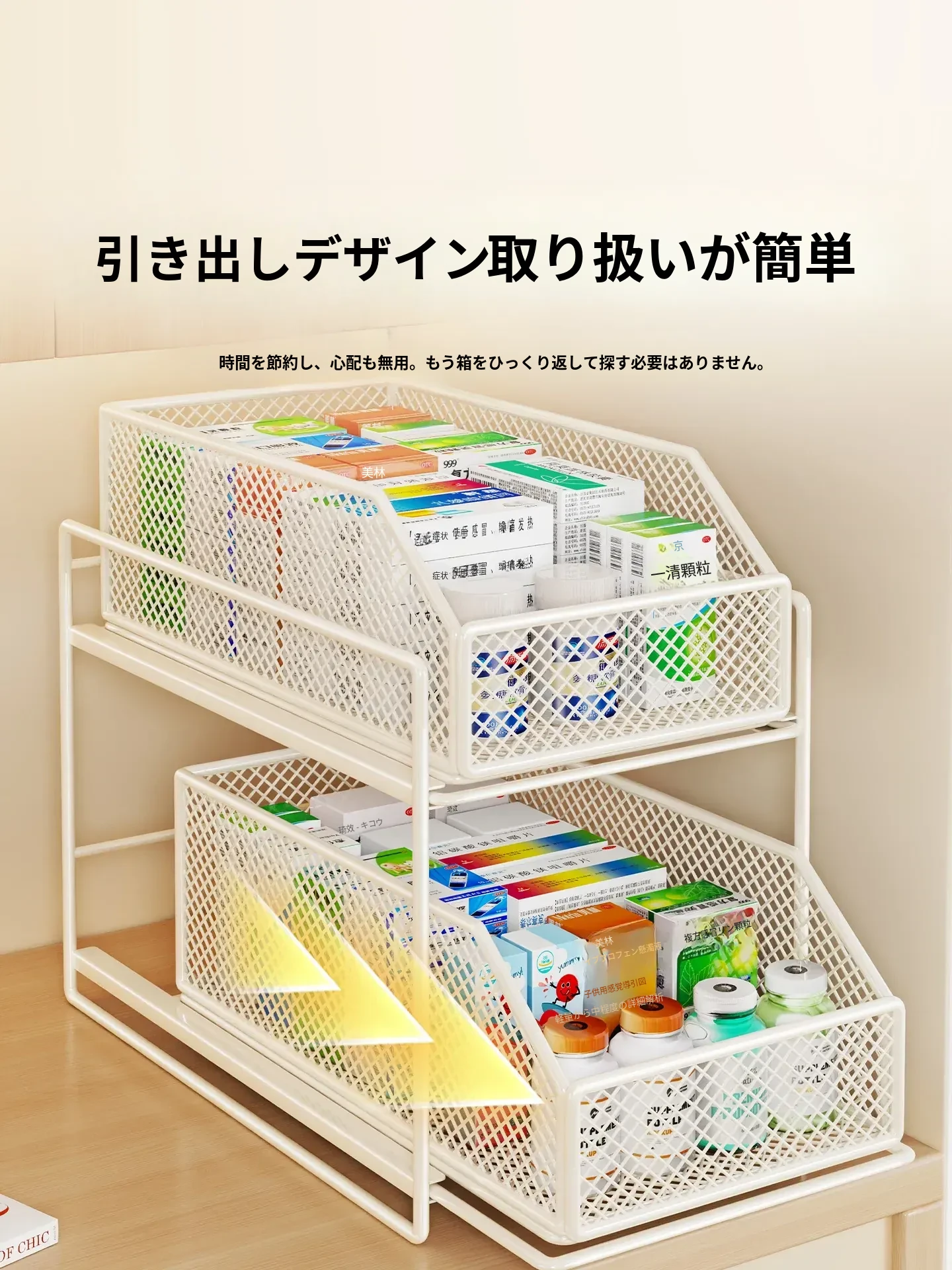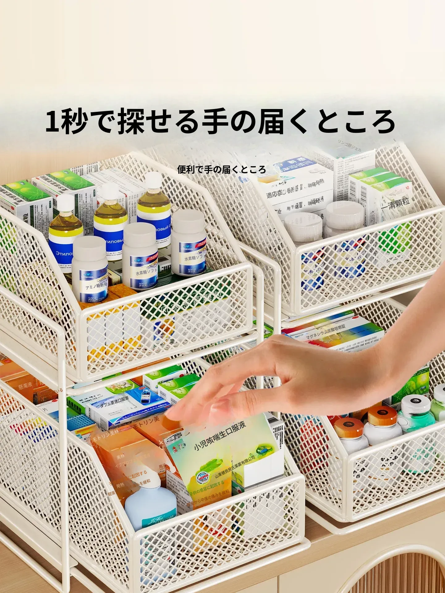 家庭用薬品収納ラック - 通気性抜群の湿気対策!多層仕切り付き引き出し式緊急医薬品収納ボックスで、整理整頓も簡単。あなたの健康を守る頼れるパートナー!