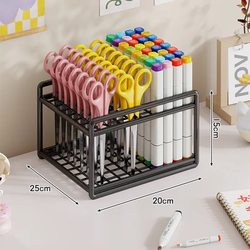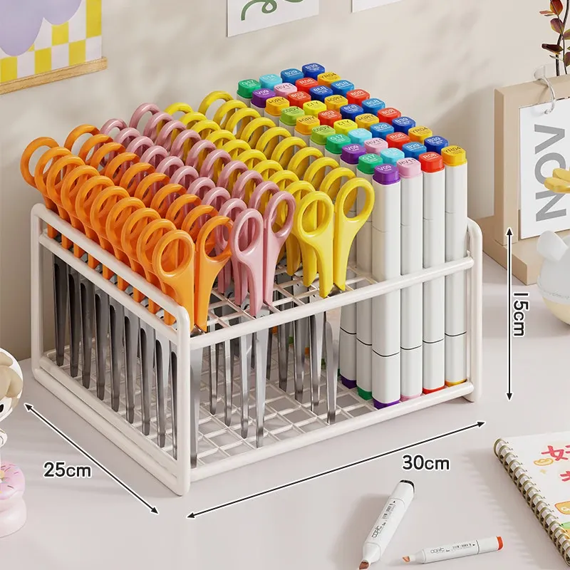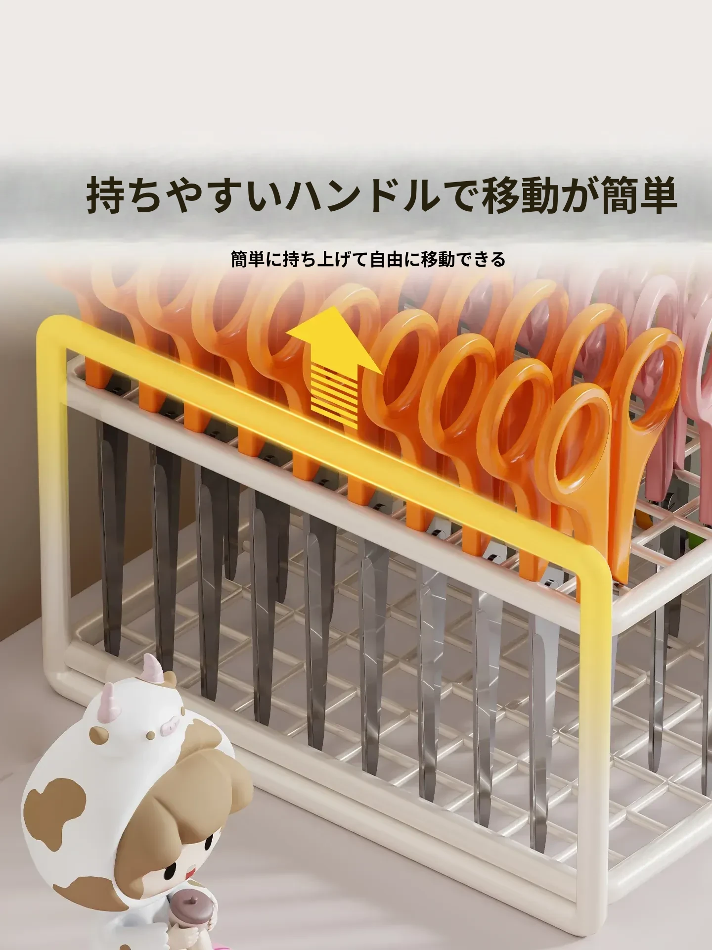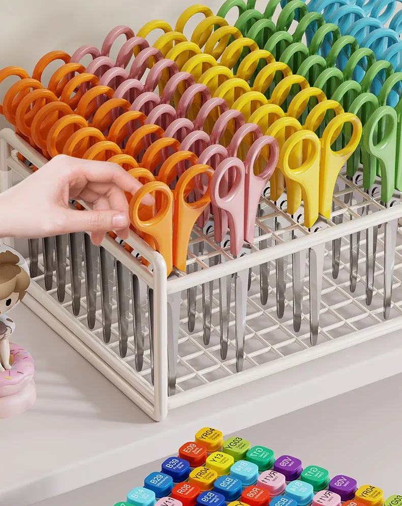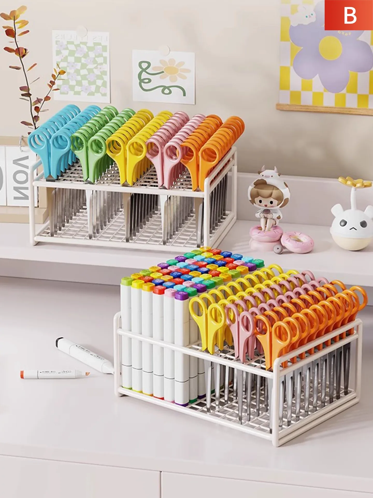 デスク用安全ハサミ収納ボックス|幼稚園向け美術道具整理ラック|子供用分け収納|クレヨン・絵筆をスッキリ整理!