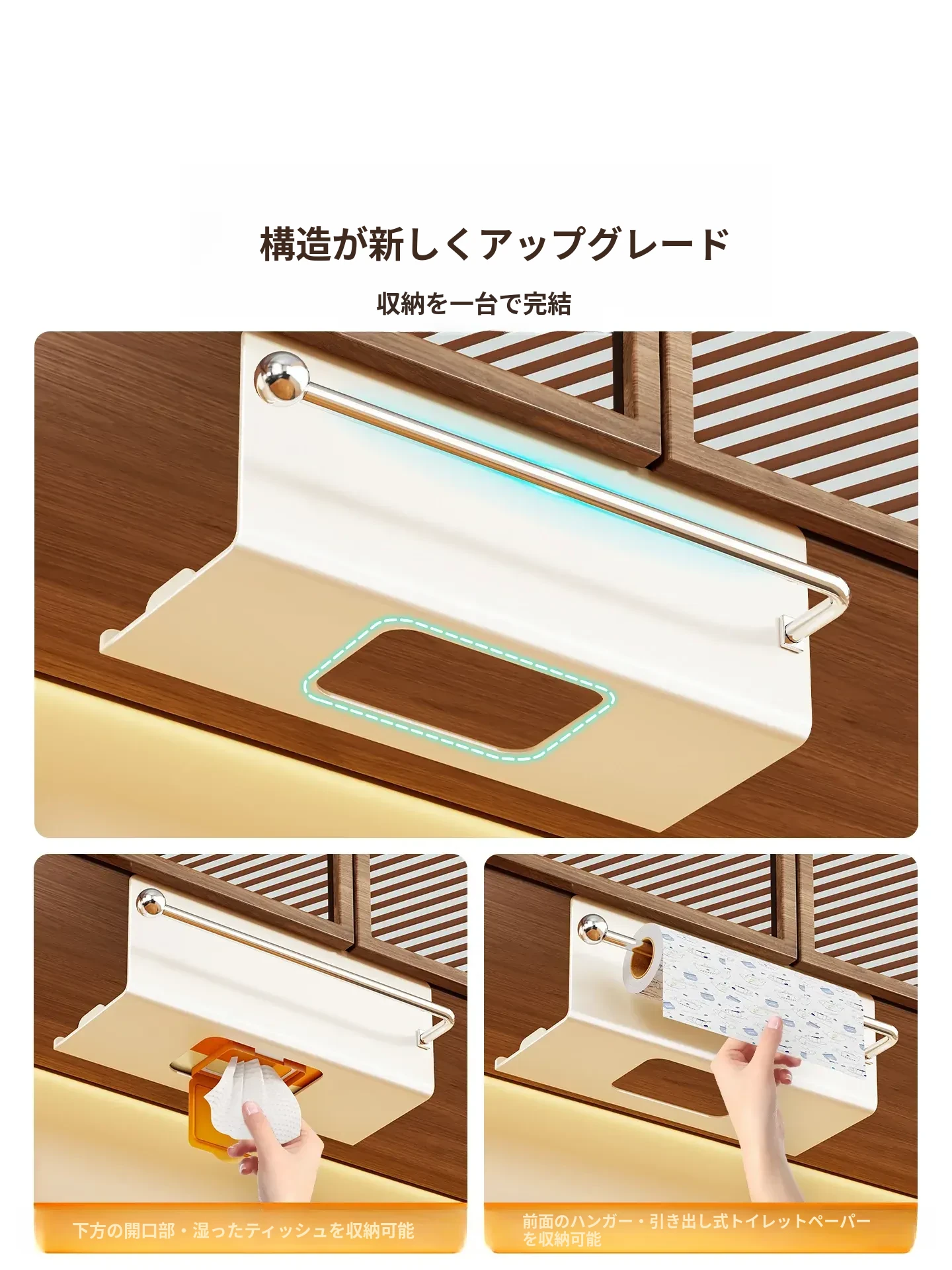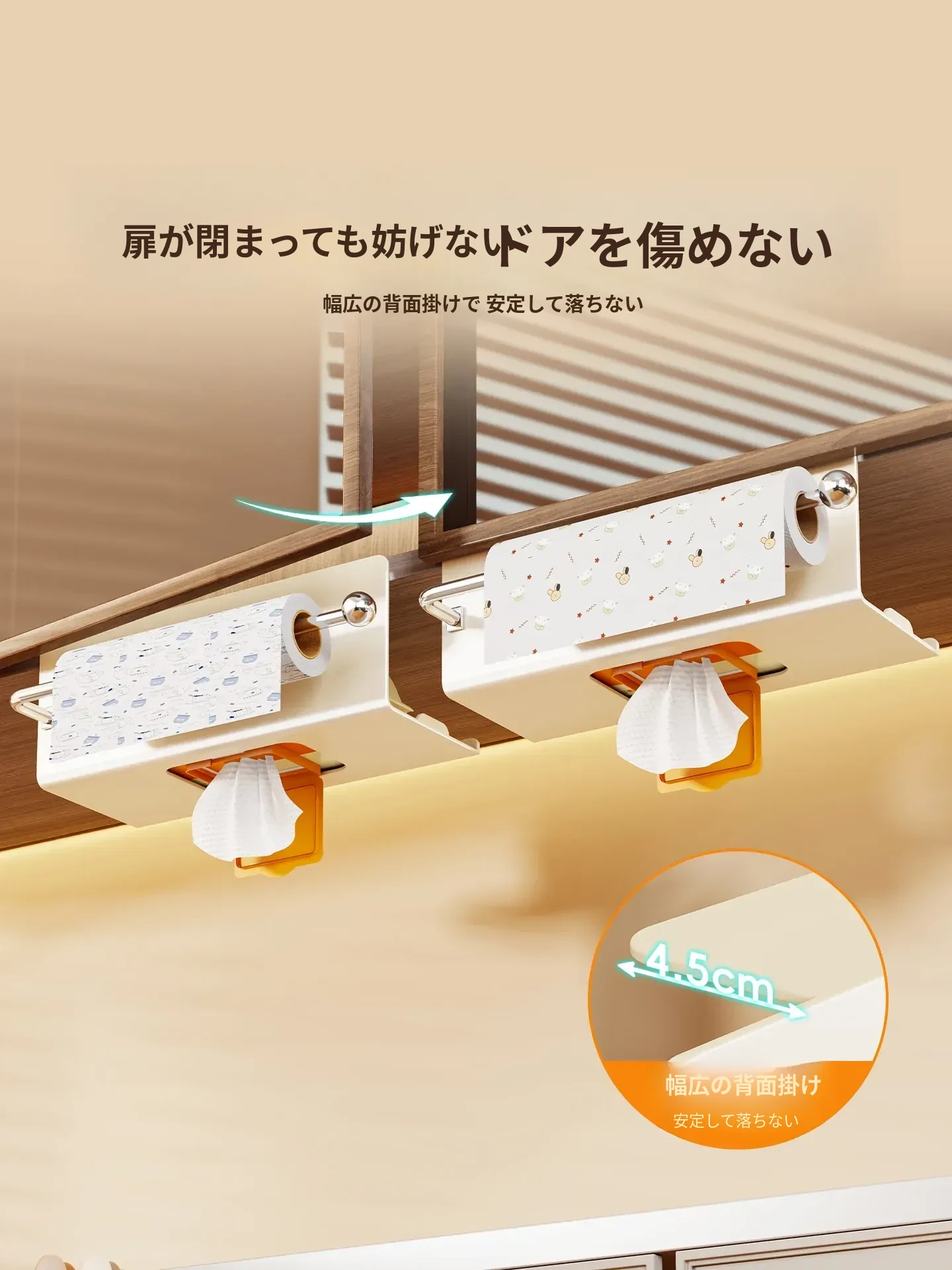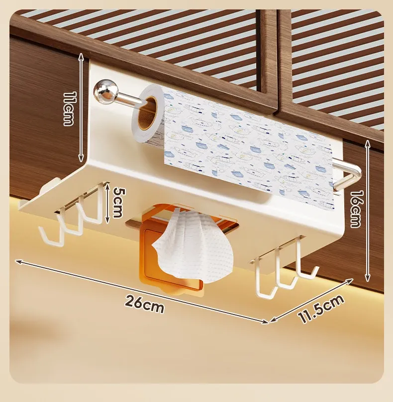 キッチン用湿巾収納ボックス|ティッシュホルダー|吊り下げ式キッチンペーパーケース|キャビネットに最適|使いやすい掛け式|布巾やラップも収納可能!スッキリ整理整頓!