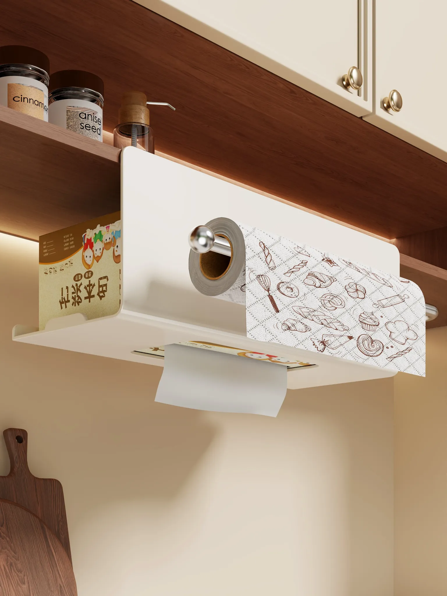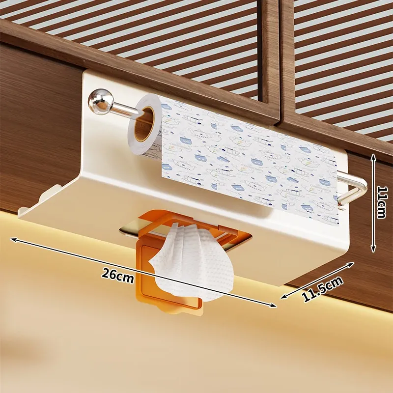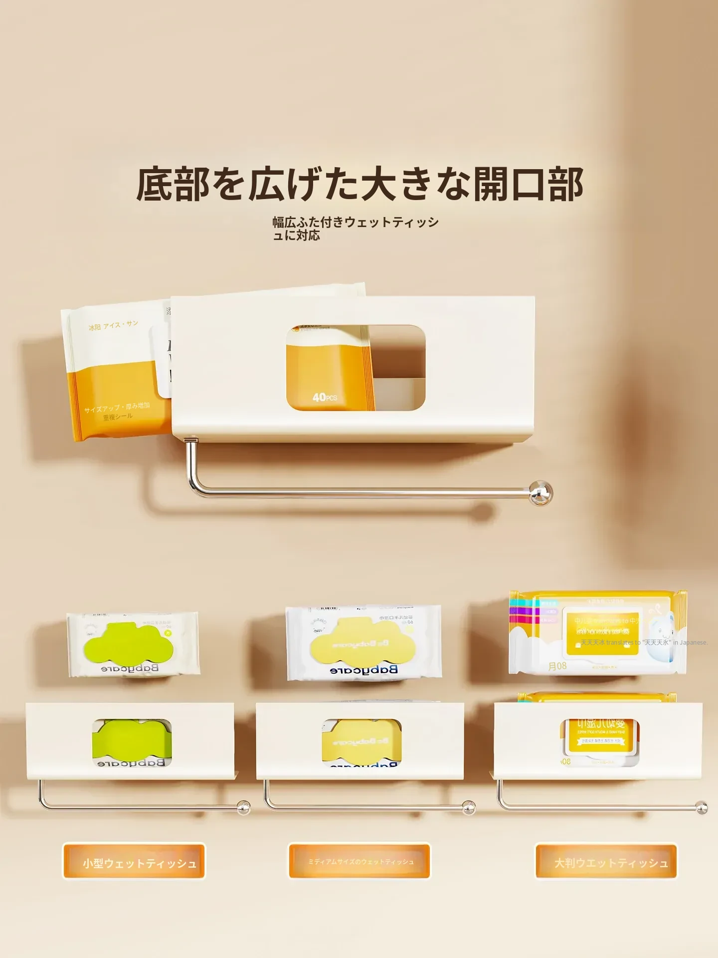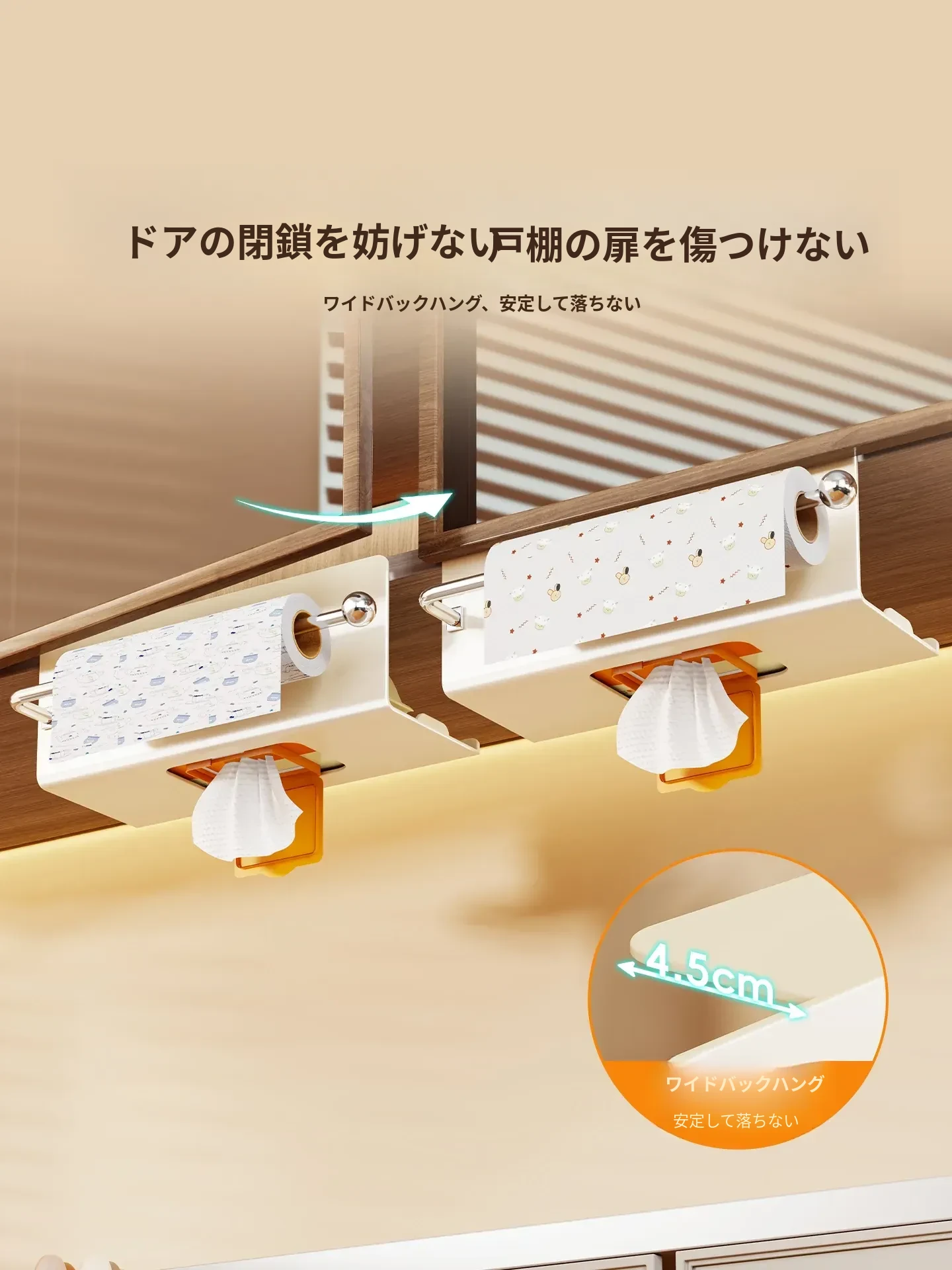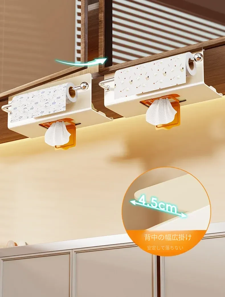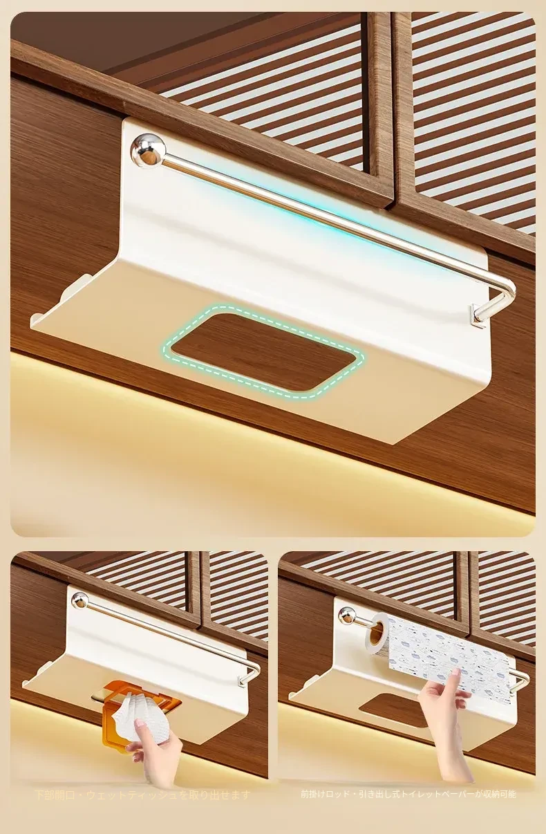 キッチン用ウェットティッシュ収納ボックス - ペーパータオル・ラップ・布巾もスッキリ整理!吊り下げ式でスペースを有効活用、クリーンでスタイリッシュなキッチンを実現!