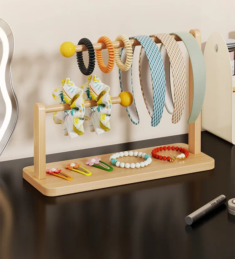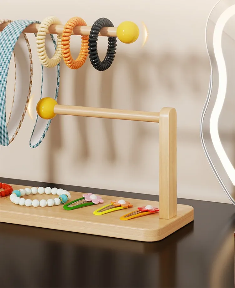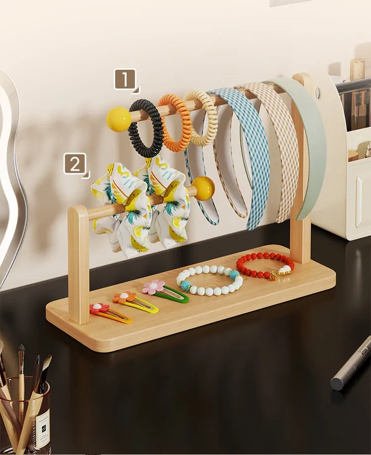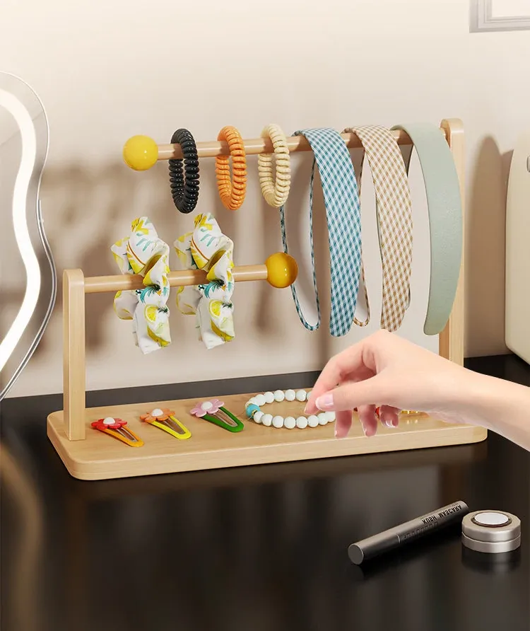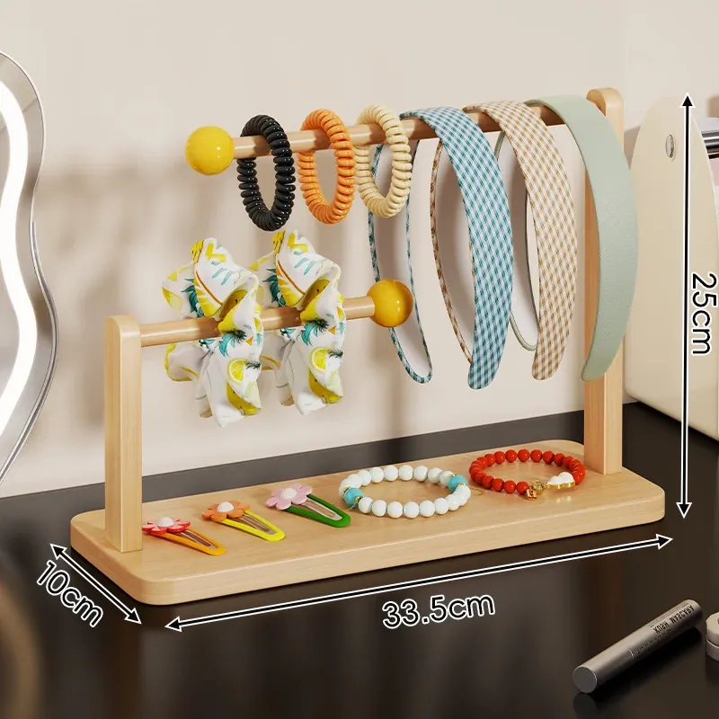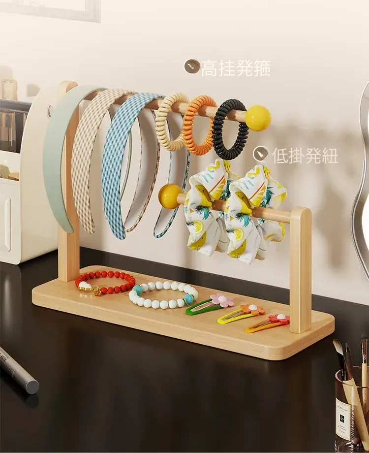 デスク上のヘアアクセサリー収納マジック!大容量ヘアバンド整理ラック - 木製のヘアゴムスタンド、ヘアピンディスプレイも完璧に!おしゃれなインテリアで、使いやすさ抜群。あなたのスタイルを引き立てる必需品です!
