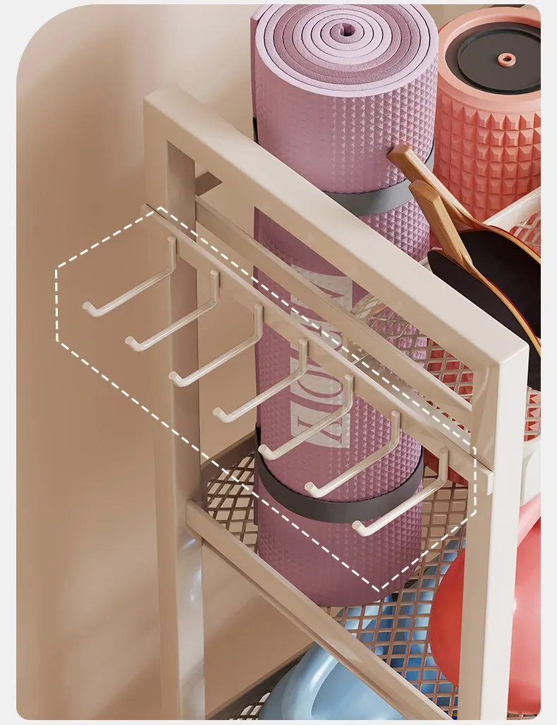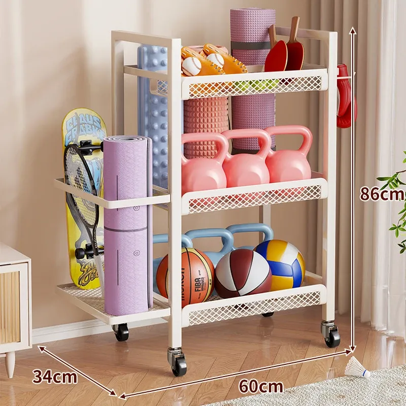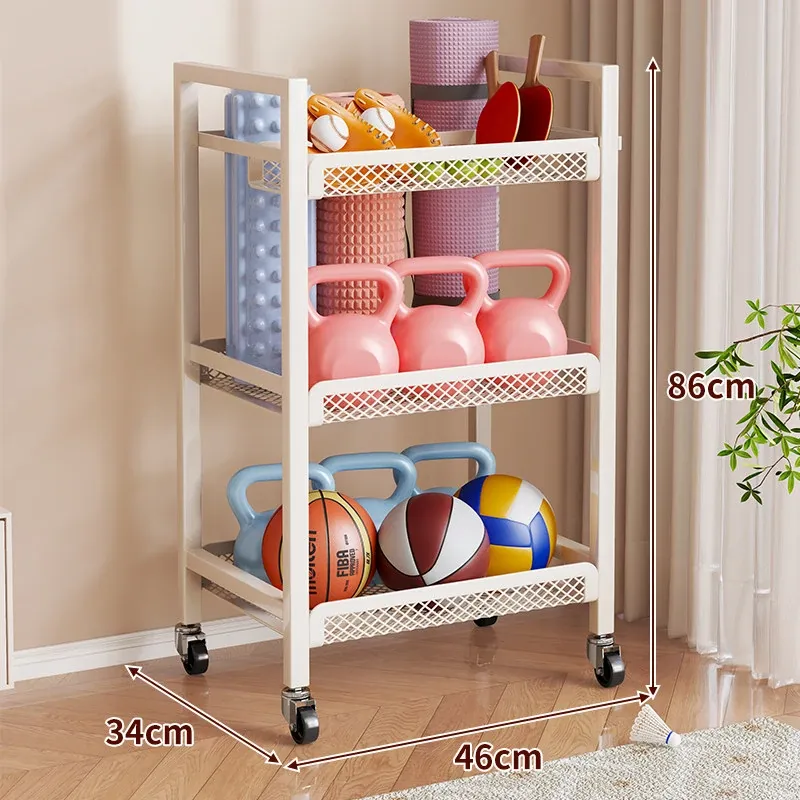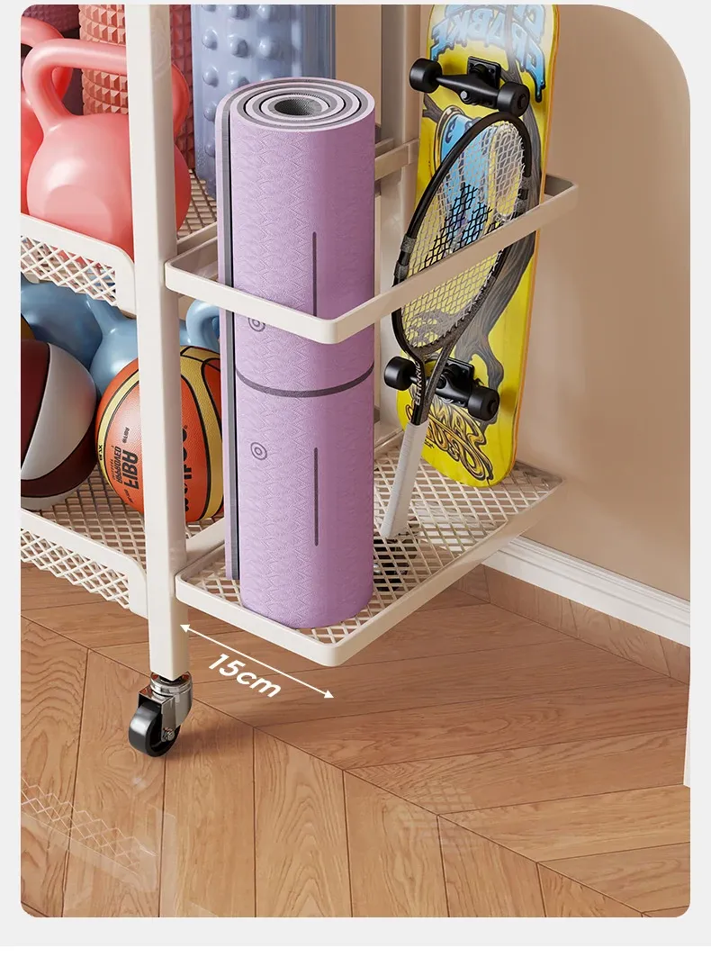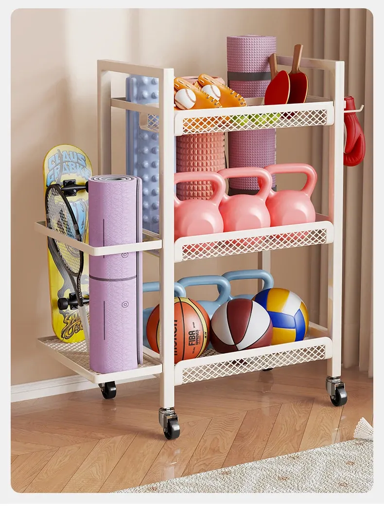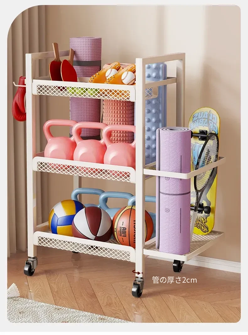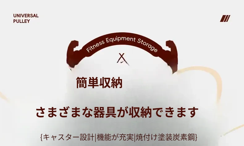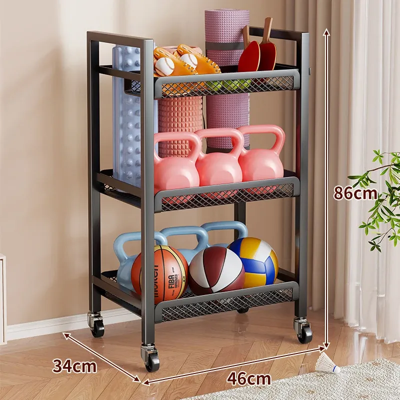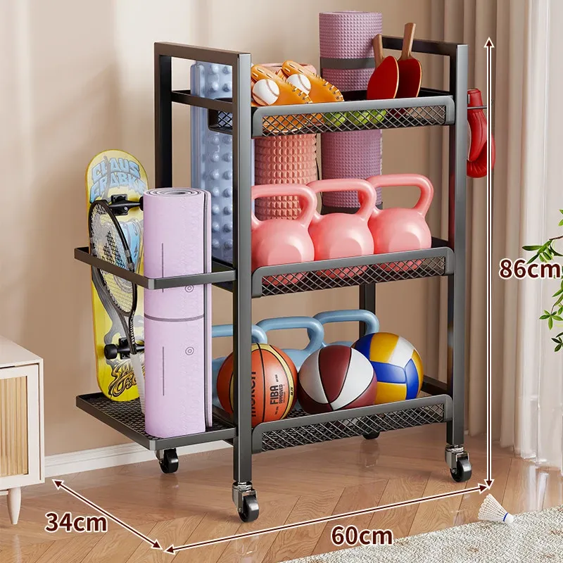大容量・可移动なフィットネス器具収納ラック!ダンベルやケトルベル、ヨガマットもスッキリ整理。自宅での運動をもっと快適に!
