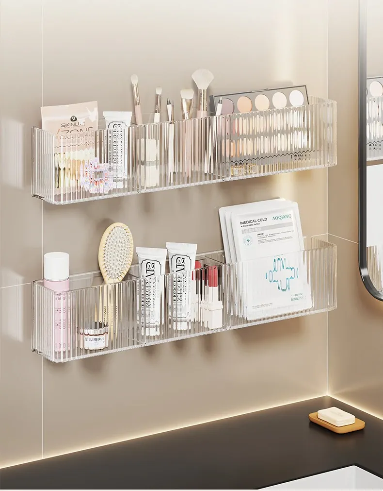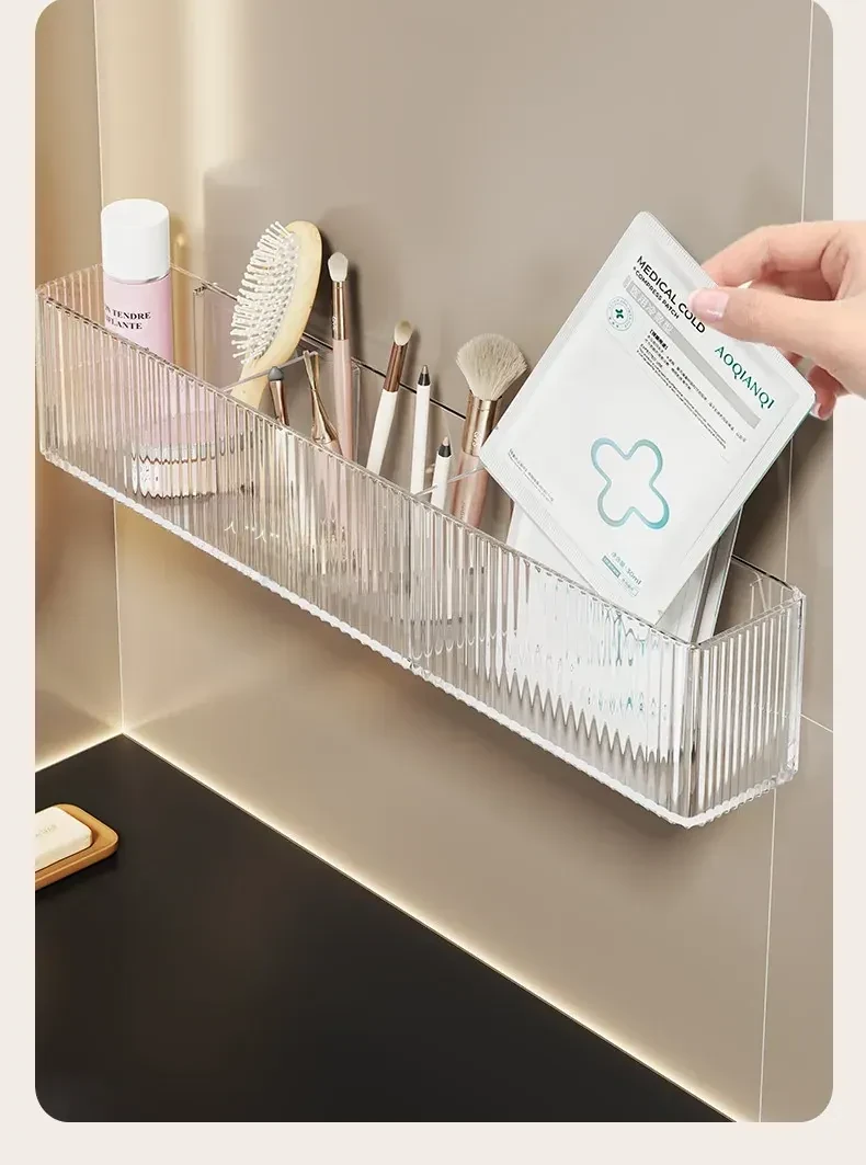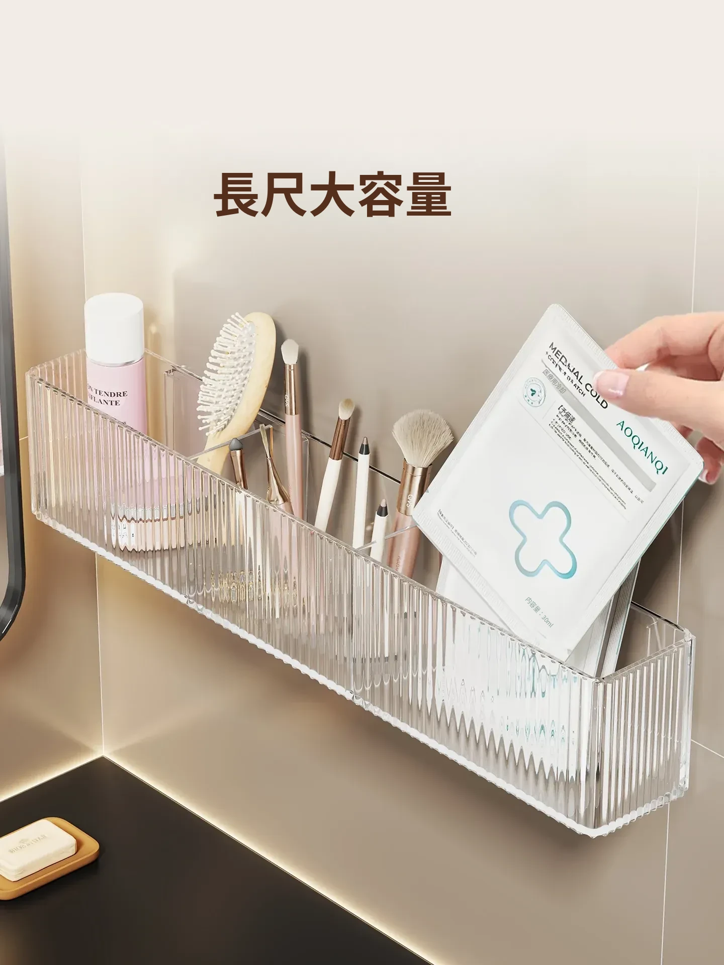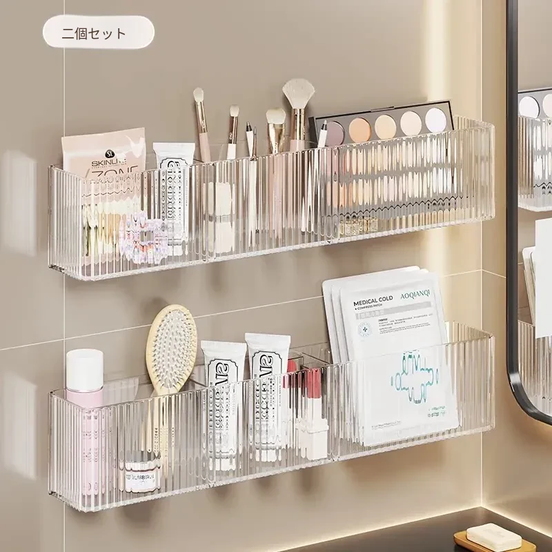 バスルームの壁掛け収納ラック - 大容量の透明フェイスマスク収納ボックスで、スキンケアアイテムをすっきり整理!おしゃれで機能的、あなたの洗面所を美しく保ちます。