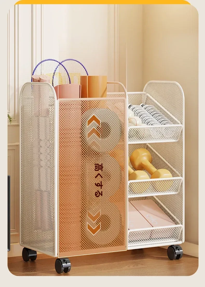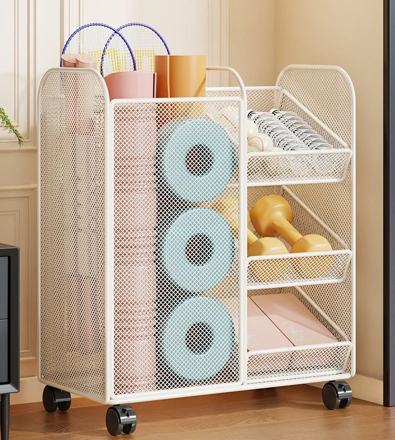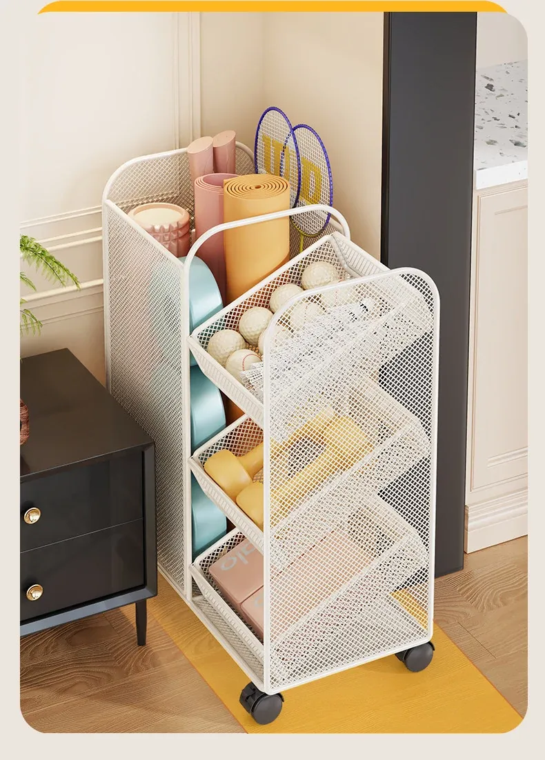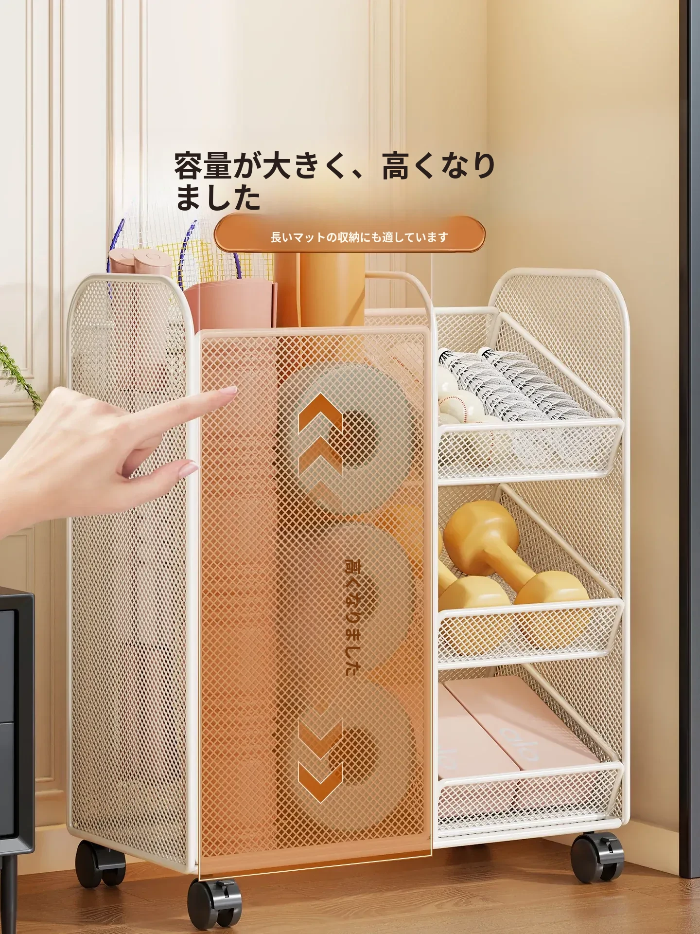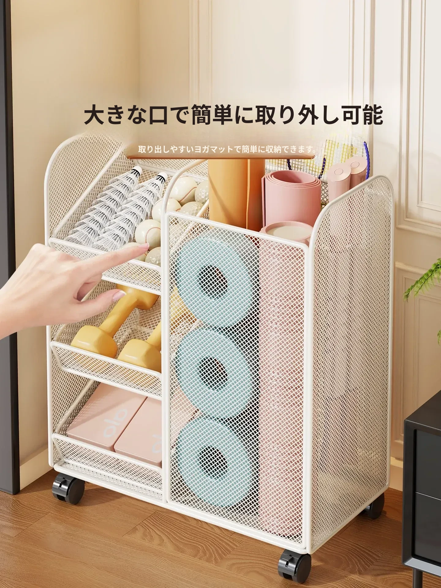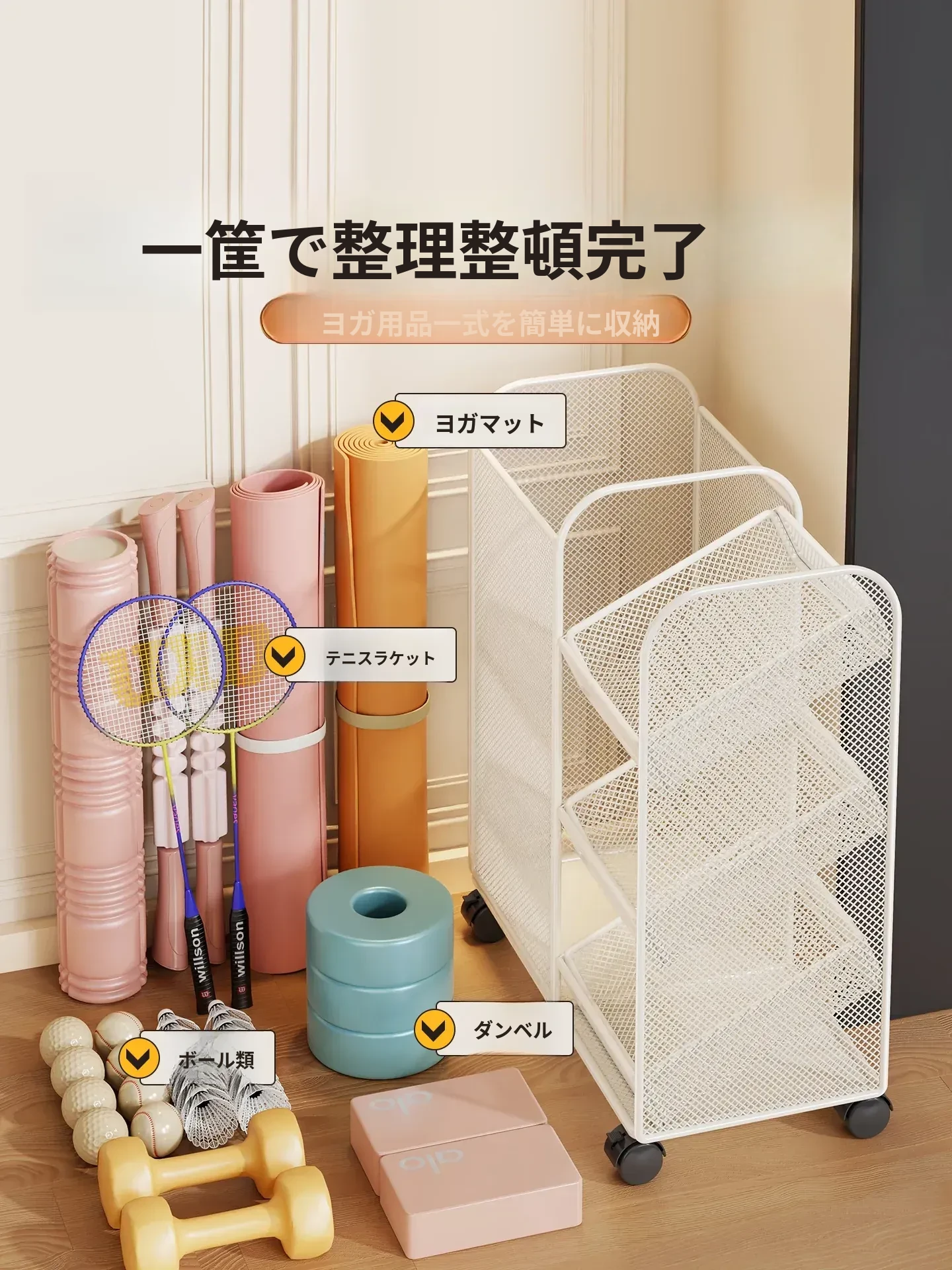 ヨガマット収納バスケット 大容量 家庭用 バスケットボール&フィットネス器具収納ラック キャスター付き 移動可能な隙間収納ラック!おしゃれで実用的、スペースを有効活用して、すっきりと片付けましょう!