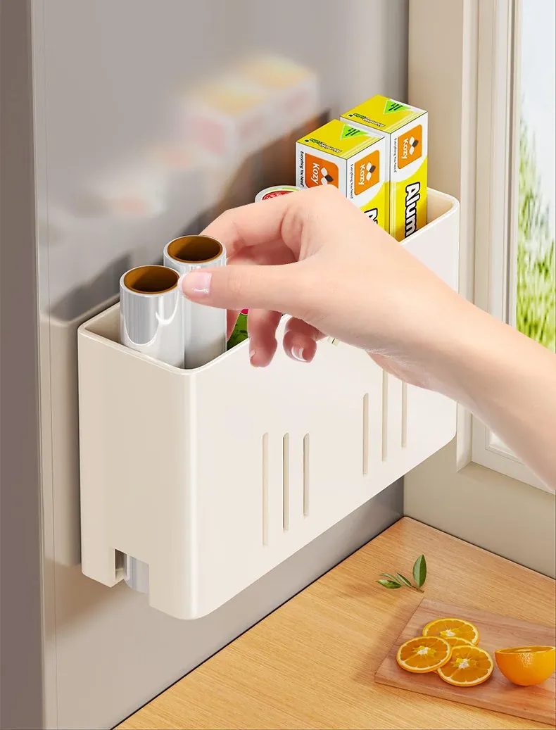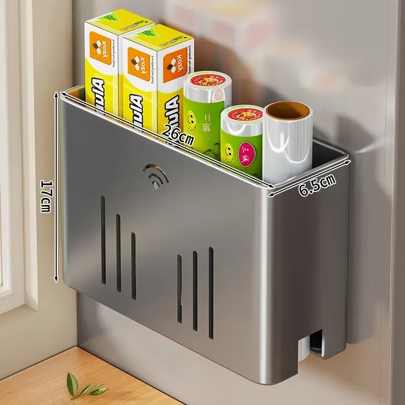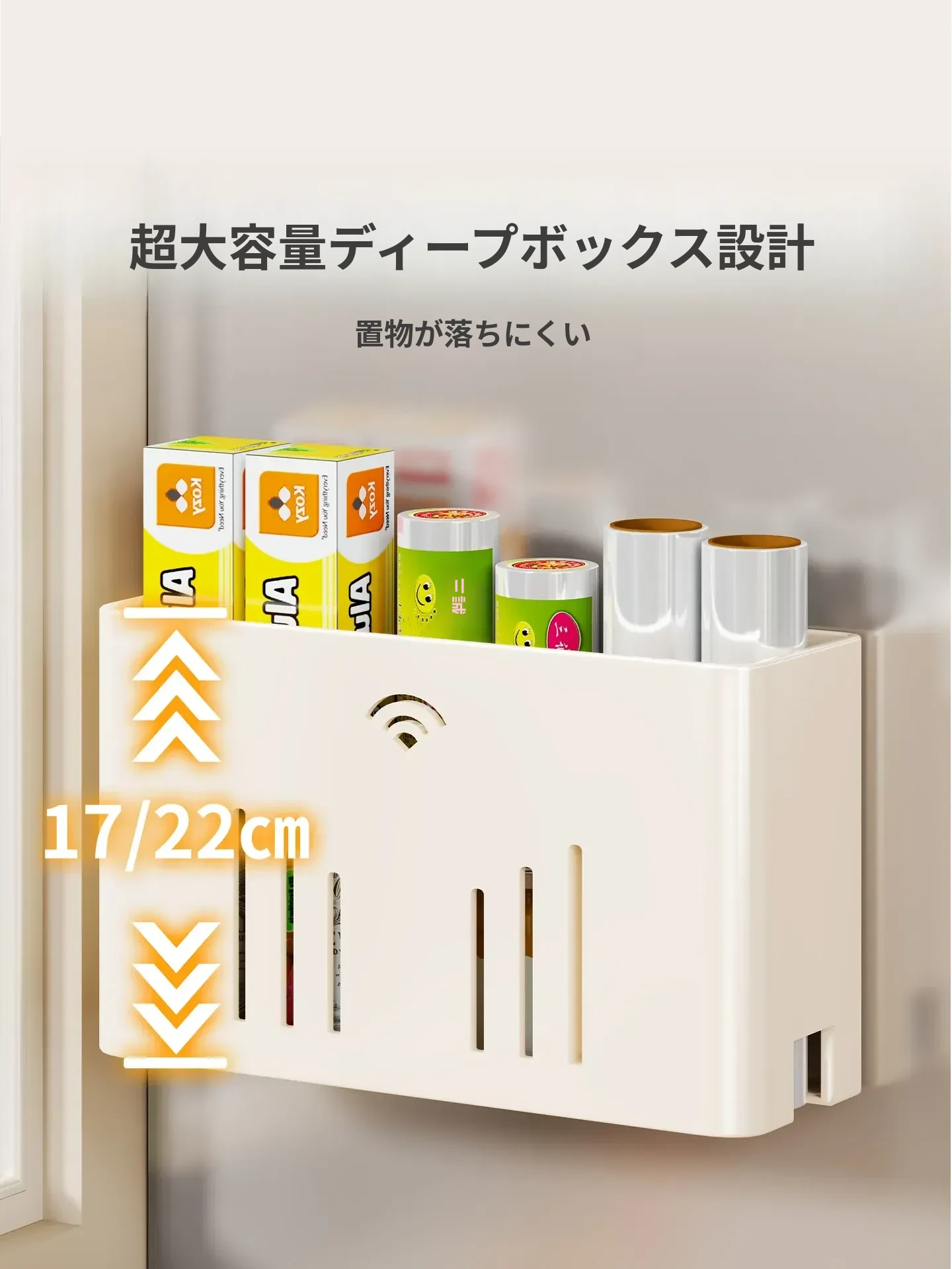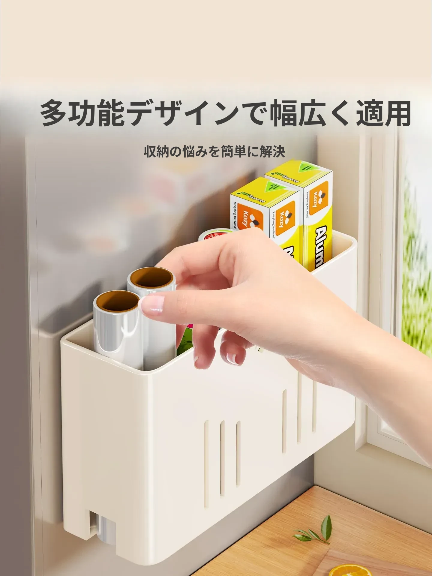 マグネット式収納ラック - トイレットペーパー・ラップ収納に最適!壁に穴を開けずに冷蔵庫の側面に簡単取り付け、スペースを有効活用。キッチンやバスルームをスッキリ整理整頓!
