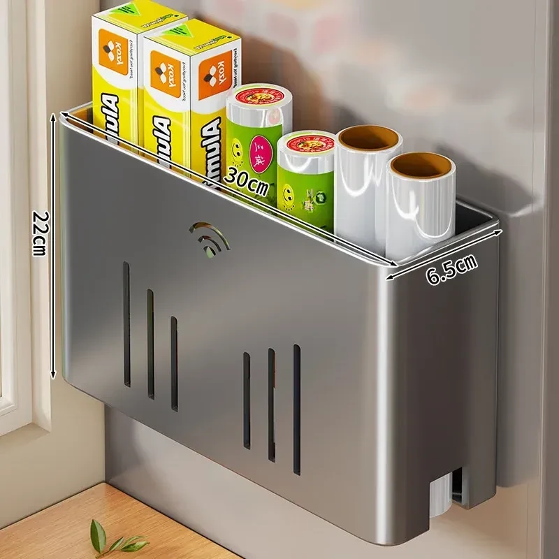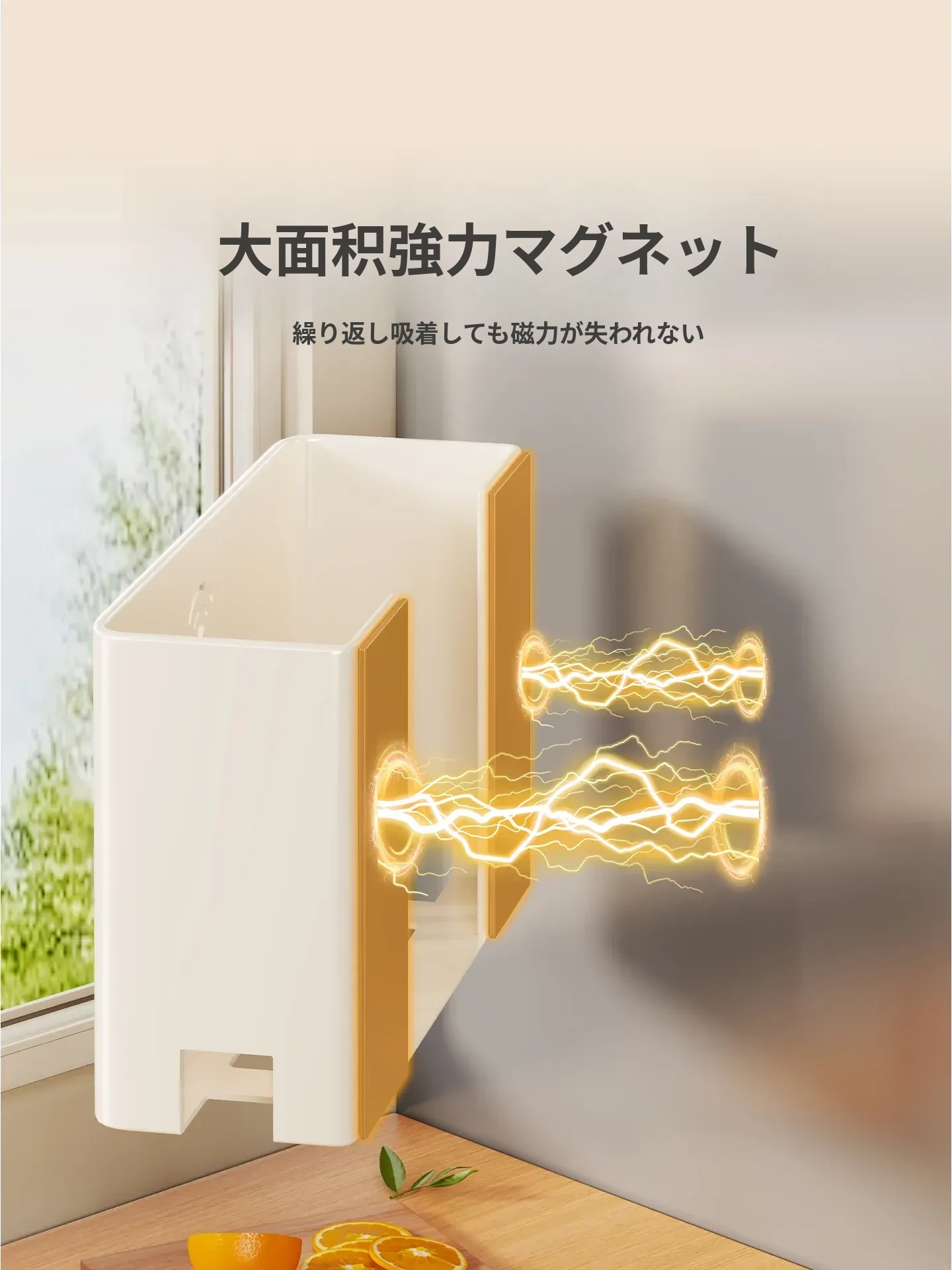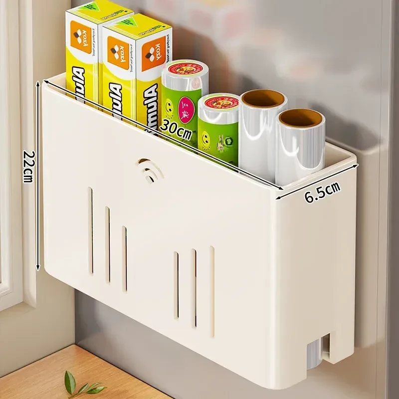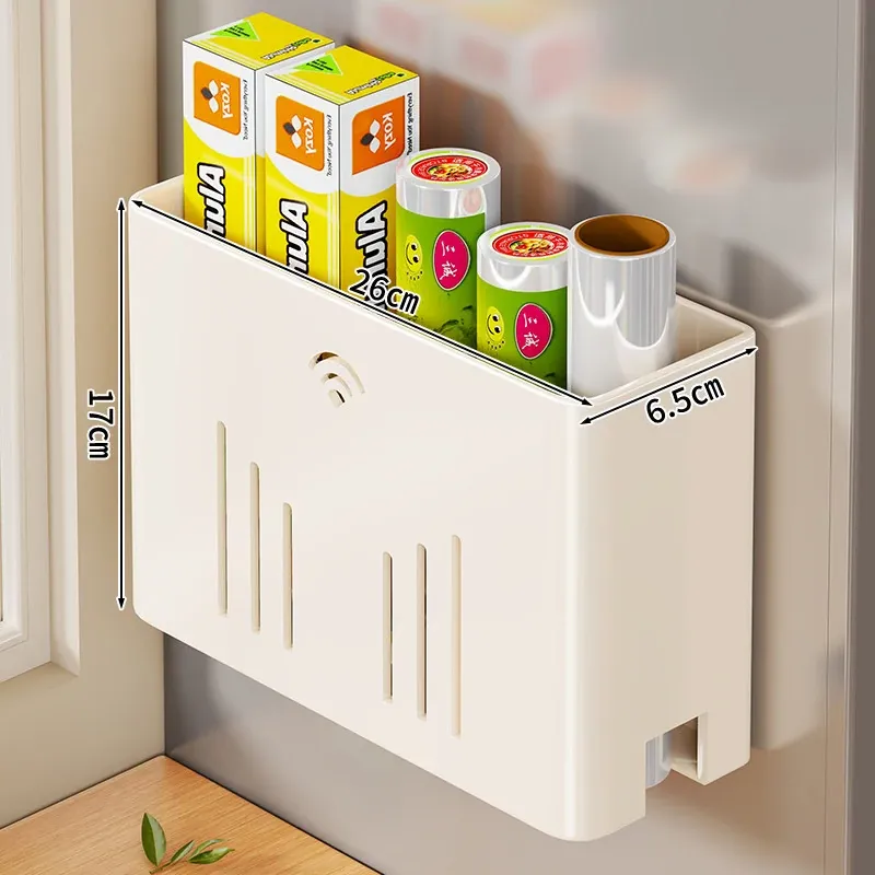 マグネット式収納ラック - トイレットペーパー・ラップ収納に最適!壁に穴を開けずに冷蔵庫の側面に簡単取り付け、スペースを有効活用。キッチンやバスルームをスッキリ整理整頓!