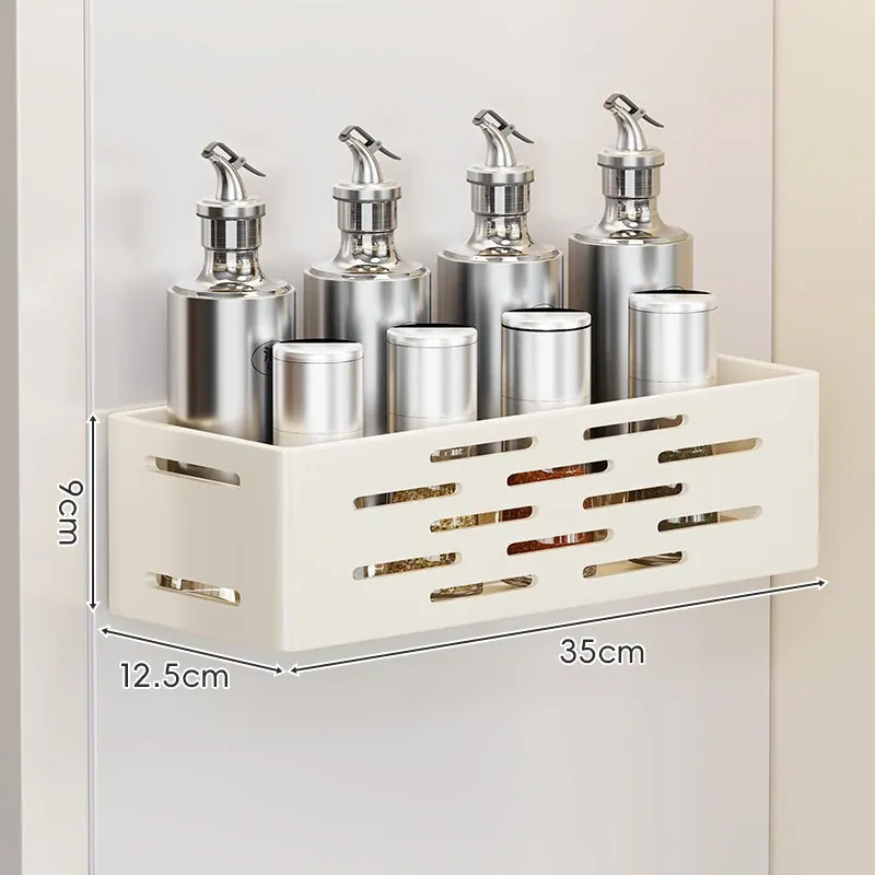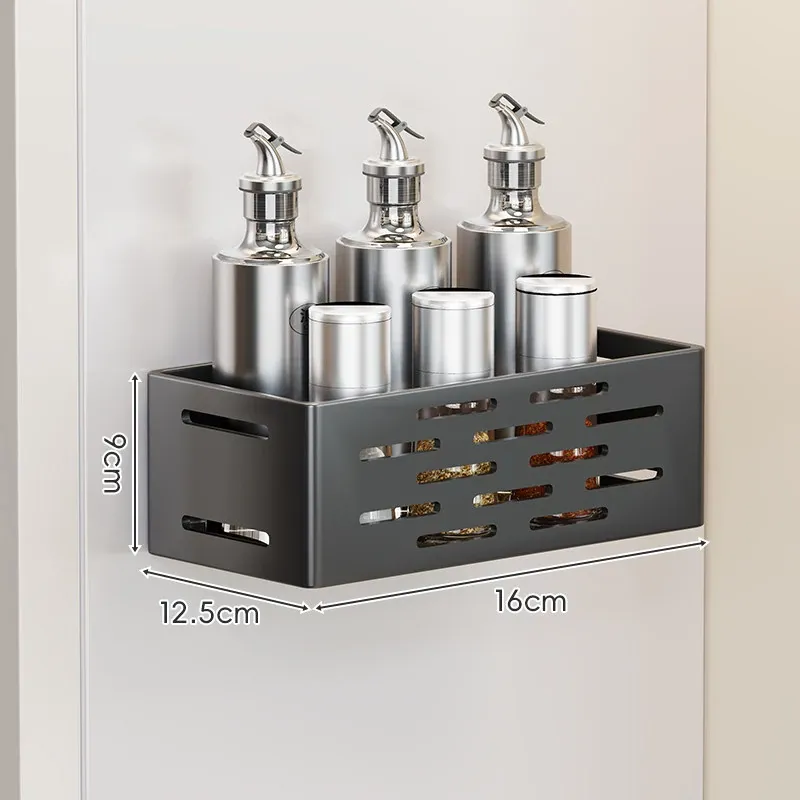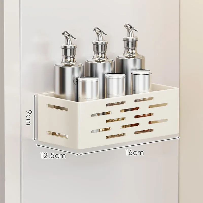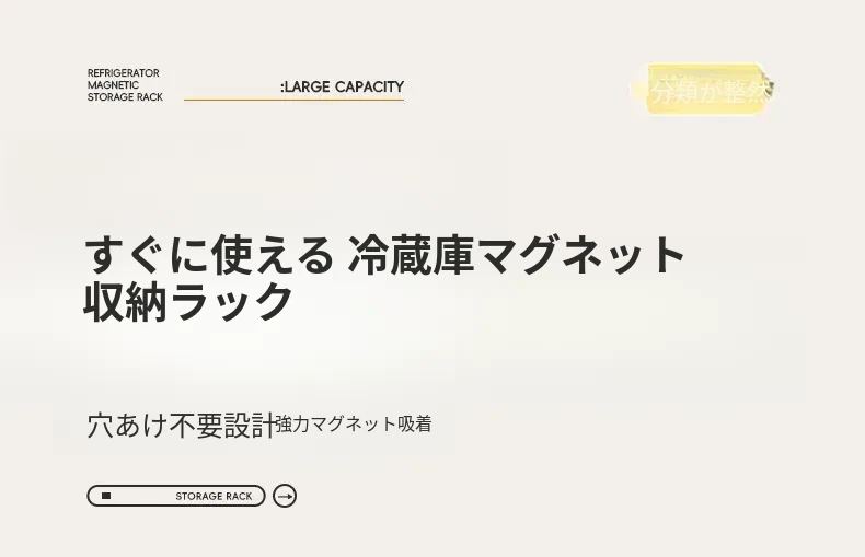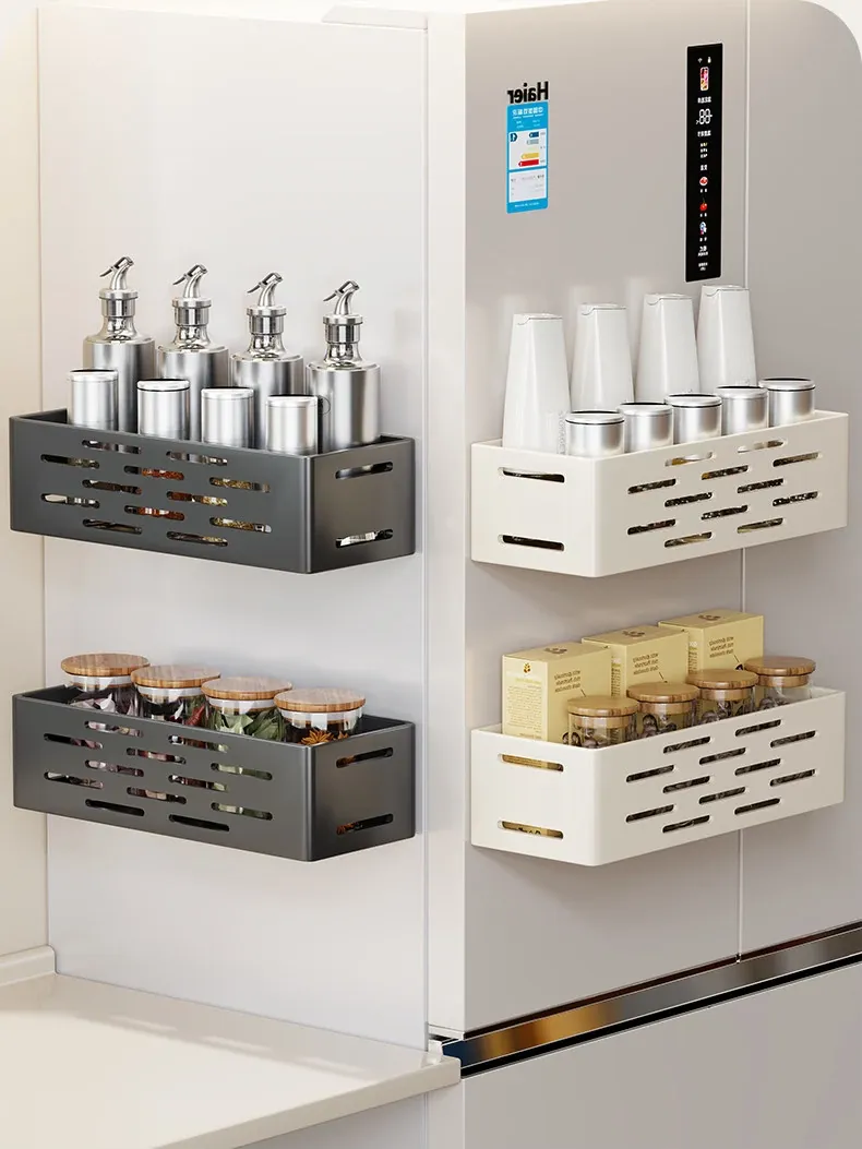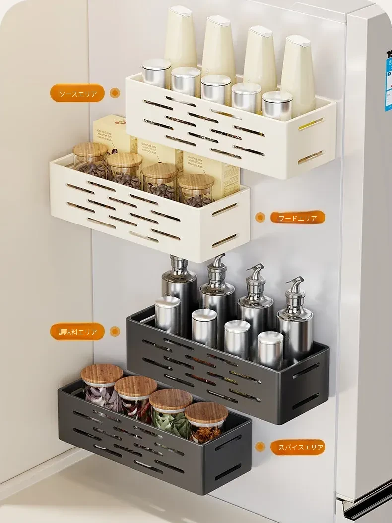 マグネット式壁掛け収納ラック - 冷蔵庫サイド用、穴あけ不要!キッチン多機能調味料整理ボックスで、スッキリ整理整頓。収納力抜群で、毎日の料理をもっと楽しく!