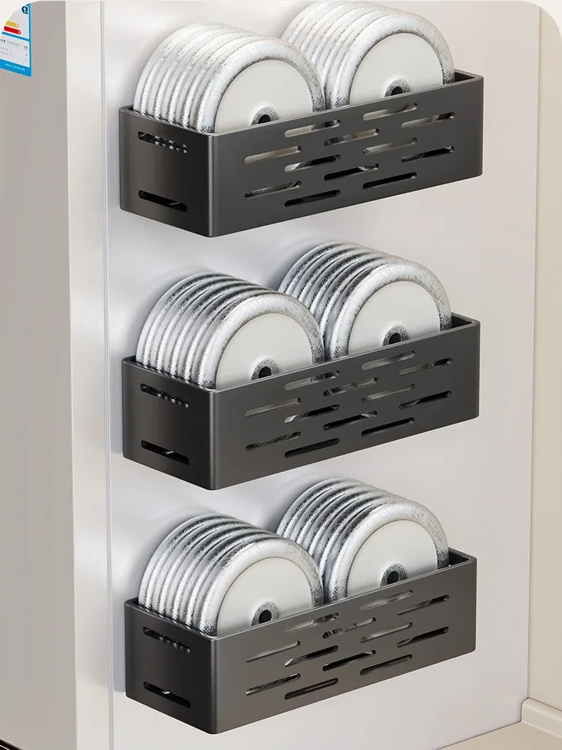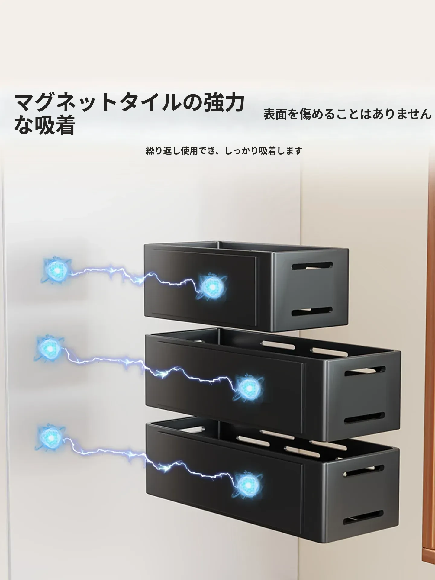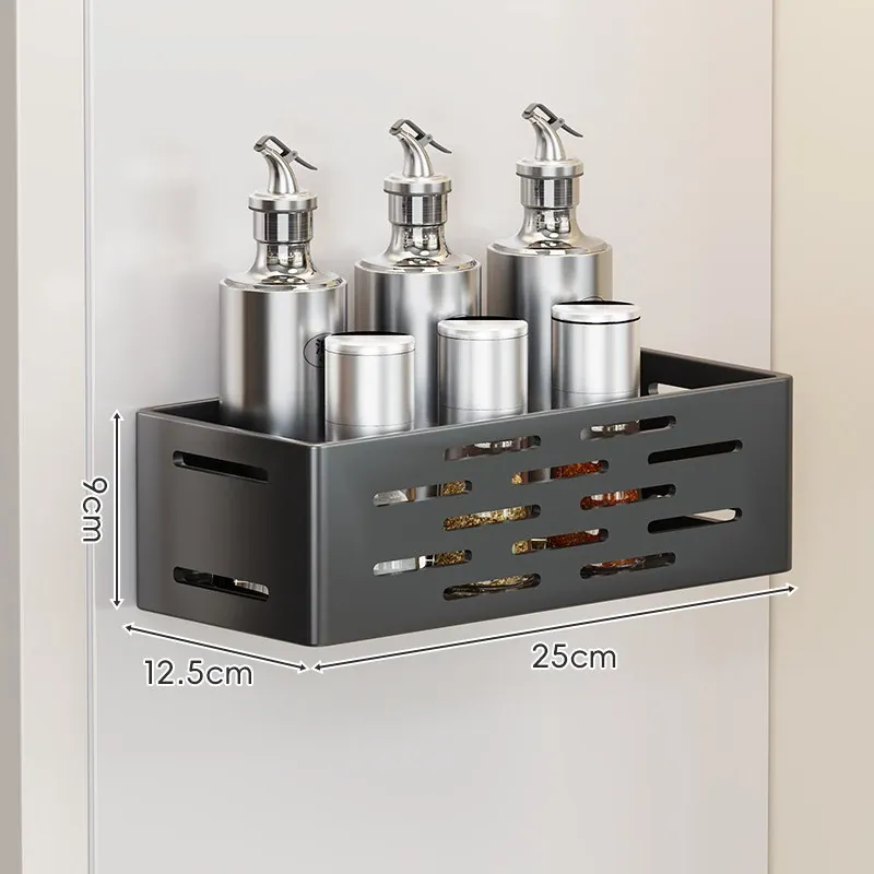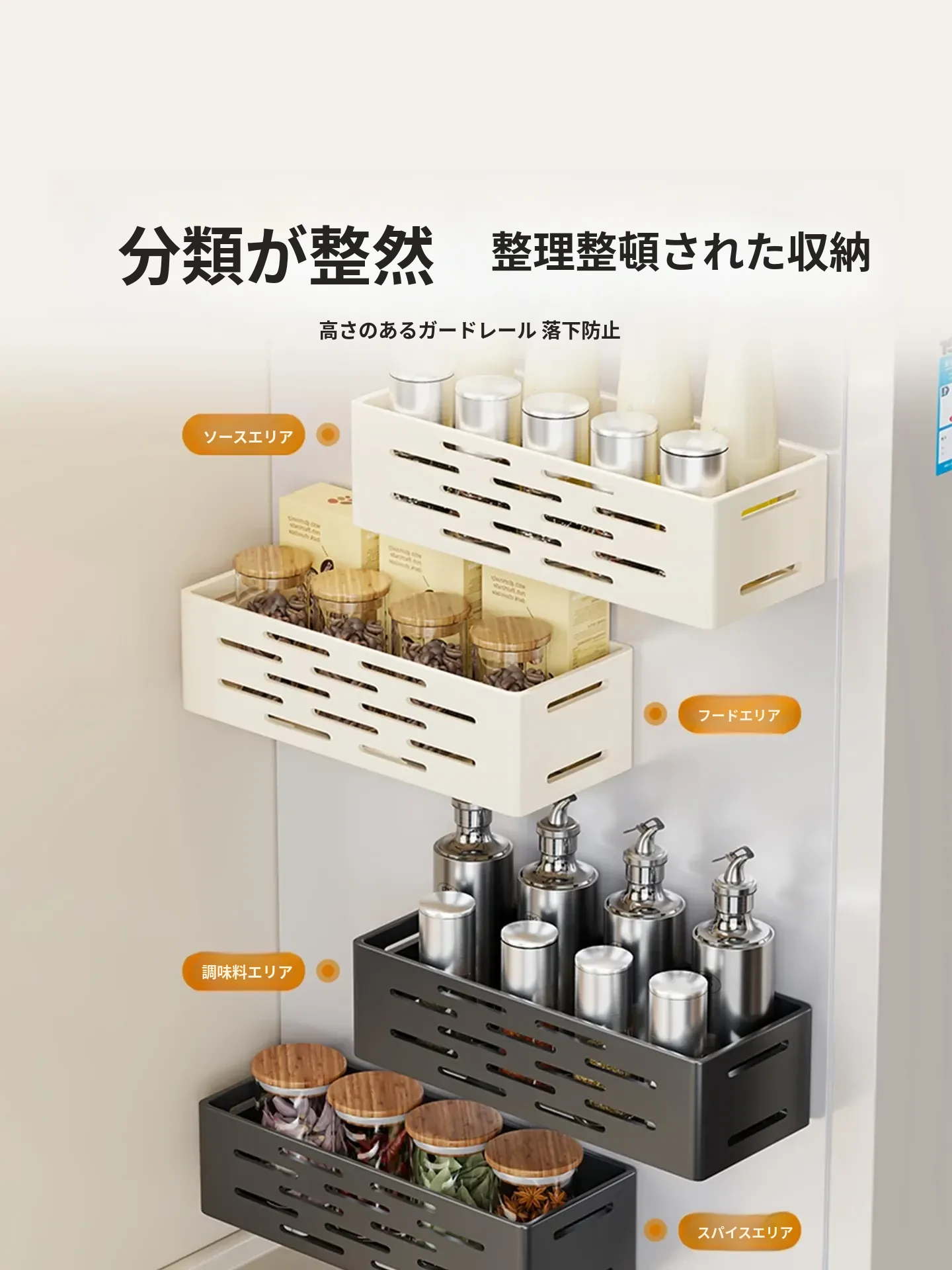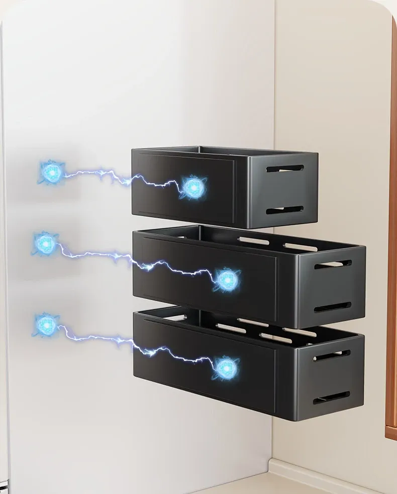 マグネット式壁掛け収納ラック - 冷蔵庫サイド用、穴あけ不要!キッチン多機能調味料整理ボックスで、スッキリ整理整頓。収納力抜群で、毎日の料理をもっと楽しく!