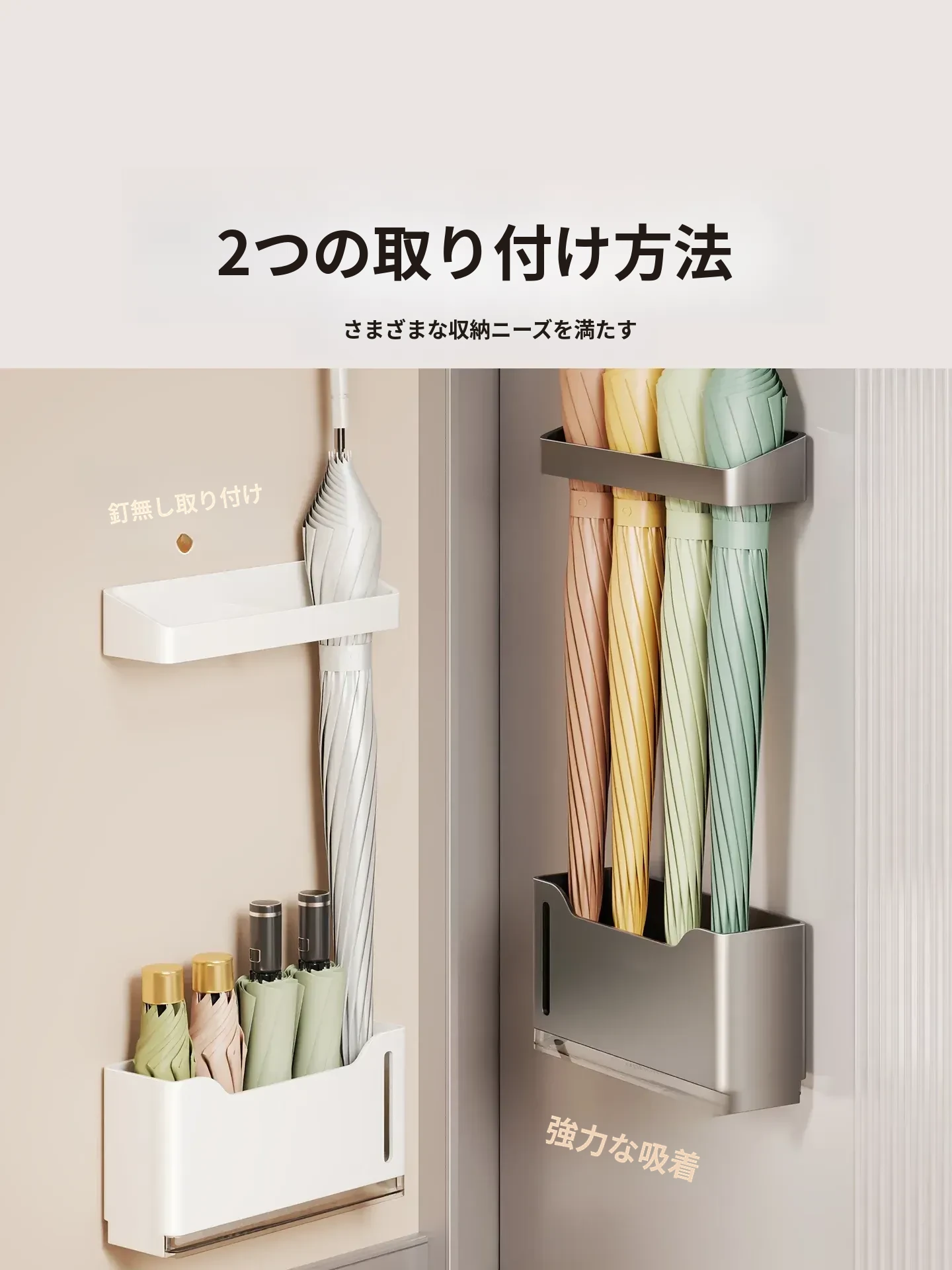 マグネット式玄関用傘立て|壁掛け収納でスッキリ!雨の日も安心な水切り設計|リビングでの傘収納に最適なアイテム!シンプルでスタイリッシュなデザインで、お部屋をおしゃれに演出します。