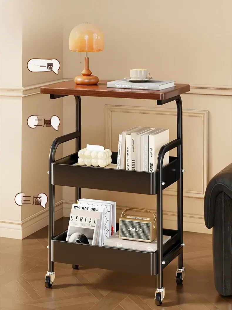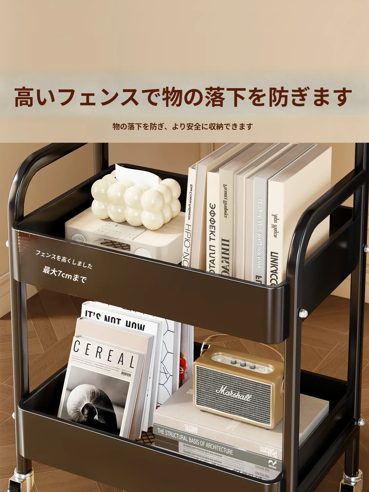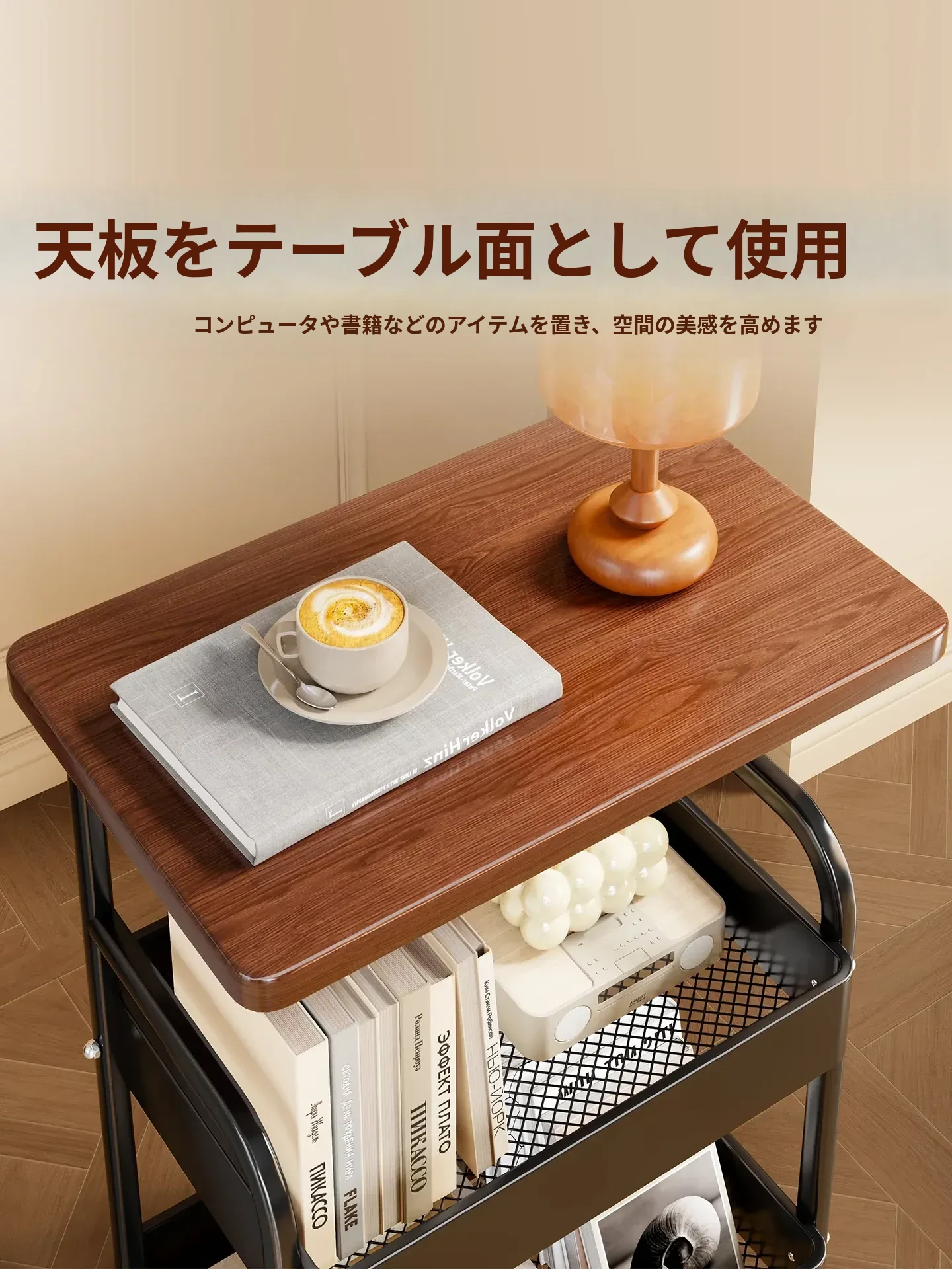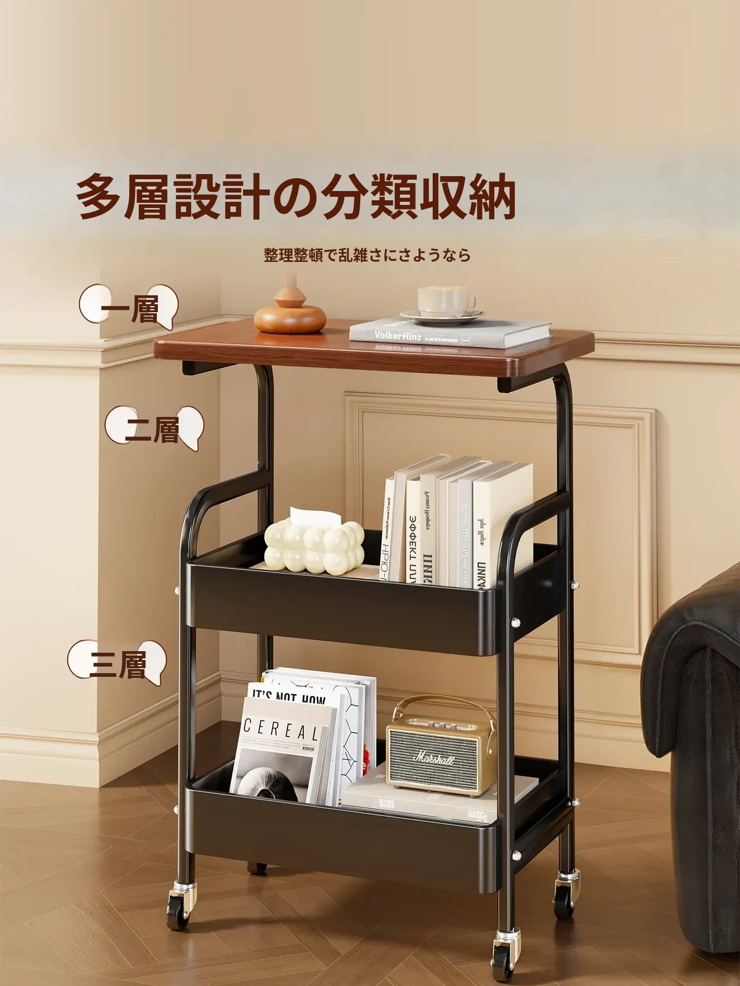 移動式キャスター付き書籍収納ラック - 寝室や家庭で大活躍!多層設計で本や文房具をスッキリ整理。デスクの横に置いて、使い勝手抜群の収納スペースを実現!
