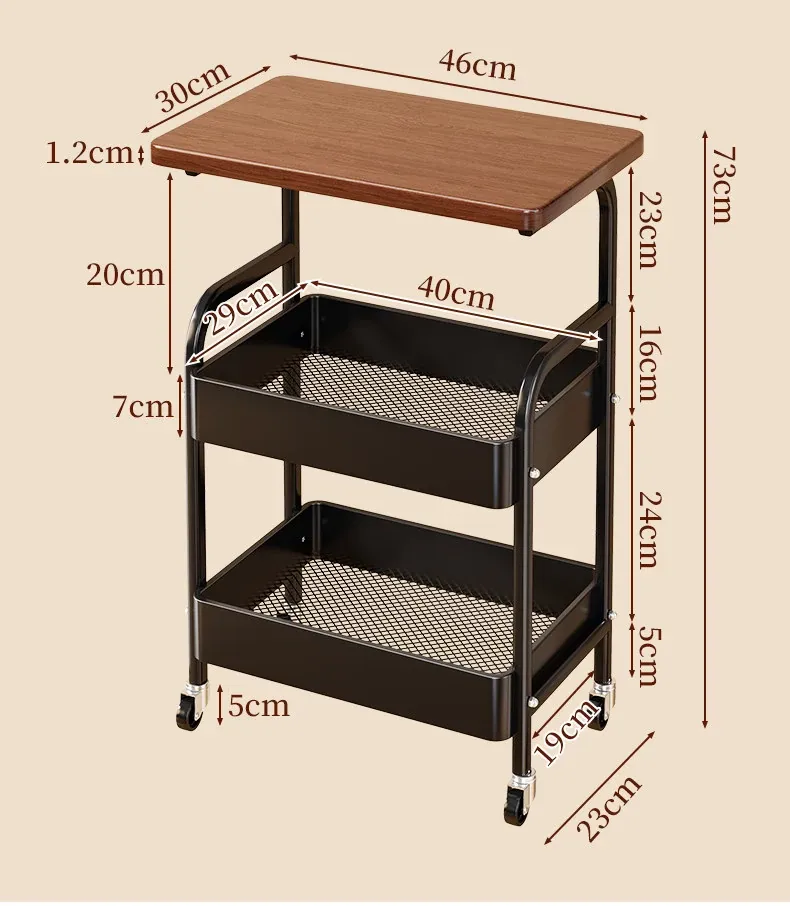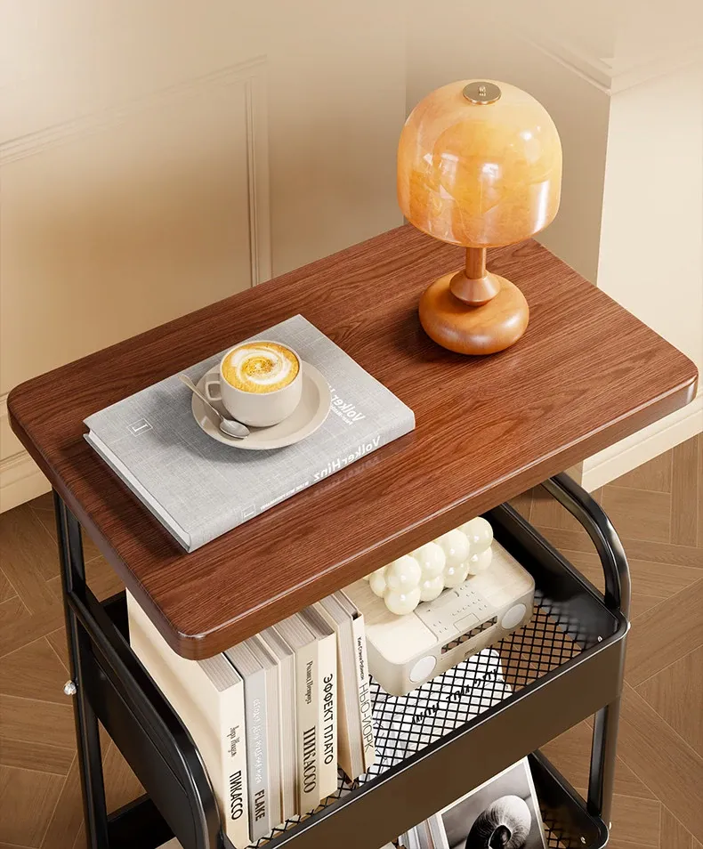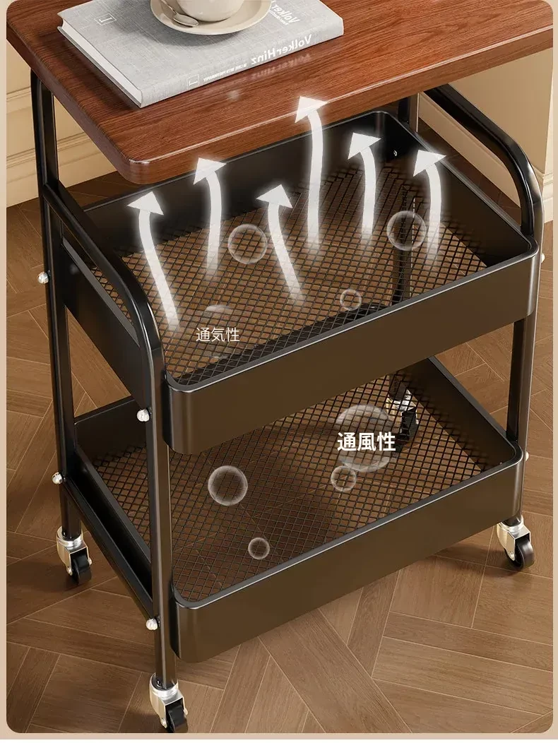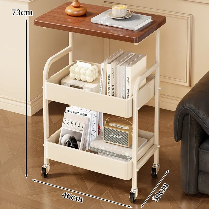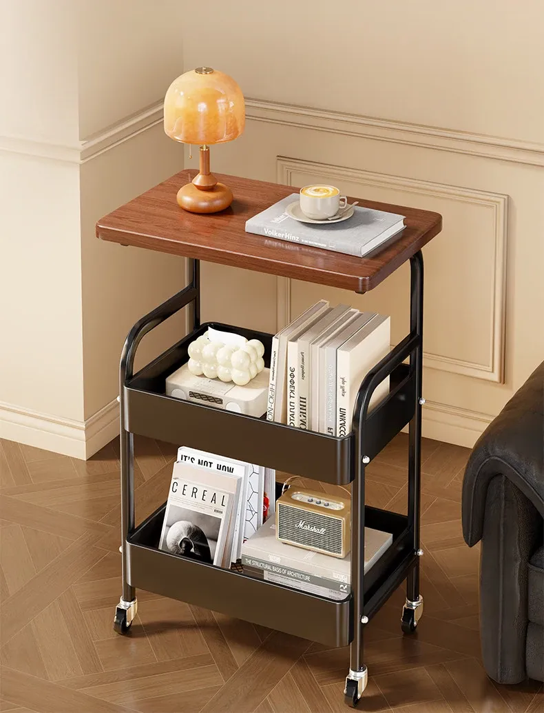 移動式キャスター付き書籍収納ラック - 寝室や家庭で大活躍!多層設計で本や文房具をスッキリ整理。デスクの横に置いて、使い勝手抜群の収納スペースを実現!
