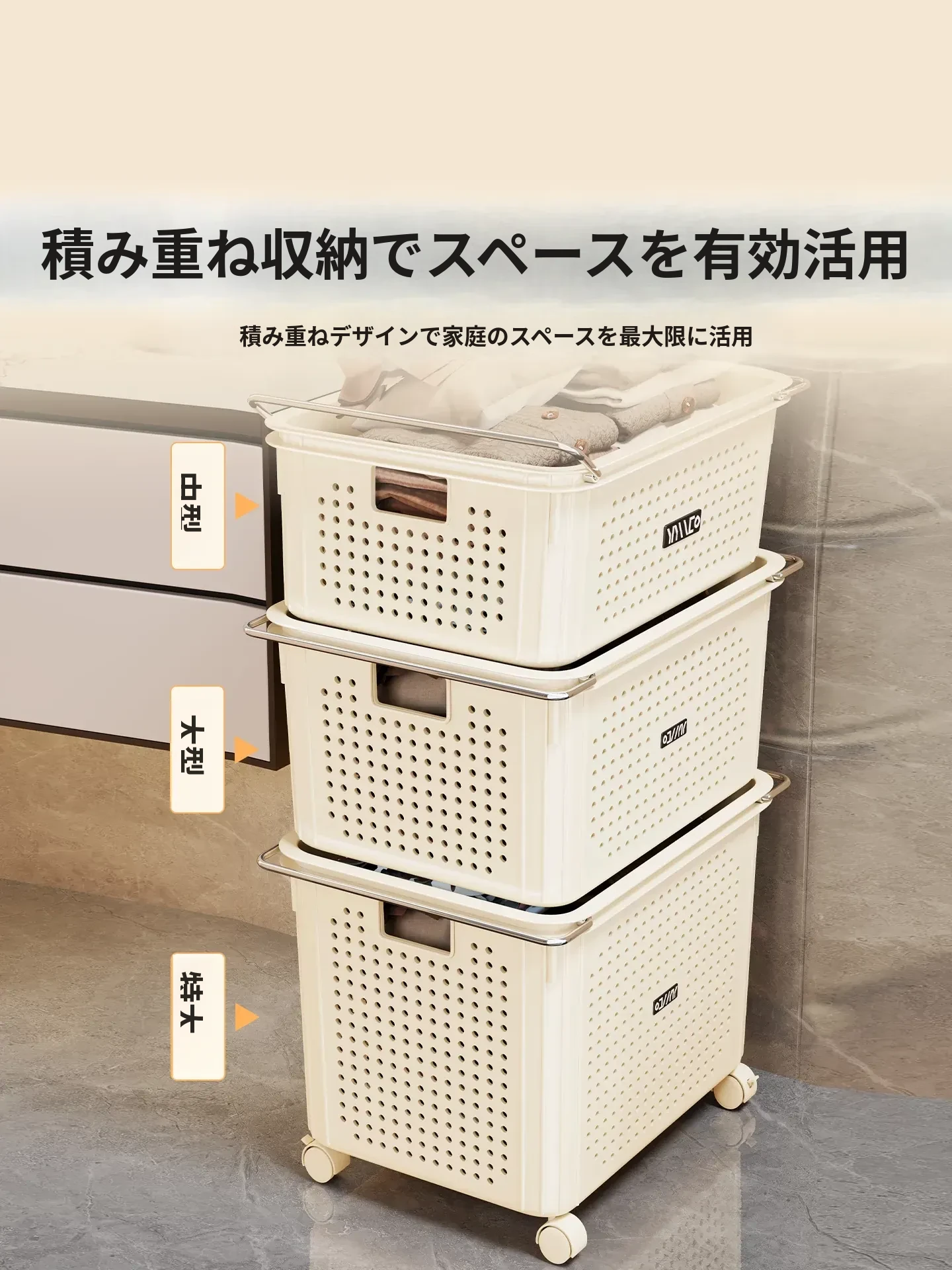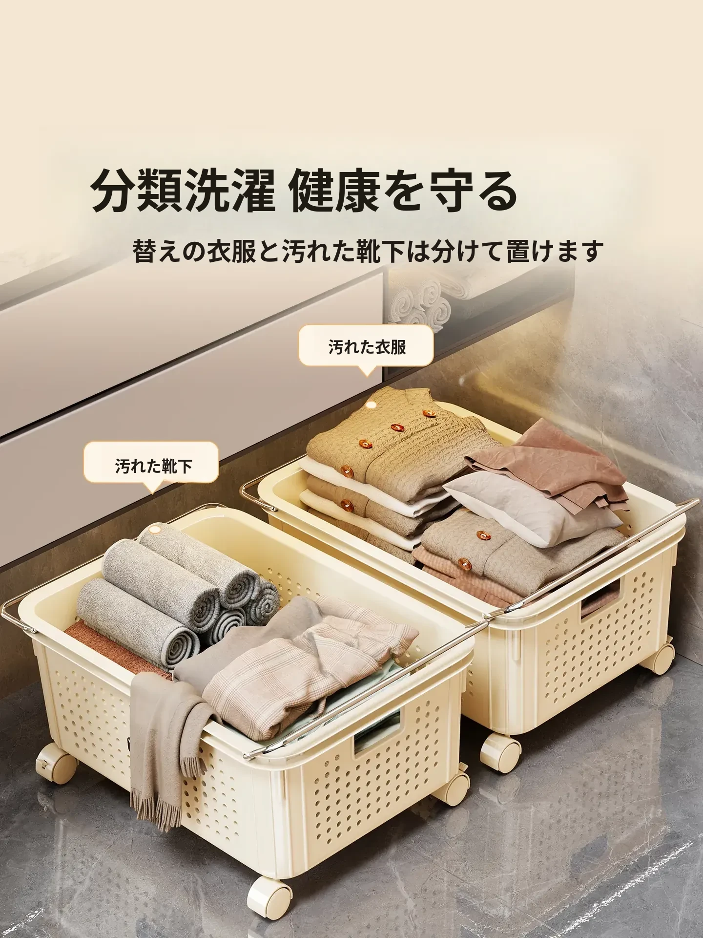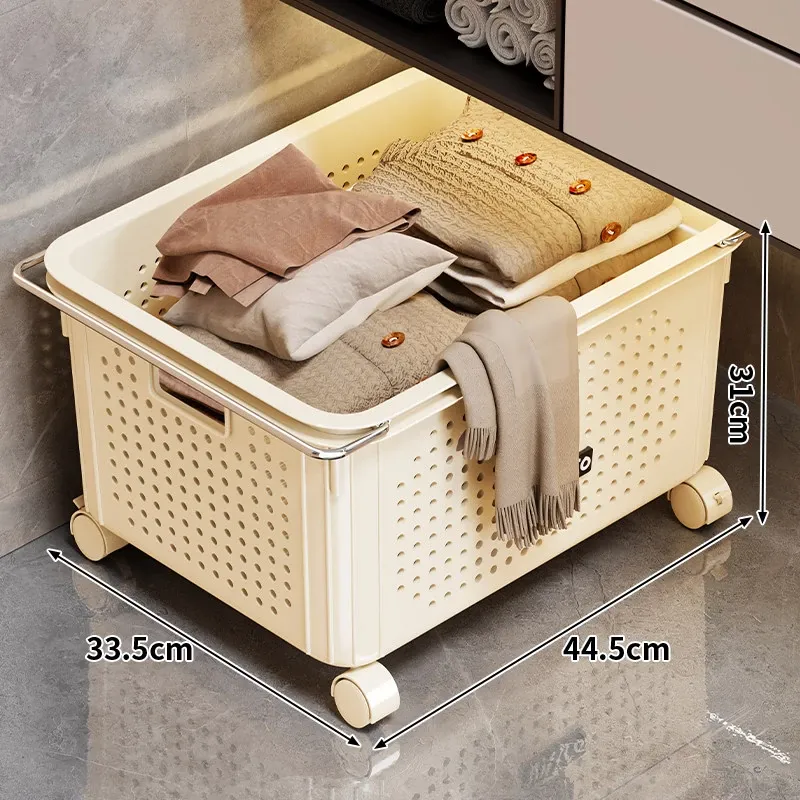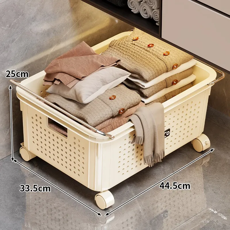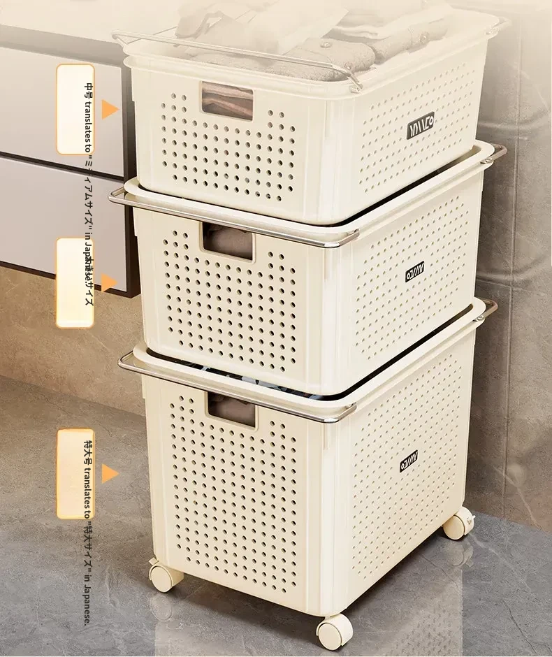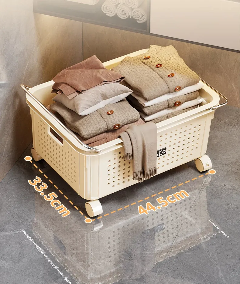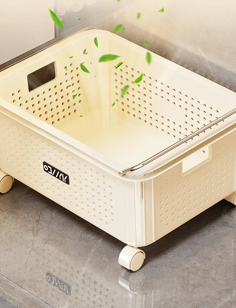 バスルームキャビネット下収納棚 - 洗面台下の整理整頓に最適!ブルーの家用ランドリーバスケット、キャスター付きで移動もラクラク。多機能ストレージバスケットで、毎日の生活をもっと快適に!