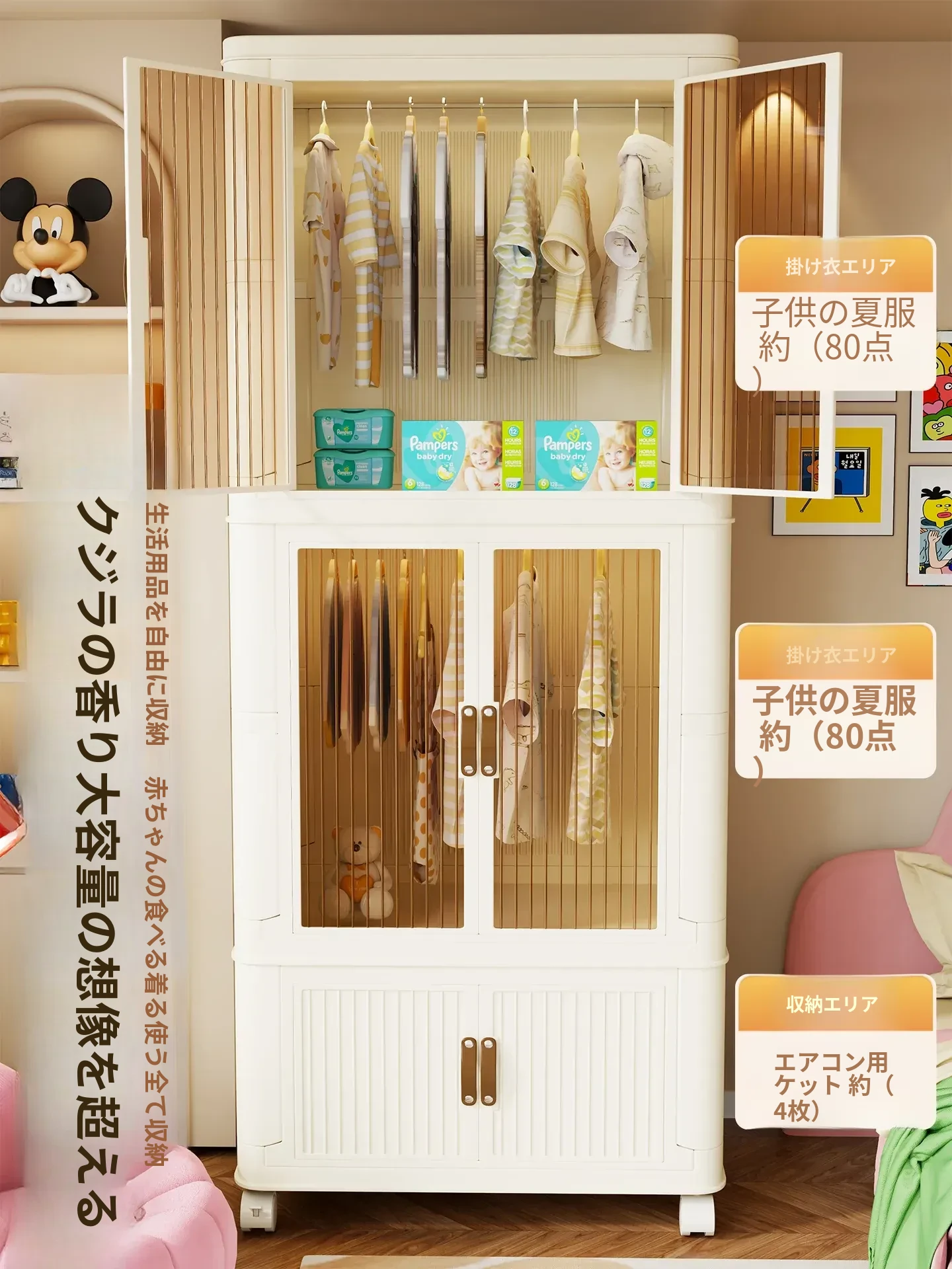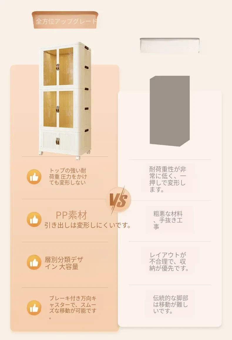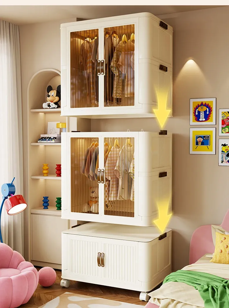 折りたたみ可能!多層大容量収納キャビネット - 赤ちゃんや子供の衣類整理に最適な衣類収納ボックス。お部屋をスッキリ整頓し、可愛いお洋服を美しく保管!