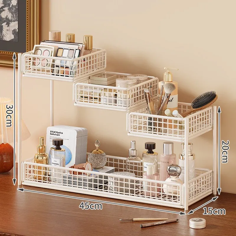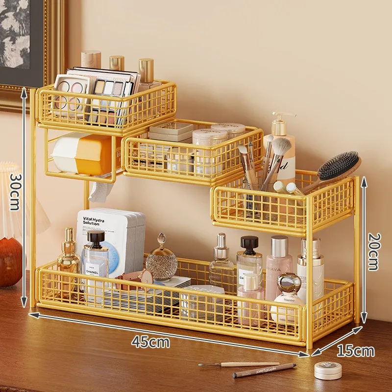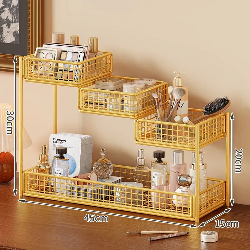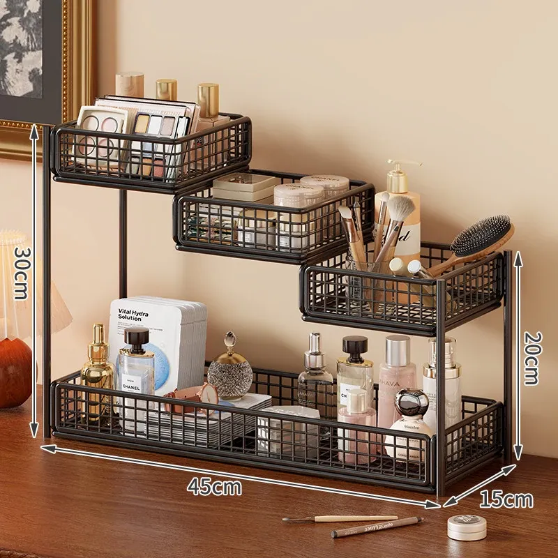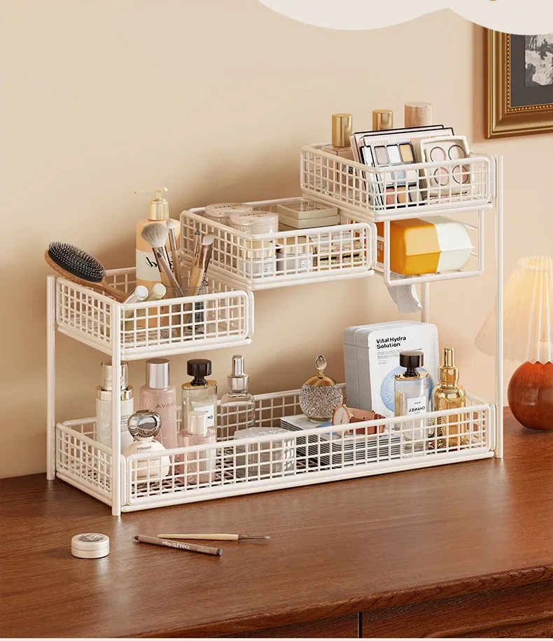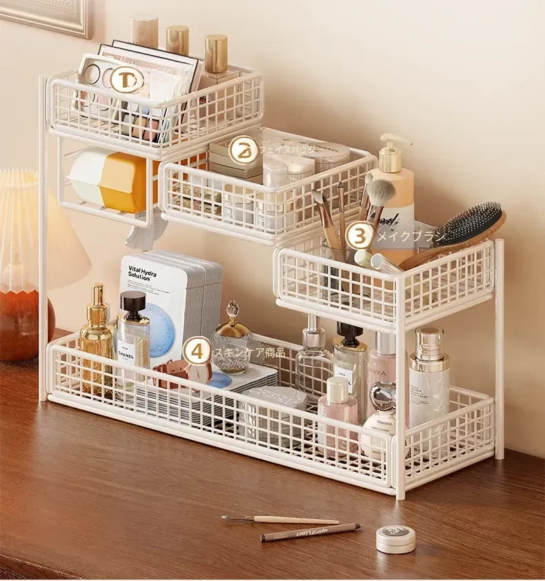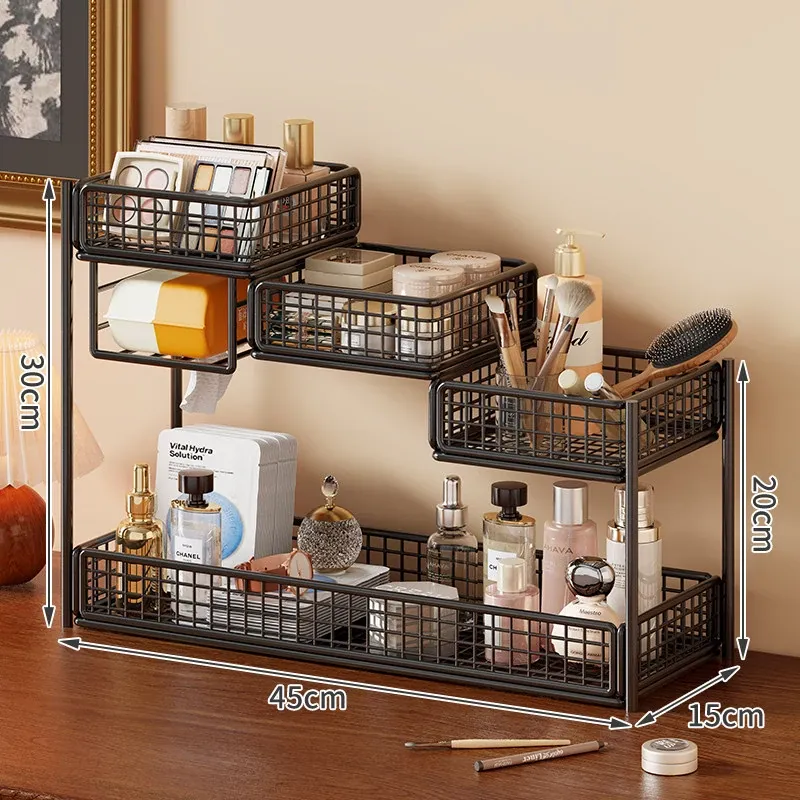 デスク用化粧品収納ラック|多層スキンケア用品整理の必需品|洗面台やトイレにぴったりなティッシュホルダー付き!あなたのメイクアップスペースをスッキリ整頓!