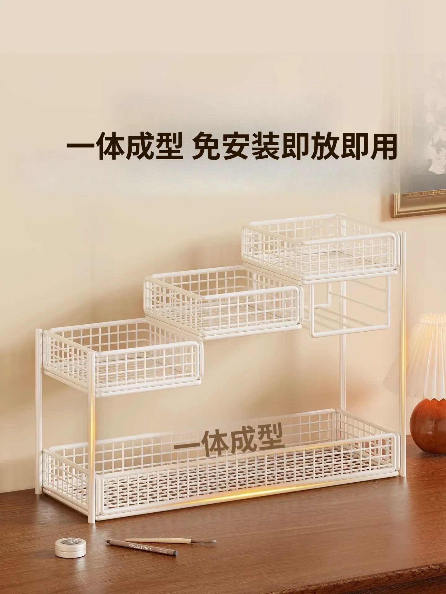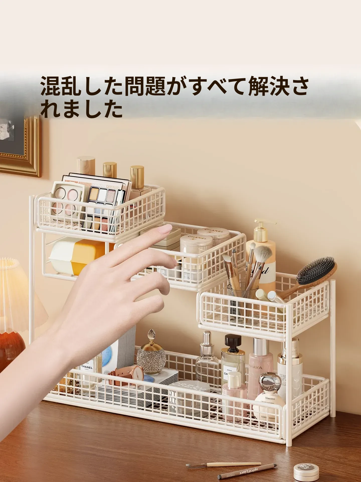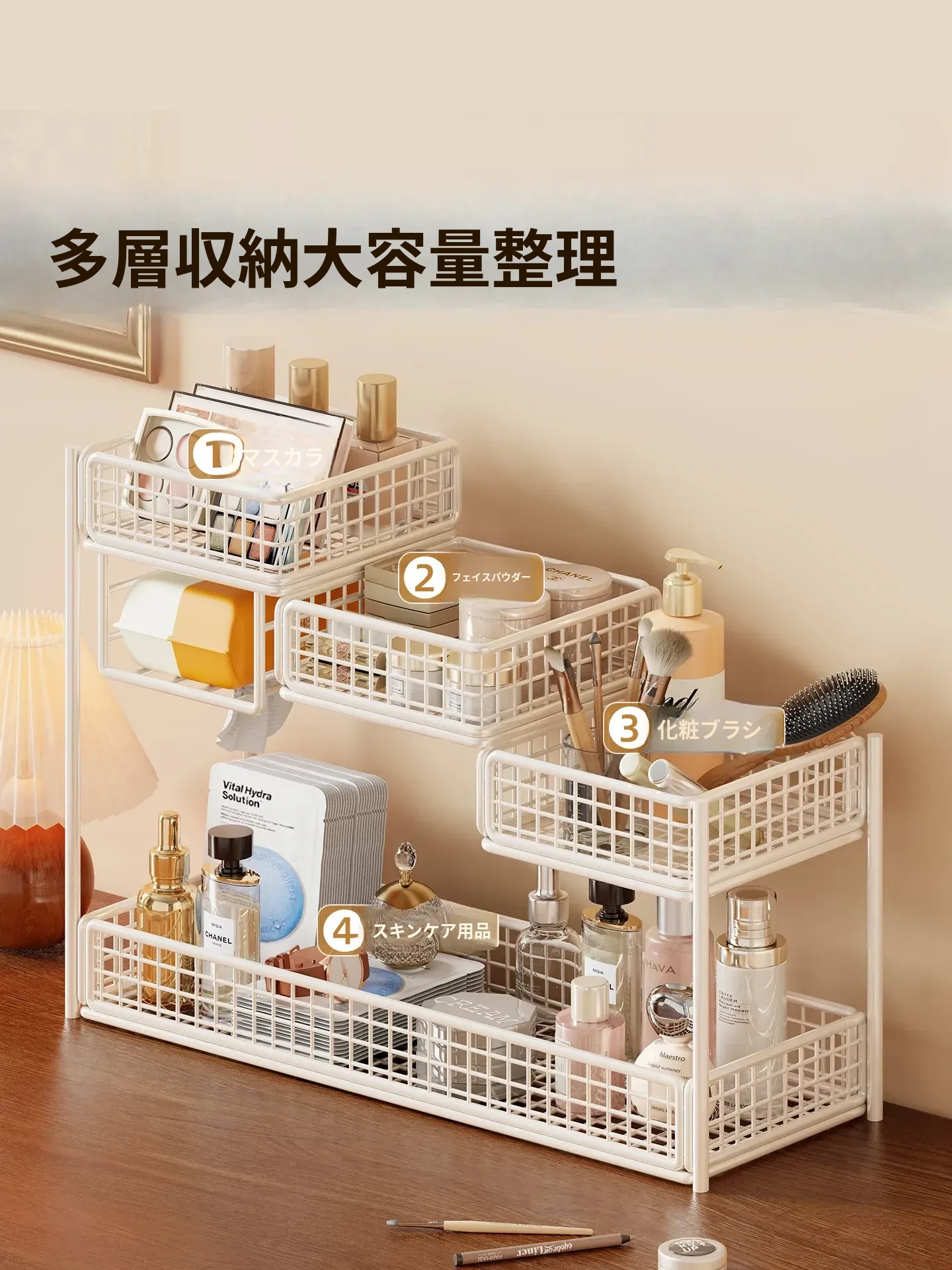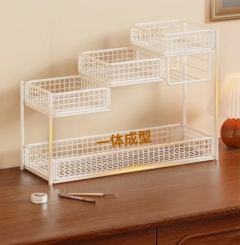 デスク用化粧品収納ラック|多層スキンケア用品整理の必需品|洗面台やトイレにぴったりなティッシュホルダー付き!あなたのメイクアップスペースをスッキリ整頓!
