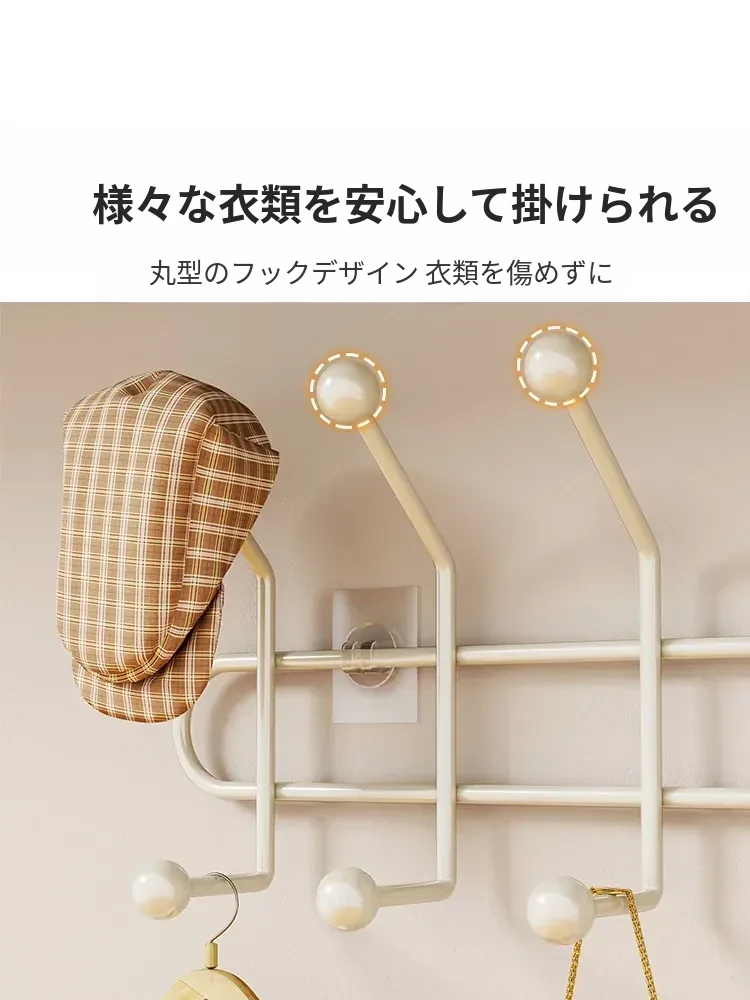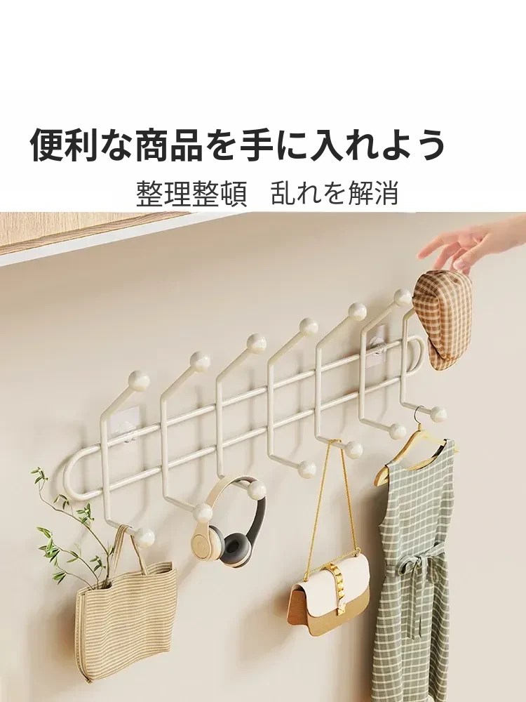 壁掛けフック 取り付け不要!強力耐荷重の玄関用フック - ドア裏に簡単貼り付け、衣類や帽子をしっかり収納。おしゃれで便利な整理整頓アイテム!